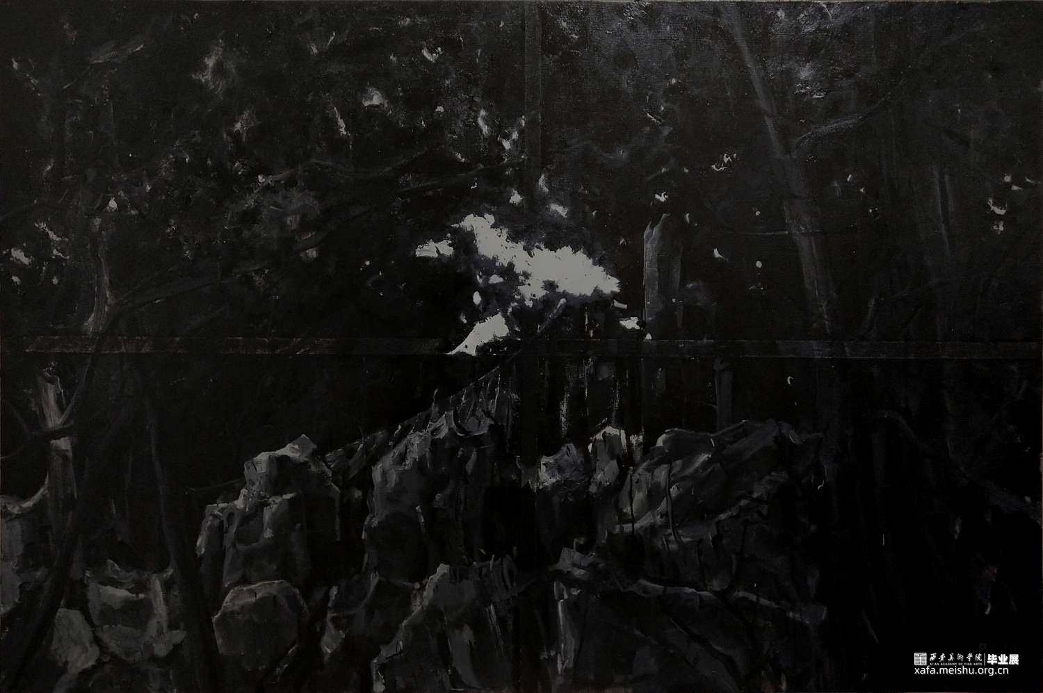 这一系列创作是围绕着图像与语言边界的有限尝试,图像是对于自身造型方式惯性的一种打破,而语言则是对于绘画本身的自觉.图像素材来自于自己手机中以往所拍摄的照片以及部分历史图像,主题都与自己生活的城市相关.图像在损失细节信息之后所呈现出的"形"与本身所承载的图像信息之间的模糊状态是当下所喜欢的画面建构方式.