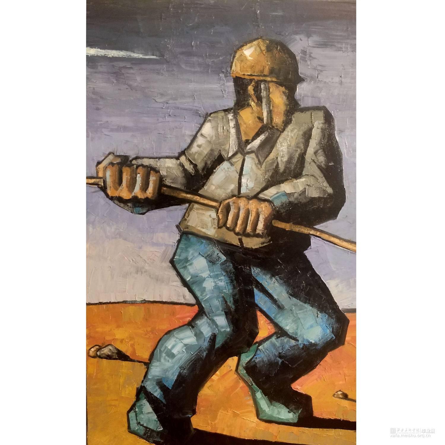 《拉绳工人》-布面油画-80cm×55cm-2020