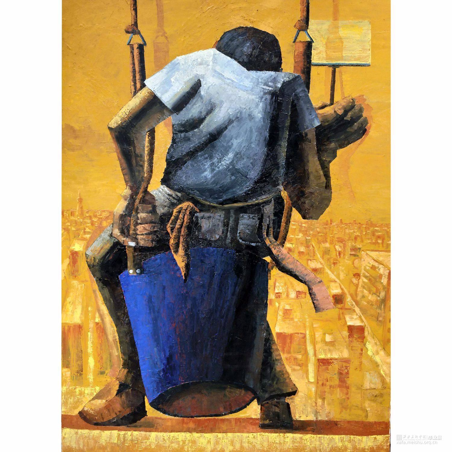 《高空电缆工人》-160cm×140cm-布面油画-2020