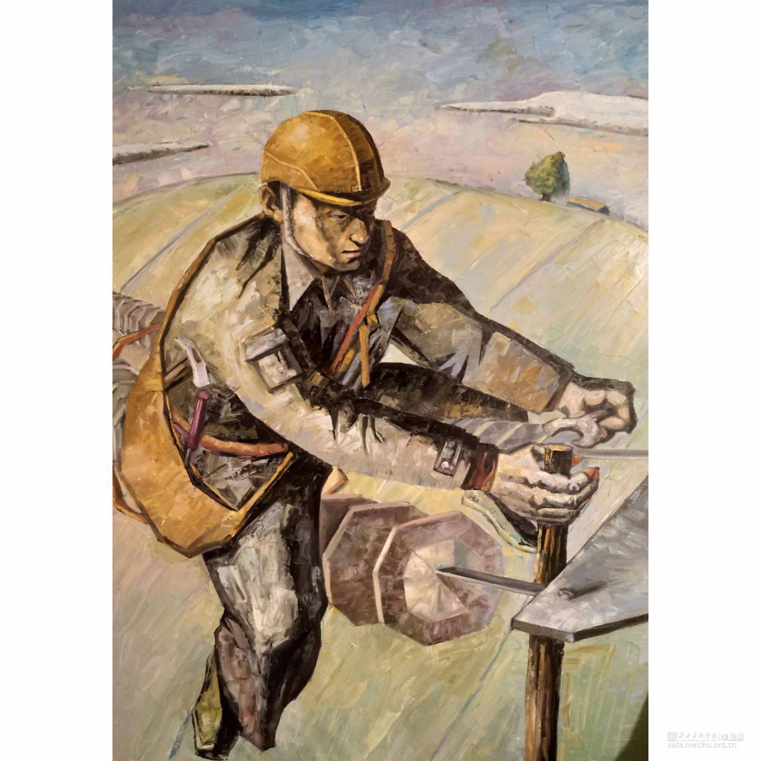 作品《高空电缆工》创作于2020年1月,讲述电缆工在高空进行作业时的场景,作品表现以四分之三俯视的角度来看电缆工,作品中人物神情专注,坐在电缆上检修电缆和电塔之间的安全和接触,保证在偏远地区和高海拔地区人民都能享受到通信的便利,使得祖国的通讯覆盖率扩大到中国的每一处地区。
