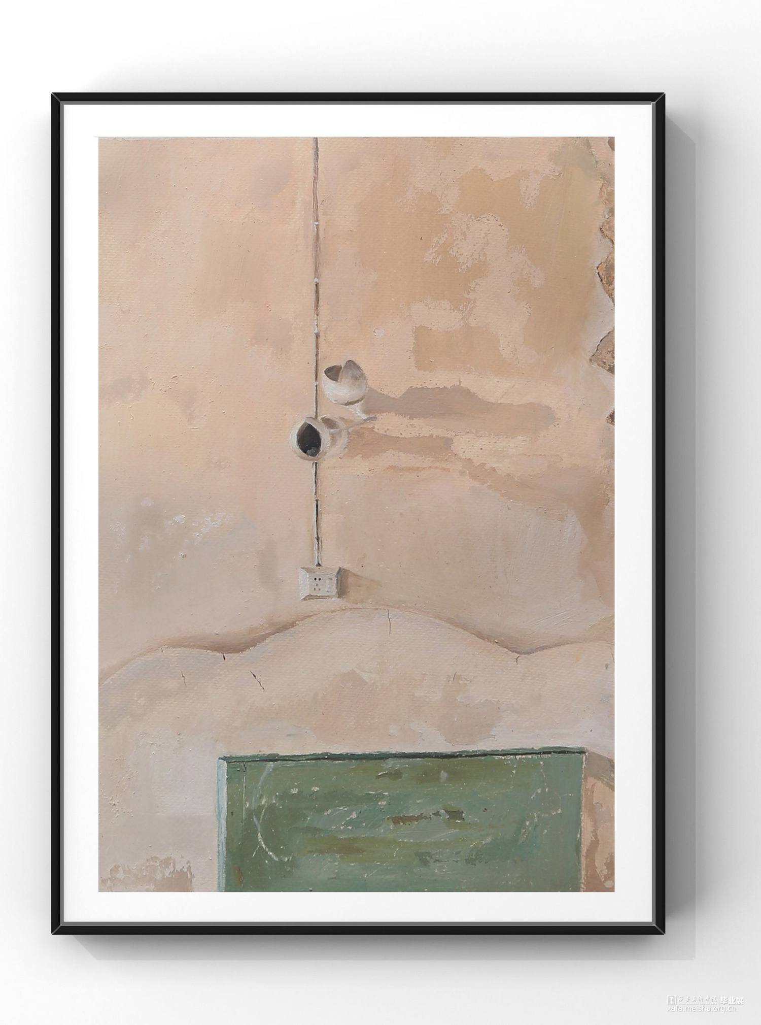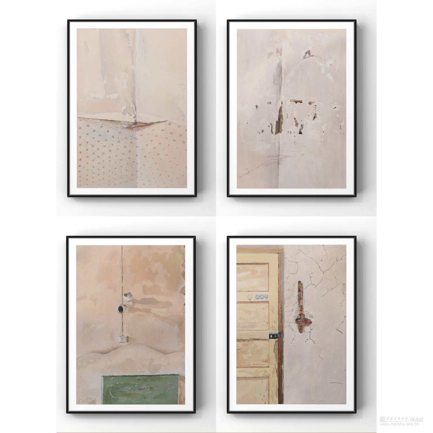 给光洁的墙面贴上好看的壁纸、还是给它钉上钉子,这些留下的痕迹在都非常有趣。在众多墙面中寻找共性。这系列作品画面中都有一条线分割画面、这条线和画面融为一体却并非融为一体。这些线条是积满灰尘的墙角线、或者是老式床头灯的走线,还是壁纸围成的线条等等。这根不经意的线似乎很刻意却又恰到好处。墙面是房子的重要组成部分,不同的房子里面住着不同的人,每个人的人生都不一样,经历的都不一样。所以每个人的墙壁上的痕迹也是大相径庭的。而每个墙面都出现的分割线,将我们的现在和未来进行分割。也意味着抛弃过去展望未来,这条不经意的线包含了太多意义。所以我想表达的不仅仅是一面有痕迹的墙面,而是其背后的故事。