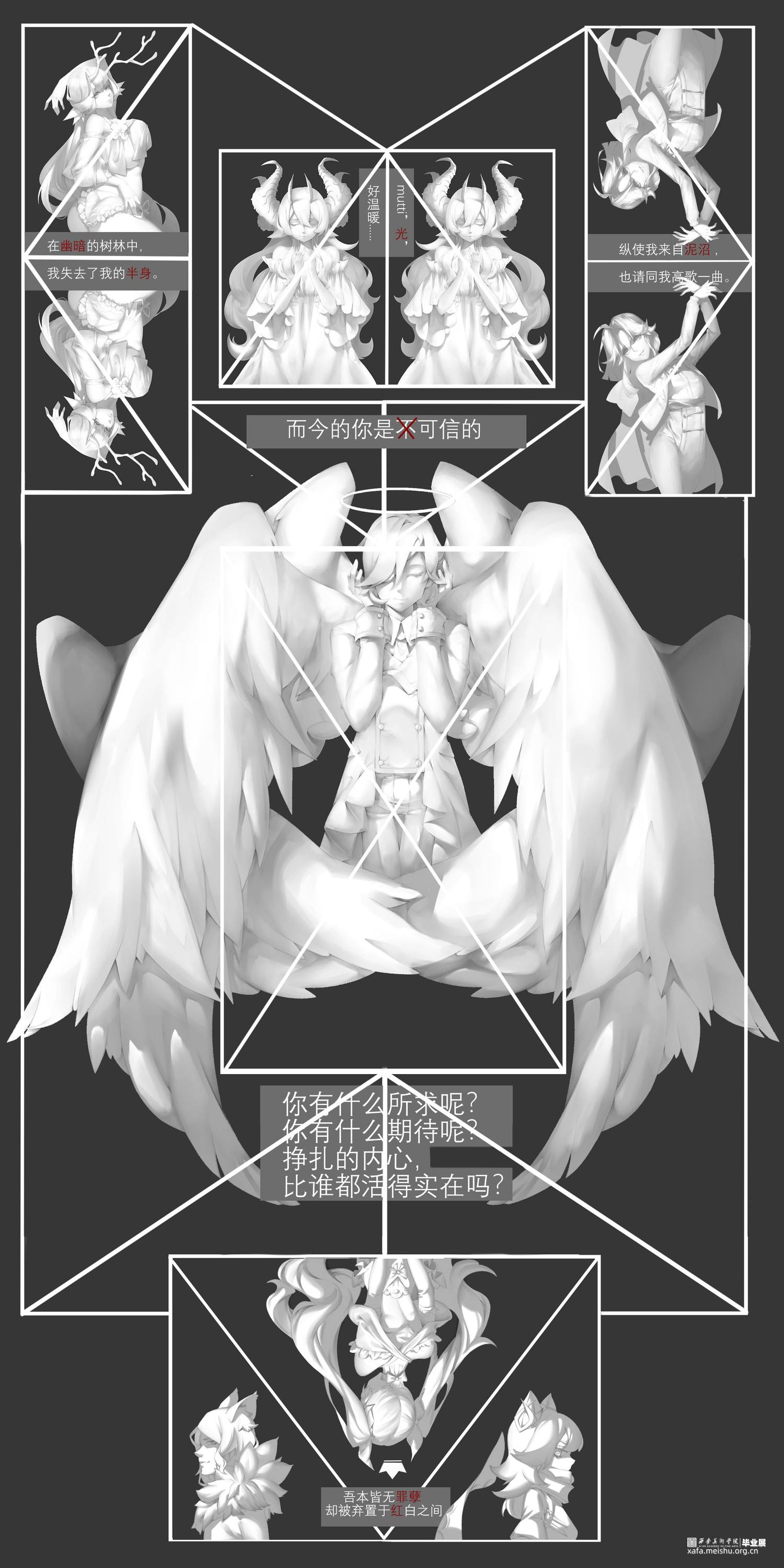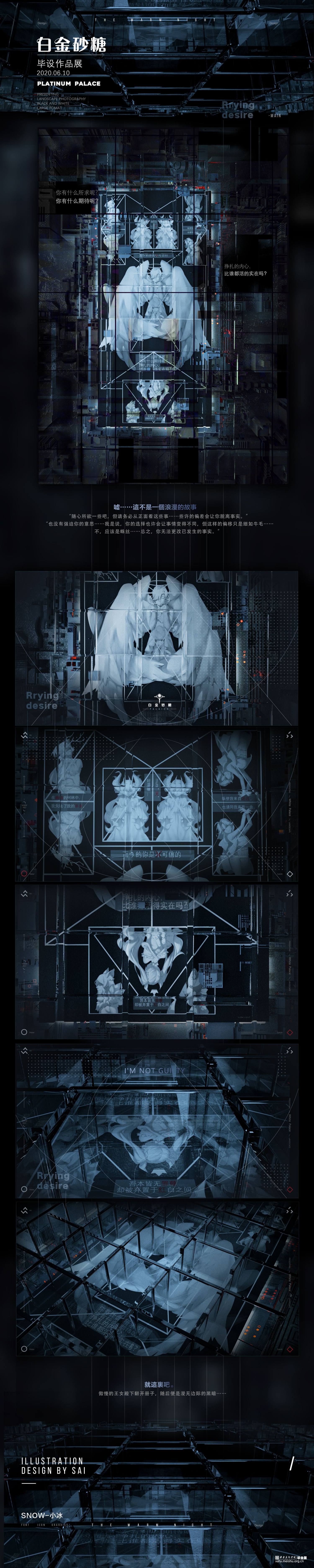 白金砂糖是我内心的防空洞,是与世界同步的天空之镜,也是一个不可触碰的乌托邦。我在白金砂糖中赋予我的朋友们形象,但总苦恼于无法知悉他们的全貌。在白金砂糖中的人物就和图纸一样扁平,变成了只有我看到的那一面的样子。这很糟糕,但却无从避免,站在这一个角度,我创作了这个作品。