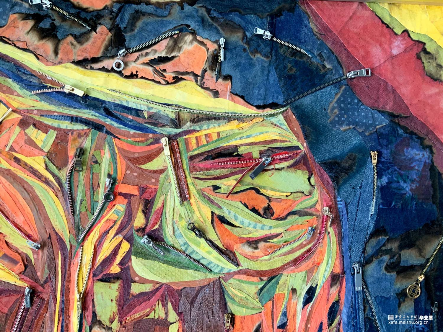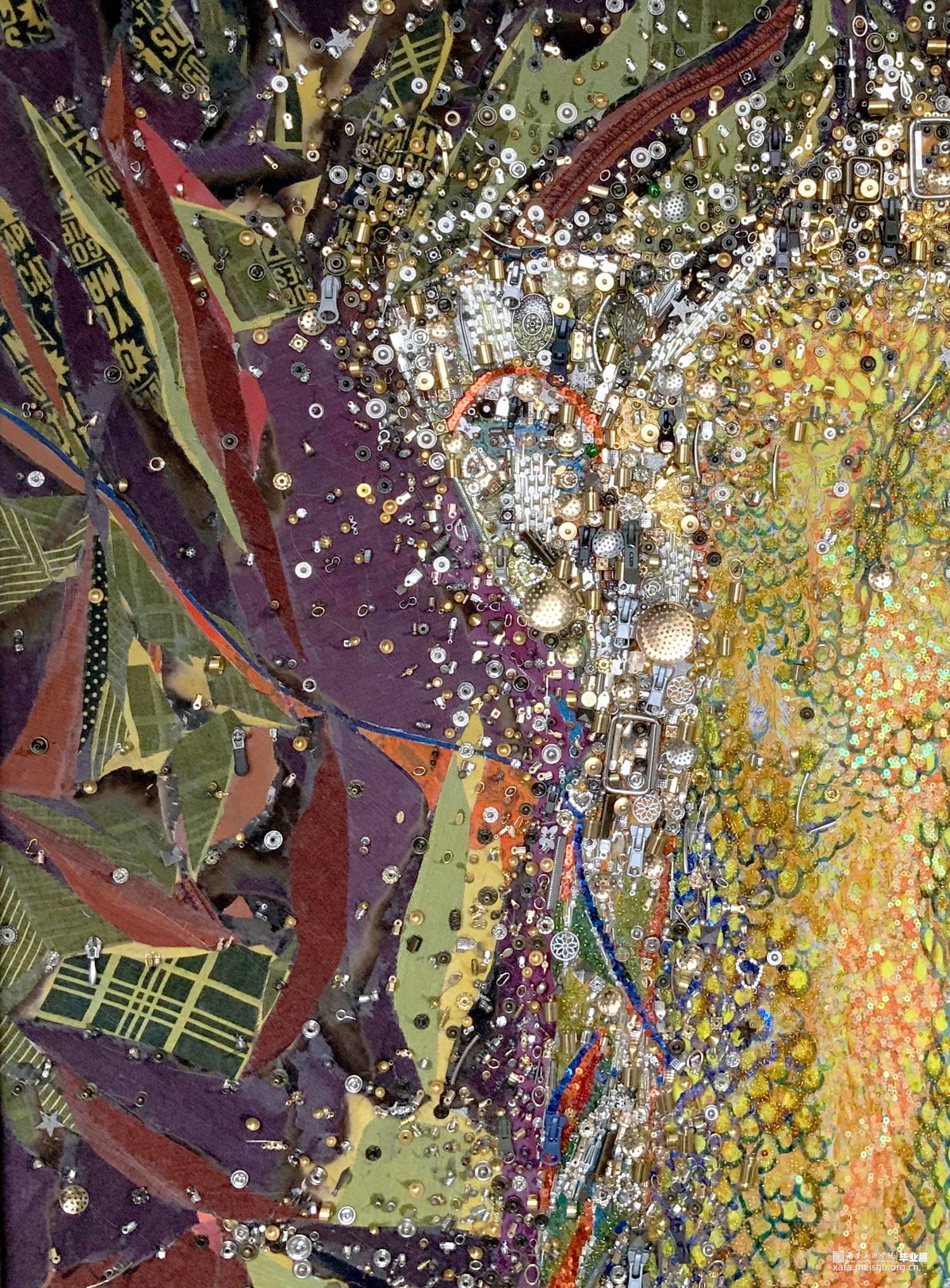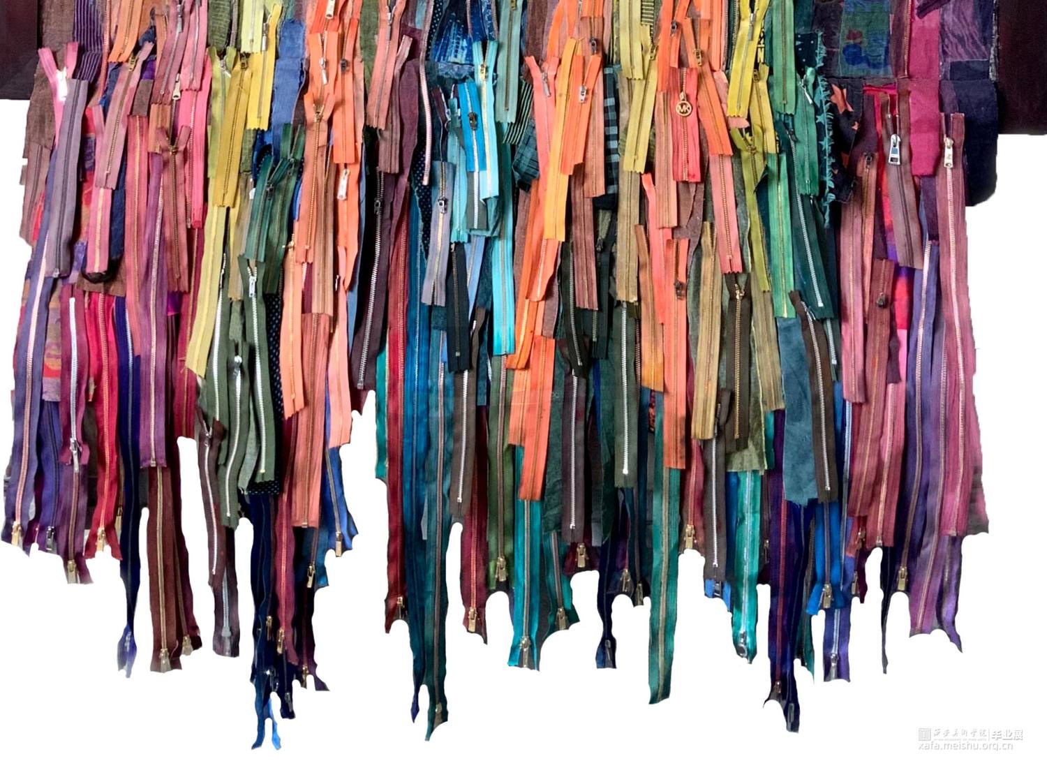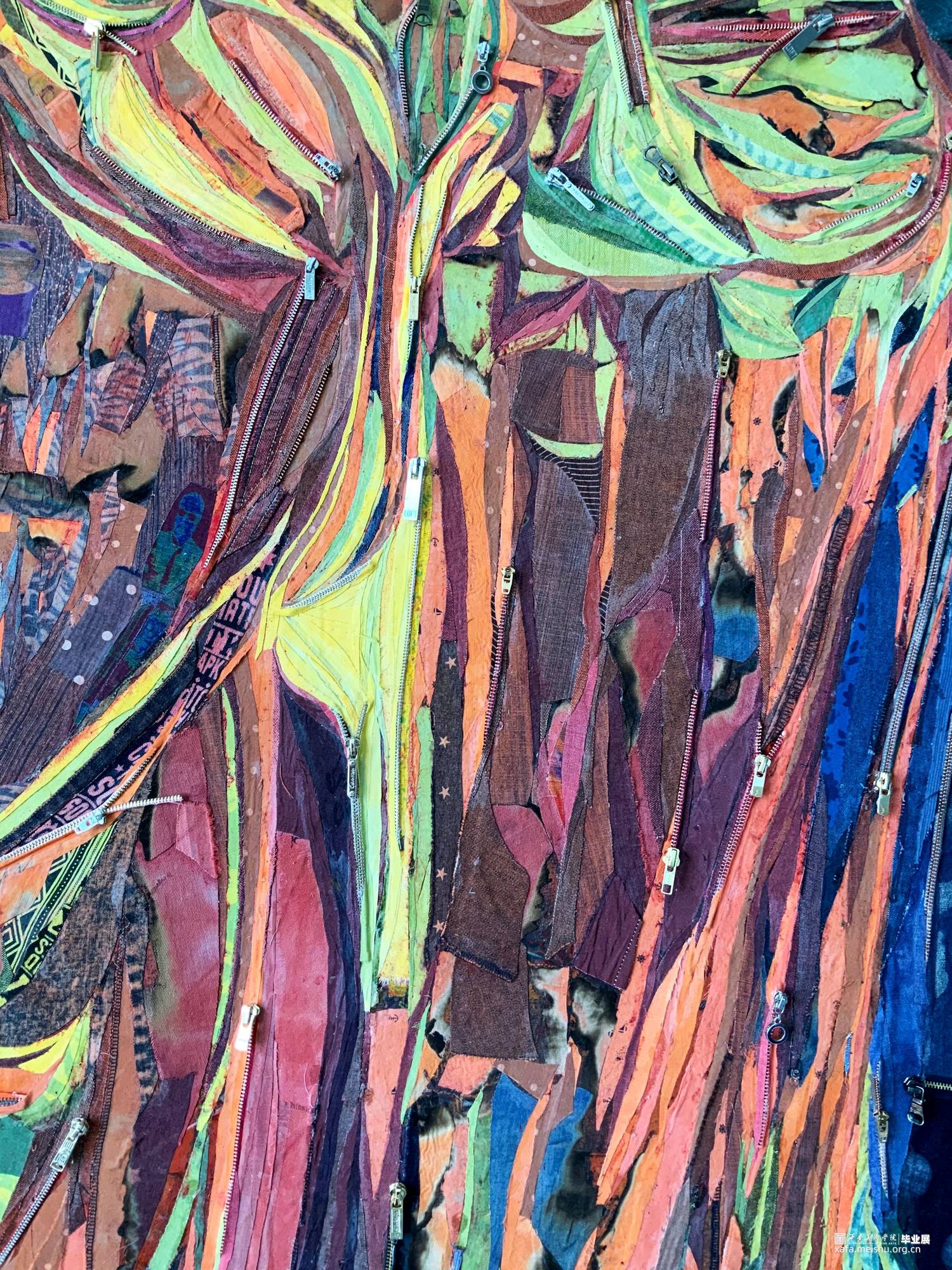 该系列作品表现主题为“温度”,作品《都市幻象·扬》中以牛仔裤坚韧挺拔的质地以及用牛仔布来塑造牛仔裤的意象形态,以此作为身体的象征性符号来隐喻“温度”,也隐喻和映射了城市中的冷和暖;作品《都市幻象·采》画面中主体的形态是以直立高筒靴子为原型,它不仅作为包裹身体的承载物,而且是身体的支点和行走的推动力量,以此作为身体的象征性符号来隐喻“温度”。