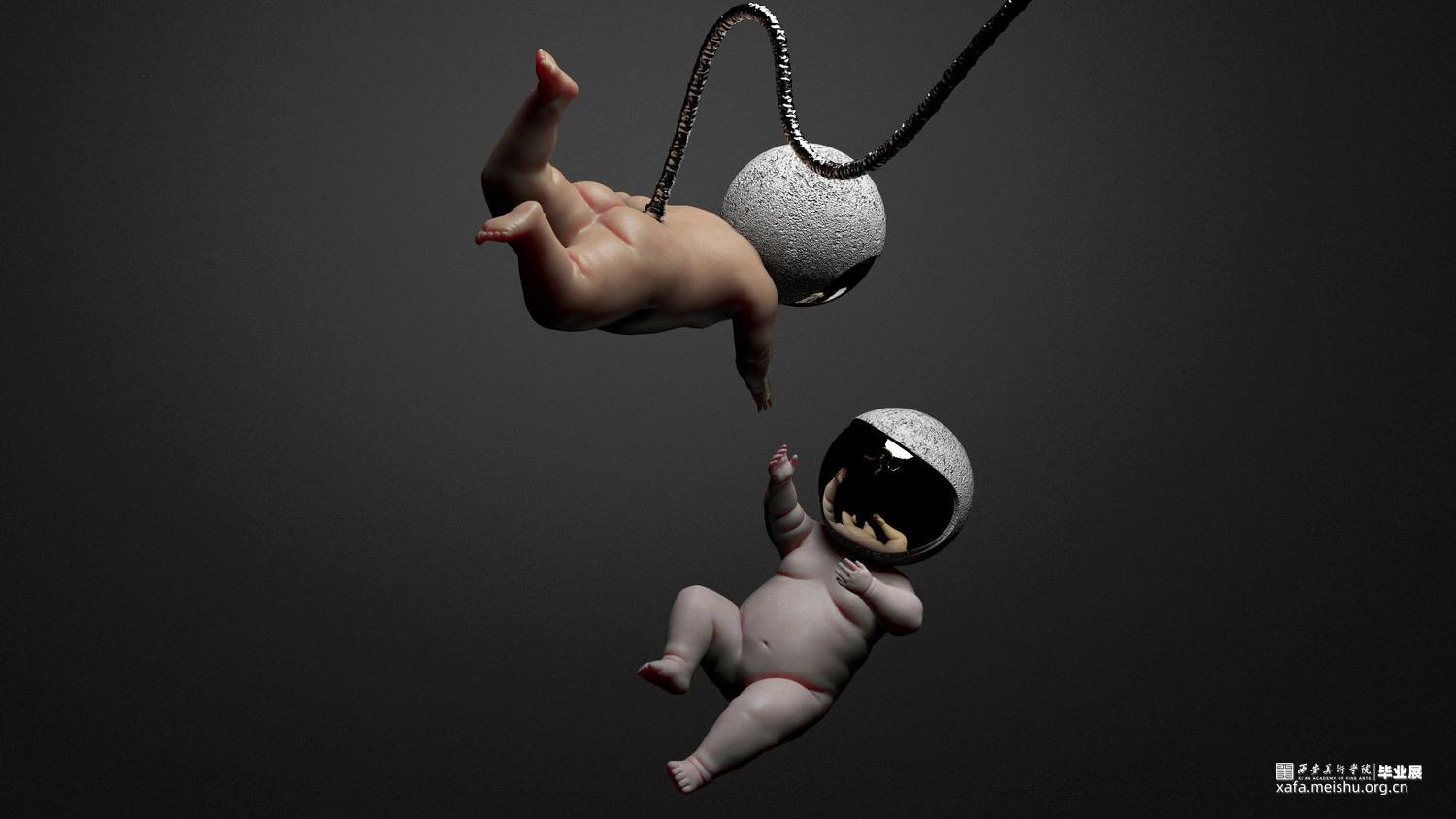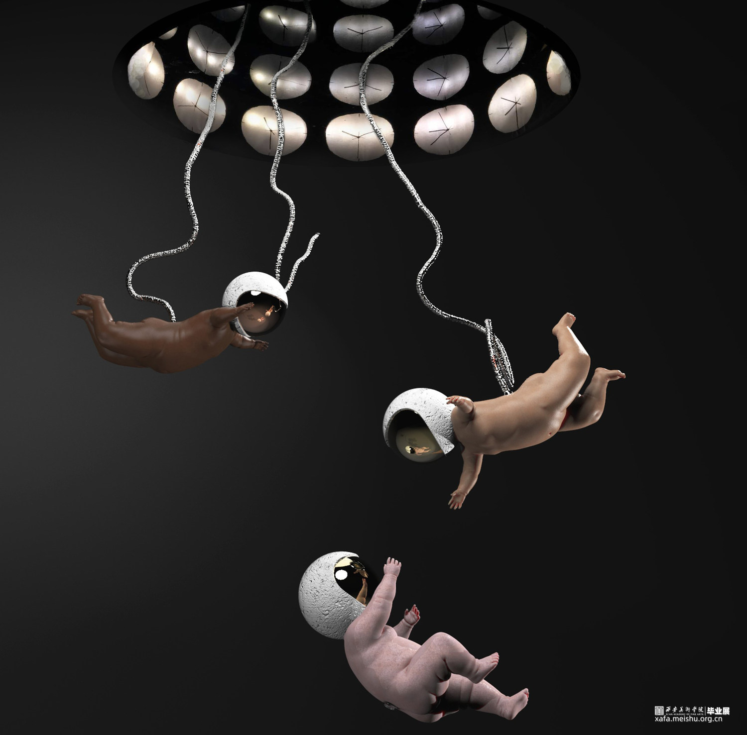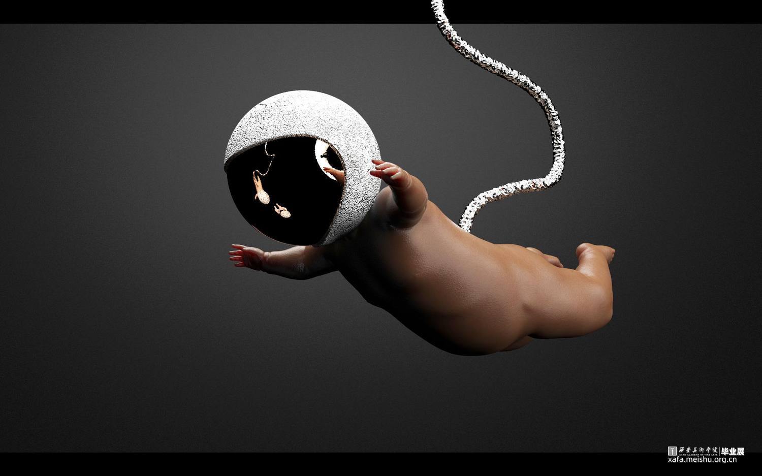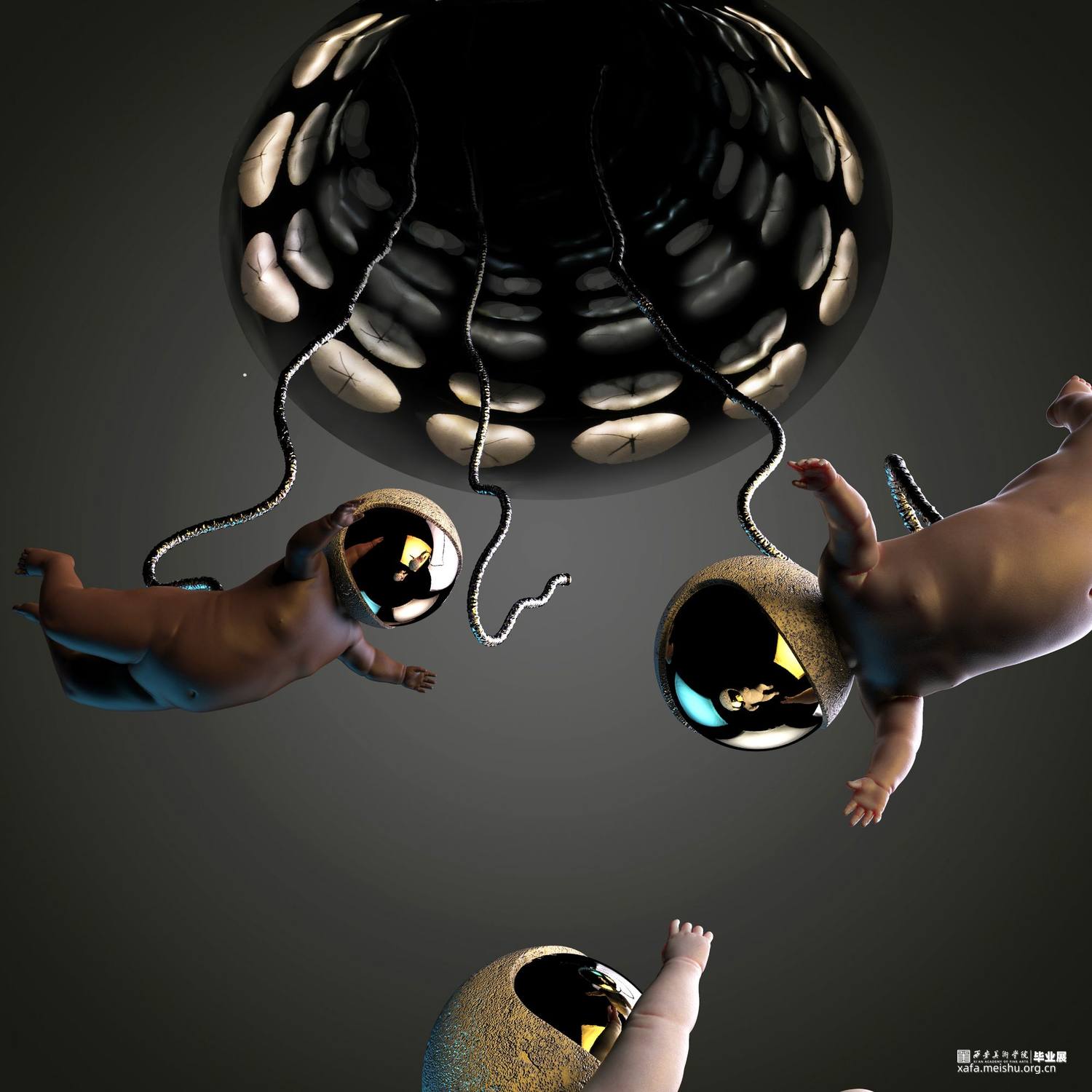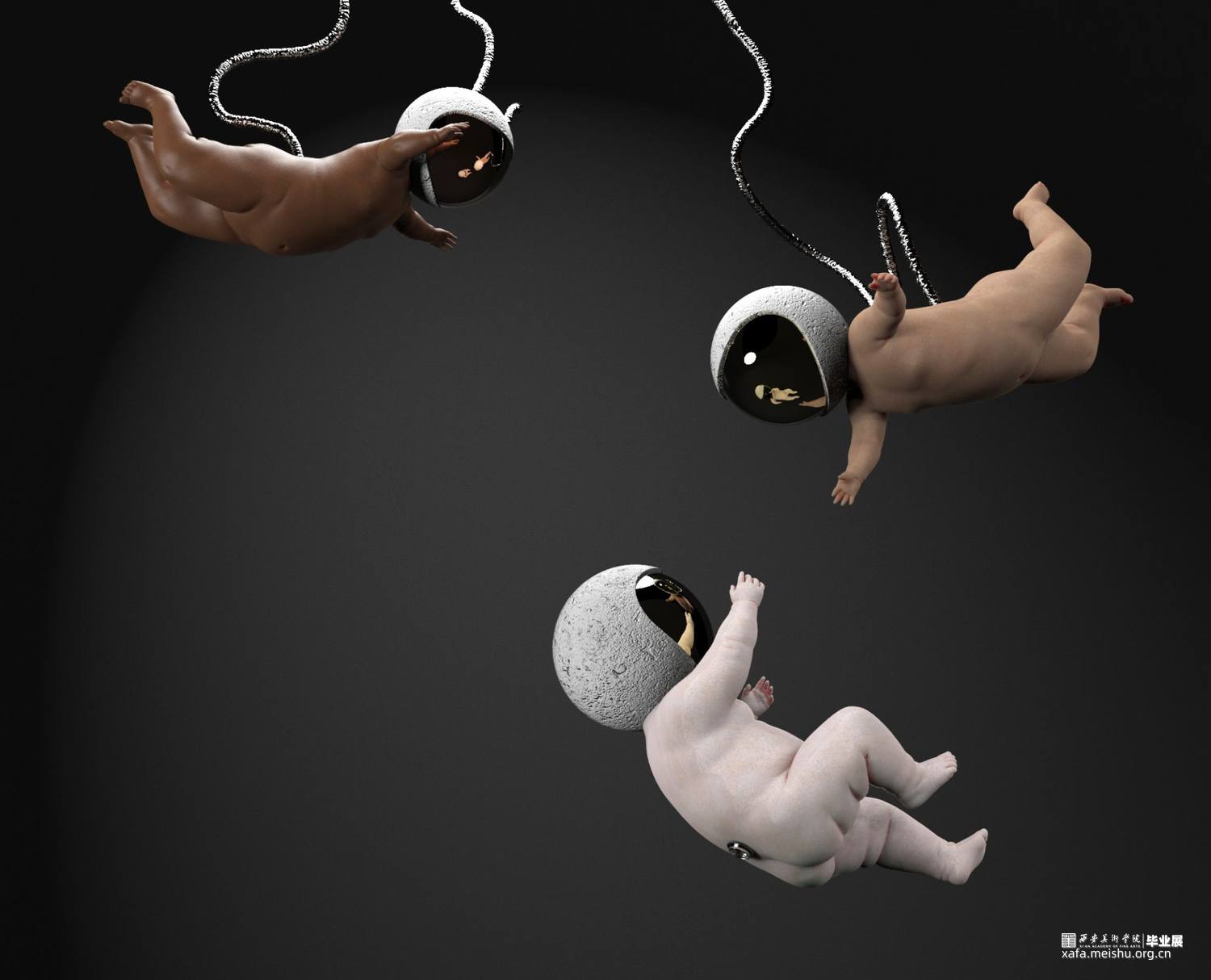 我是个科幻迷,我总喜欢把各种事物放在宇宙中,放到千年后,虽然会有些厌世的后遗症,但也让我能够很平静的面对很多事,从整个宇宙的角度看如今的大多数战争、种族与宗教矛盾是无意义的,生物活着的意义在于基因的永生,人类基因的永生取决于社会与科技的不停进步,在科技飞速发展的今天,战争的破坏力更是愈加可怕。但是技术永远都不是原罪,社会问题才是。我的作品背景架构在人类步入星际时代,那是一个令我向往的纪元,前提地球人类能够生存到那个年代。我用很直观的两种元素“时间和宇宙”去表达我所理解“平等与和平”,有人会说太直接不够艺术
