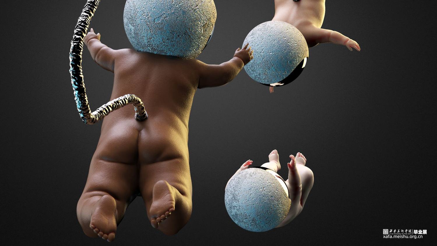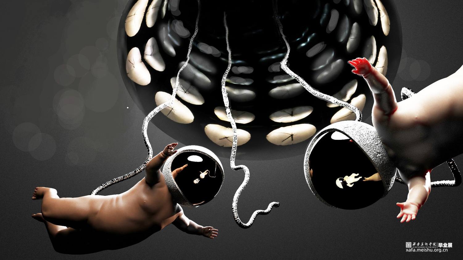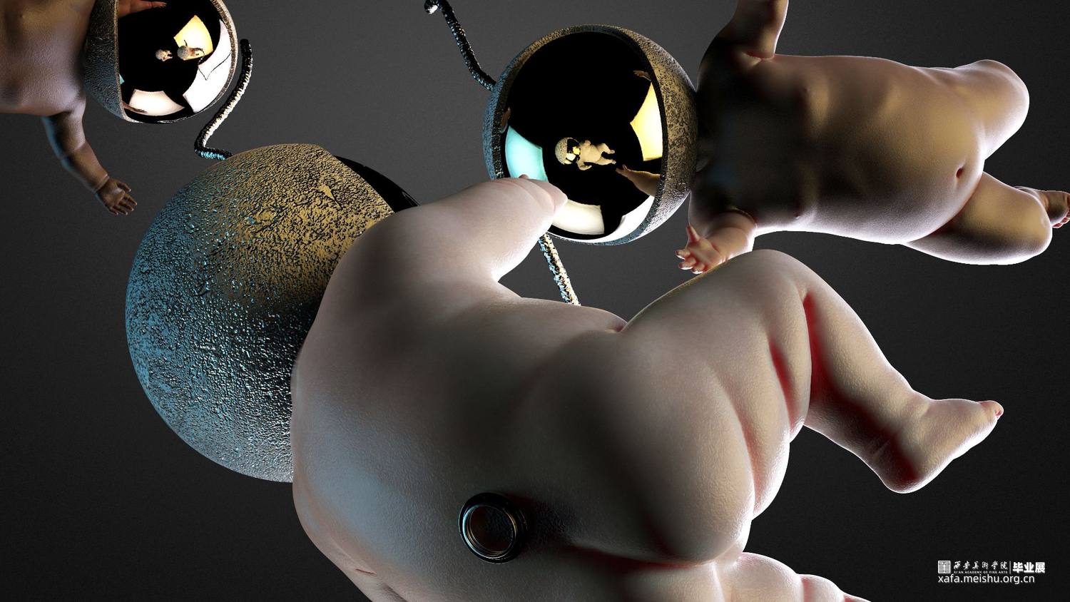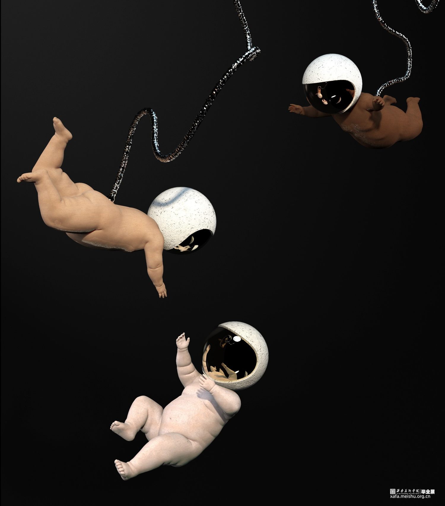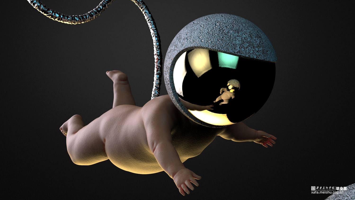 我是个科幻迷,我总喜欢把各种事物放在宇宙中,放到千年后,虽然会有些厌世的后遗症,但也让我能够很平静的面对很多事,从整个宇宙的角度看如今的大多数战争、种族与宗教矛盾是无意义的,生物活着的意义在于基因的永生,人类基因的永生取决于社会与科技的不停进步,在科技飞速发展的今天,战争的破坏力更是愈加可怕。但是技术永远都不是原罪,社会问题才是。我的作品背景架构在人类步入星际时代,那是一个令我向往的纪元,前提地球人类能够生存到那个年代。我用很直观的两种元素“时间和宇宙”去表达我所理解“平等与和平”,有人会说太直接不够艺术