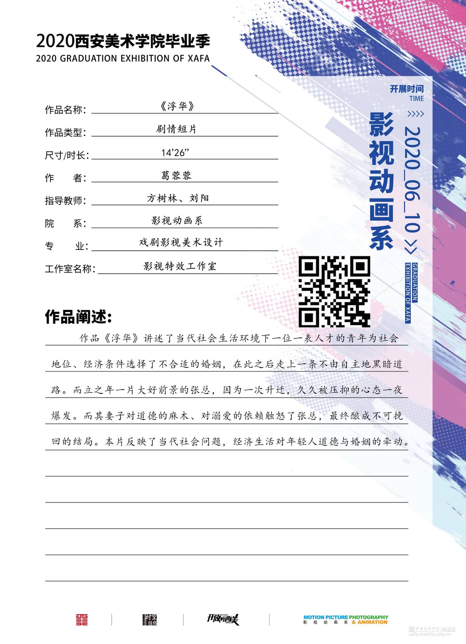 作品《浮华》讲述了当代社会生活环境下一位一表人才的青年为社会地位、经济条件选择了不合适的婚姻,在此之后走上一条不由自主地黑暗道路。而立之年一片大好前景的张总,因为一次升迁,久久被压抑的心态一夜爆发。而其妻子对道德的麻木、对溺爱的依赖触怒了张总,最终酿成不可挽回的结局。本片反映了当代社会话题,经济生活对年轻人道德与婚姻的牵动。