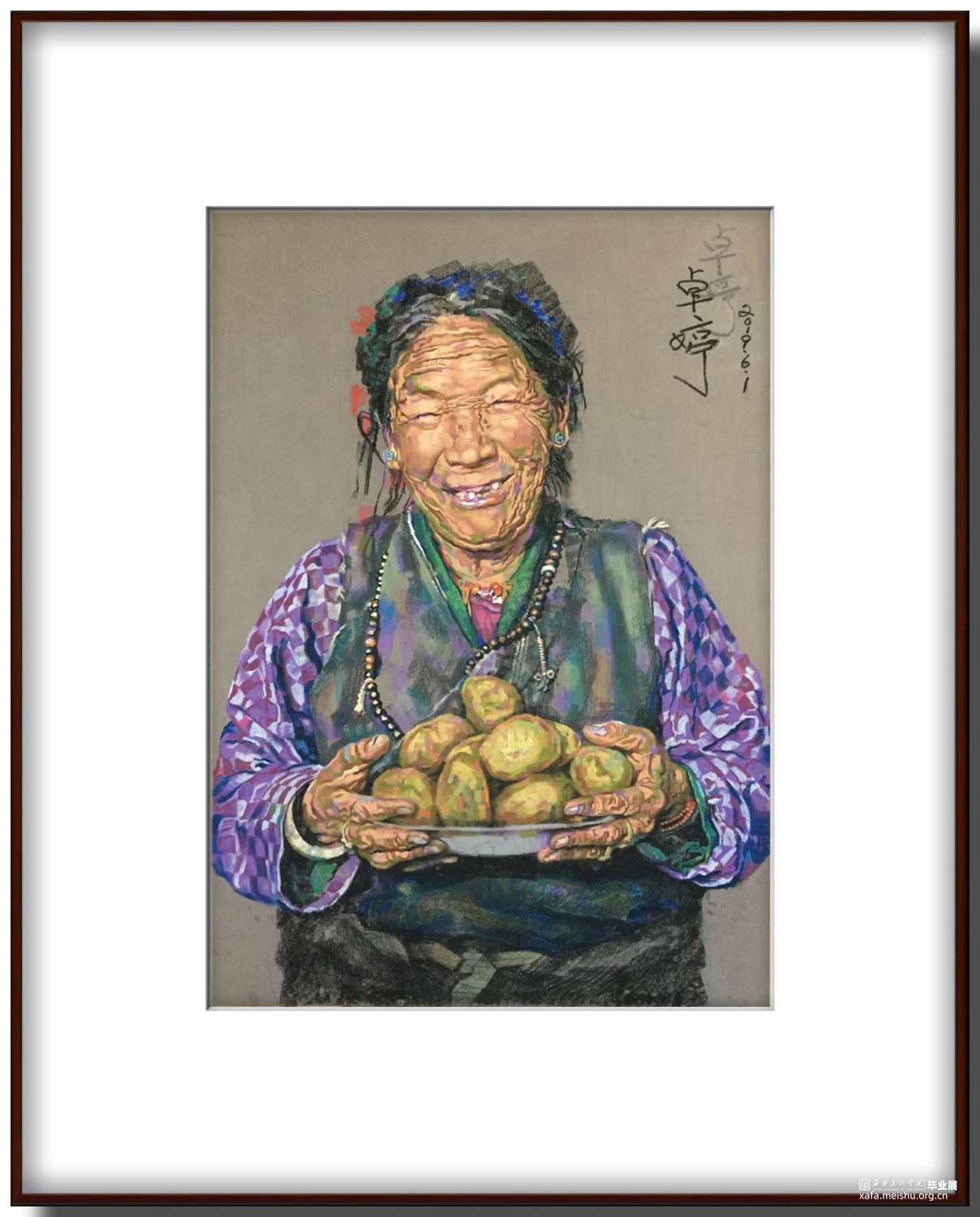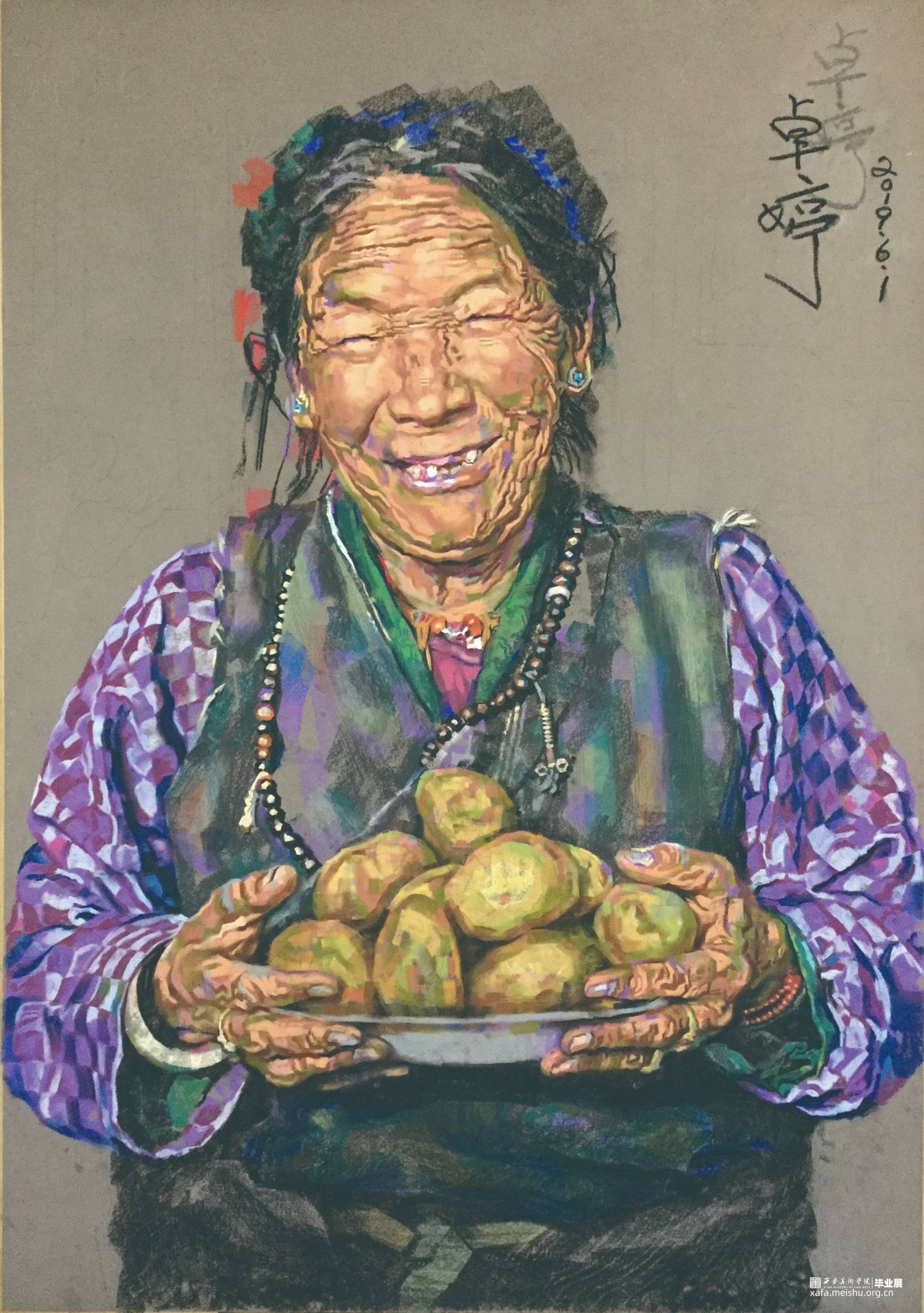 公益题材能反映出人类早期艺术创作中鲜活纯净的灵魂,体现人们来自心底对美好生活的向往。公益是我一直非常热爱做的事,我也非常乐意通过我的创作来为公益事业做出一点贡献。西藏自治区南木林县平均海拔近4000米,光照充足,一年一季的艾玛土豆是藏族老乡们的一日三餐。这种土豆有1000多年的历史,蕴含丰富的钙磷钾等微量元素,是世界上最好吃的土豆之一。南木林县副县长张波告诉我们,今年产量更是达到20余万吨,然而丰收却换不回收成,由于艾玛土豆的储存时间只有四个月,每年十月份采收后,如果吃不完、卖不完,只能眼睁睁看它发芽腐烂。这是为解决他们的难题而作的公益画。