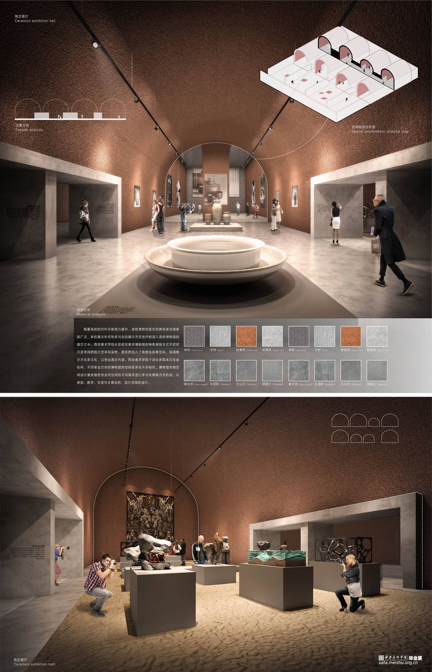 强调展陈空间设计的教学性特征,其目的是为了更好的服务与在校师生,方便学生与老师在展陈空间中近距离与展品对话,围绕展品进行现场教学与学术研讨,设计中留有一定的授课空间,浓郁的校园文化浸透其中,体现出与常规博物馆的不同之处,以此更好的提升西安美术学院美术博物馆展陈空间特有的文化内涵。