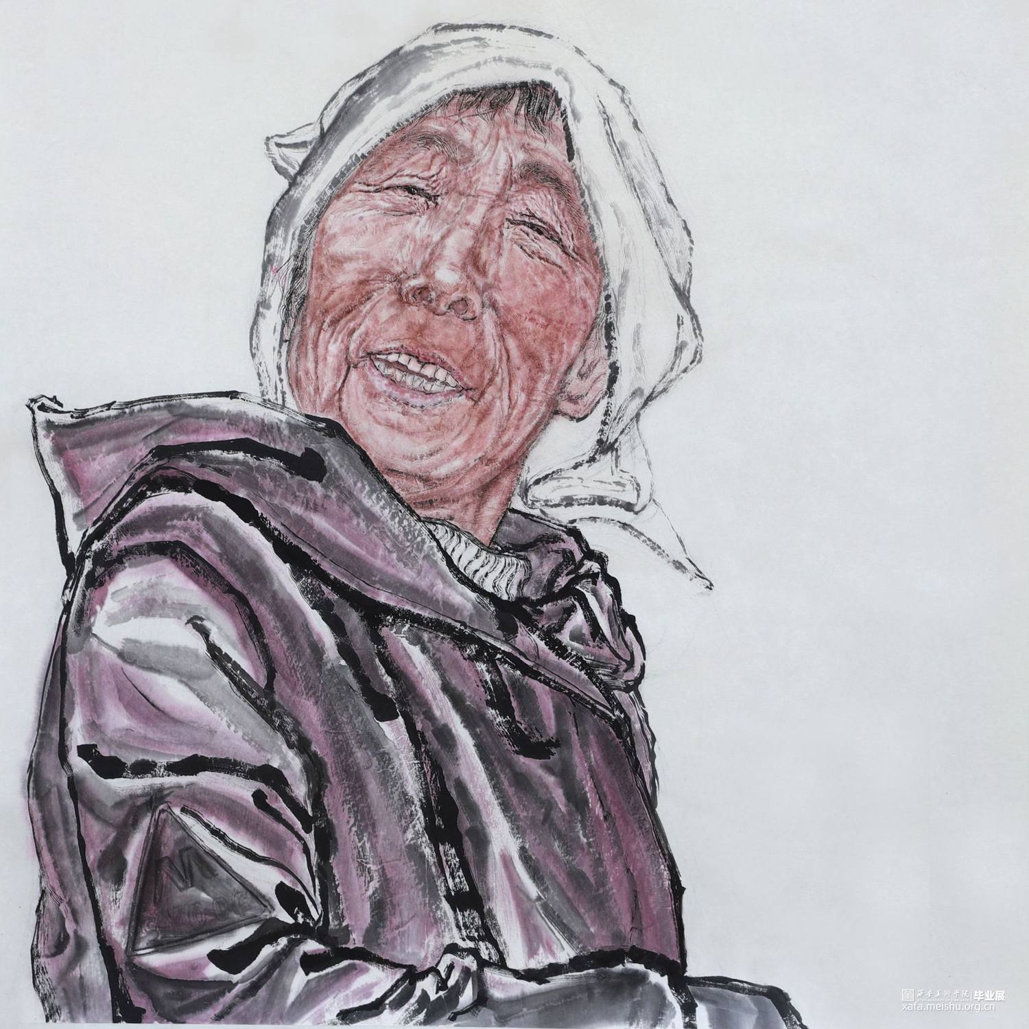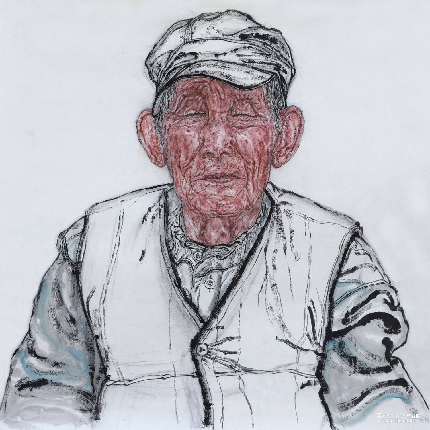 去陕北写生期间,被这些陕北老农村特有的典型形象深深吸引。用相机拍摄了很多具有代表性的陕北老农形象,回到学校后,尝试了多种表达方式,最终决定用这种色彩较为浓烈的方式,企图描绘出典型的陕北老农形象,典型中每一个人物的形象和肤色又相差甚远,最终经过不断尝试,绘制成陕北老农群像组画。