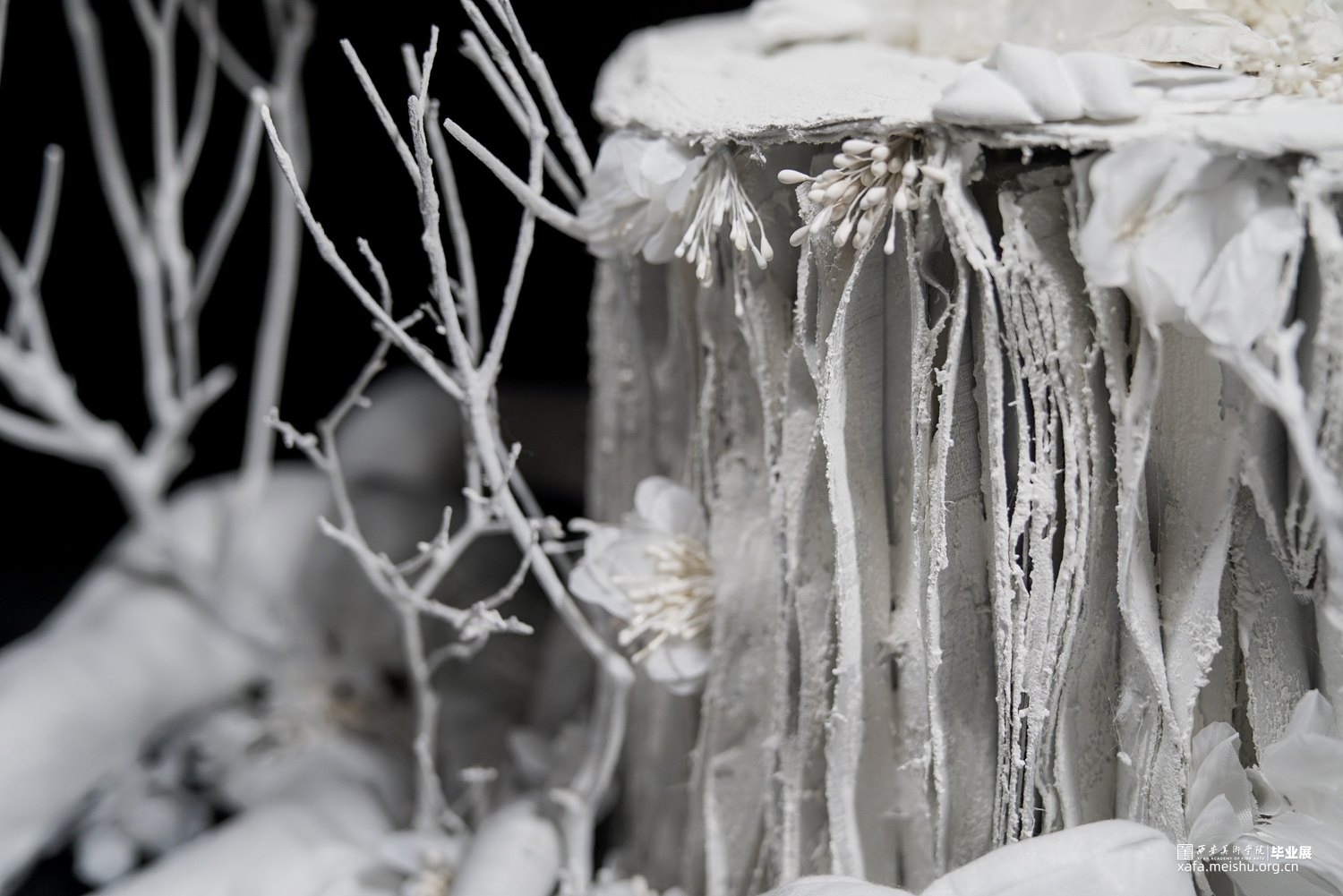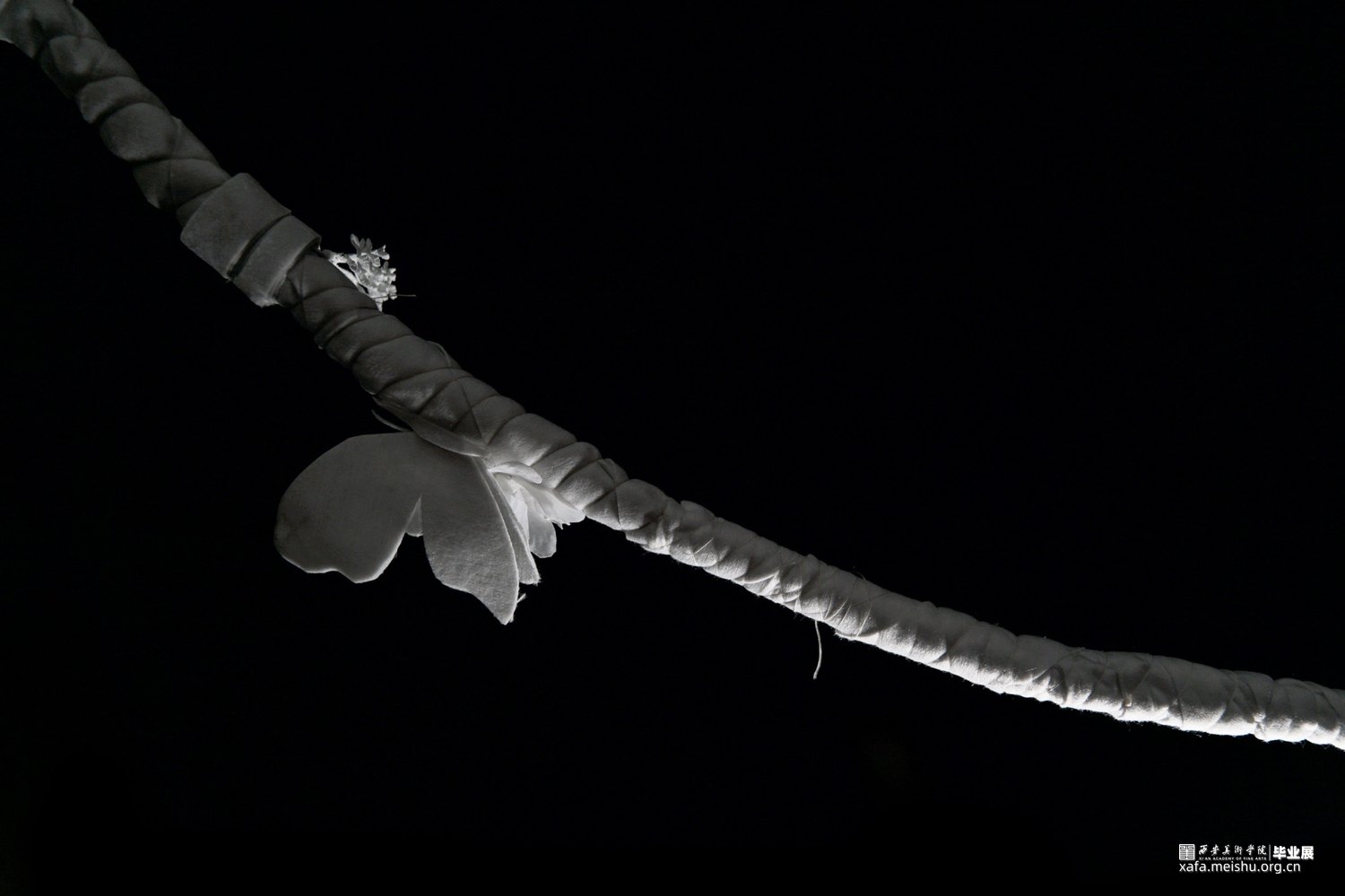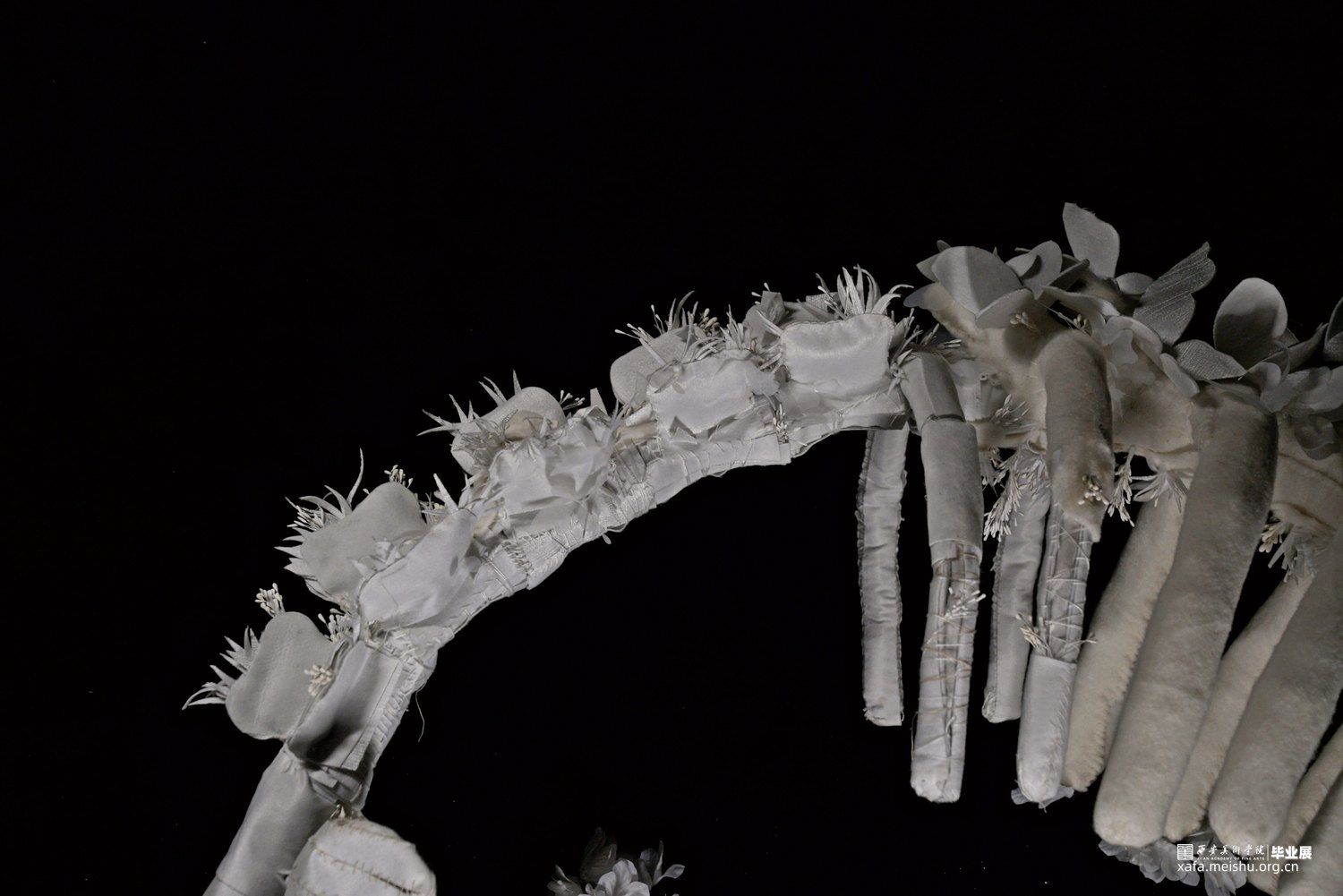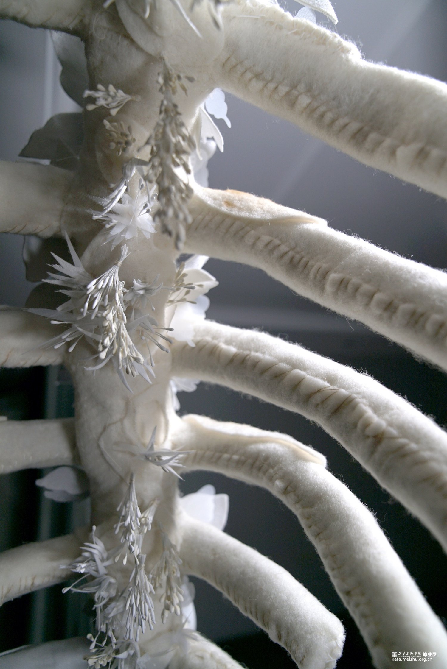 《The way to leave》系列作品。七千年前自然灭绝的大角鹿的头骨与近年由于人类活动而灭绝的动物的骨骼同时呈现。生物本可以优胜劣汰自然更替,而人类文明的发展严重影响了这个过程。生命仍然会以其他方式延续,但它们应该拥有更好的结局。动物骨骼上落满蝴蝶,骨骼缝隙处生出细芽,表现生命的转化。