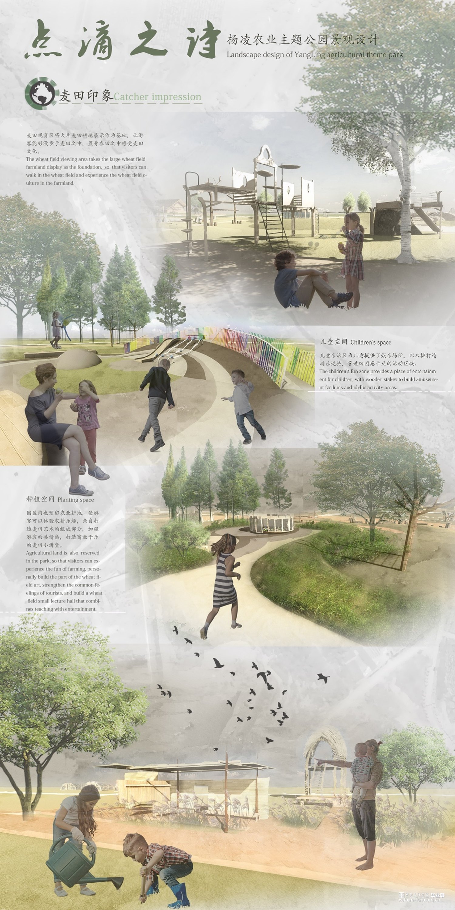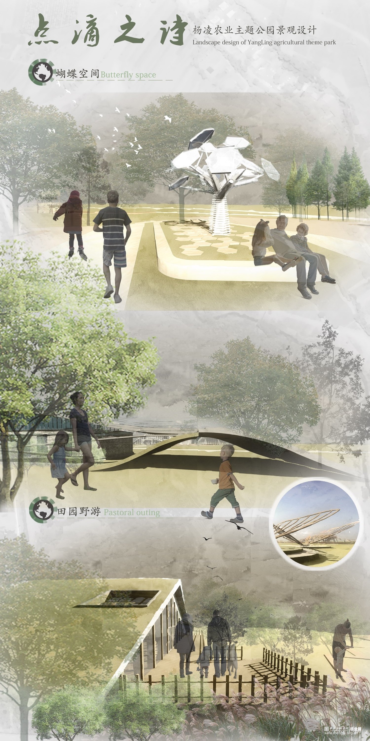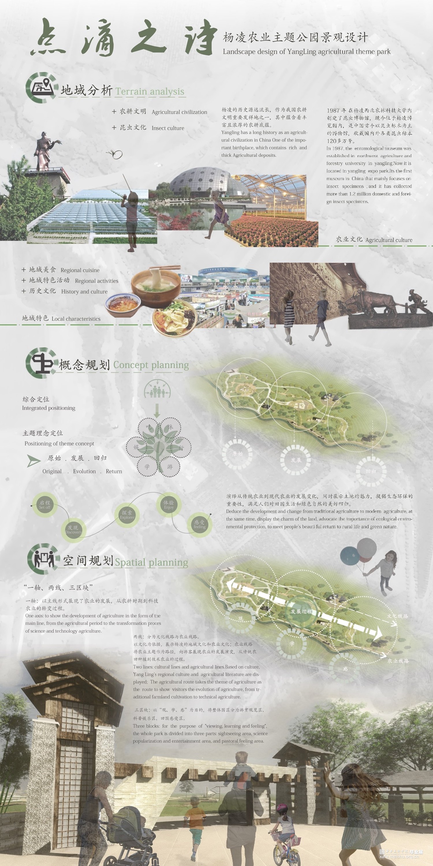 以“生态、技术、创意”为园区亮点,针对杨凌示范区的农业发展进程和文化资源进行大量考察和探索,将相关信息进行整理,合理注入园区营造中,提高园区的文化价值和自身价值。基于城市和郊区之间的和谐发展,完善景区中的各种功能,面对不同游人的要求,达到功能的多样性。围绕杨凌示范区的地域和农业特性创建独特亮点,对比现有的农业主题公园可以做到独树一帜,成为吸引顾客的关键点,做到一个包含观光游览、休闲娱乐、科普学习为集和体的综合性农业主题公园。