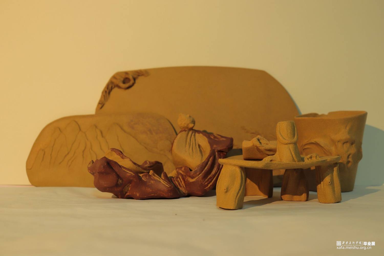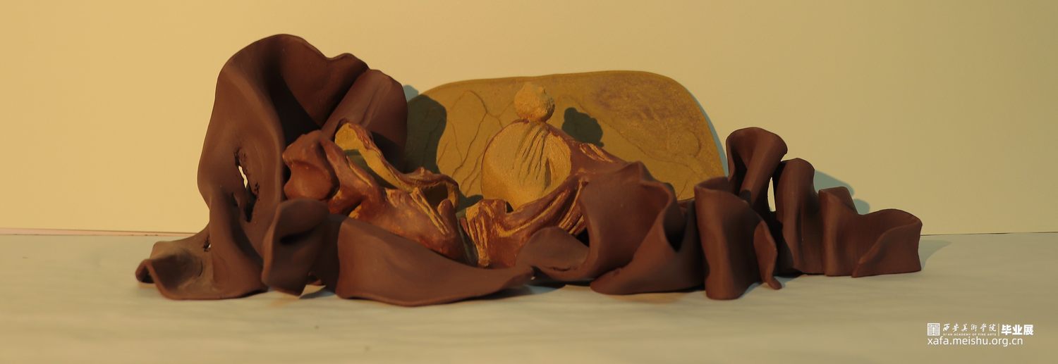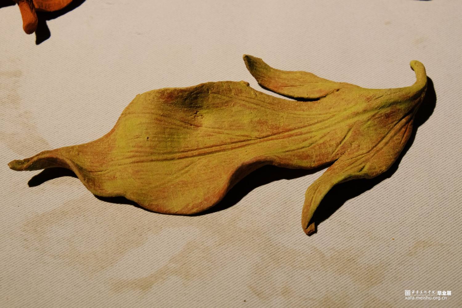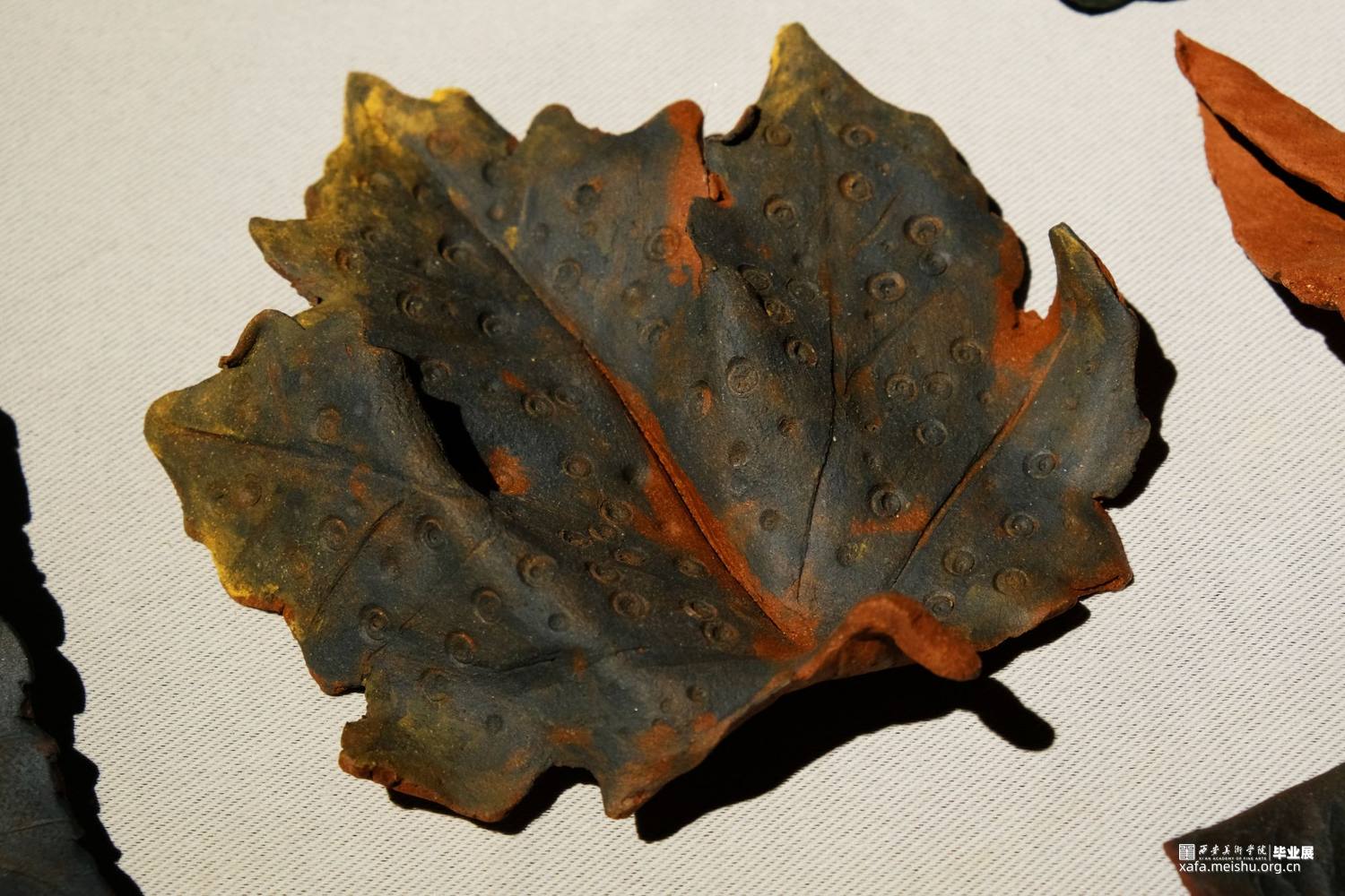 枯叶的堆积和绿叶的独立形成鲜明对比,用紫砂制作不用上釉可以更体现树叶外表的纹理。