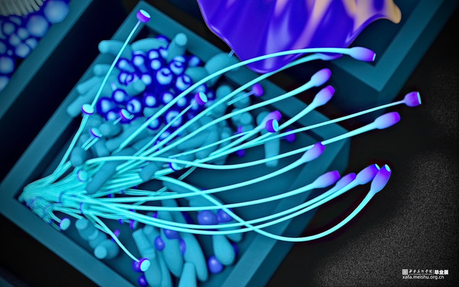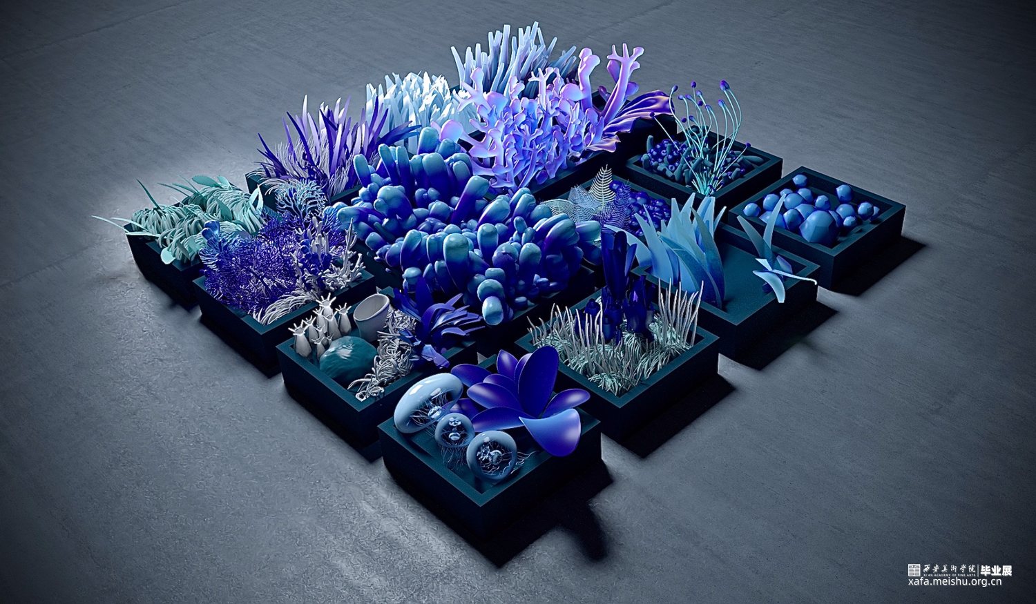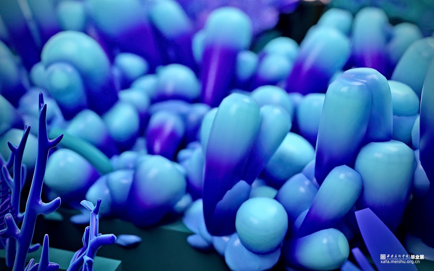 “深海呓语”以海洋为创作灵感,海底的珊瑚、水草都是海洋生命灵动的象征,它们的摆动就像人的呼吸,是轻盈的静谧的。然而随着环境恶化,全球气候变暖,海水温度上升,这使海洋生态面临着前所未有的危机。数亿年生生不息的珊瑚在近年来开始白化,它们变得脆弱。因此,我所创作的毕业作品希望可以引发人们对于海洋生态的关注和反思。