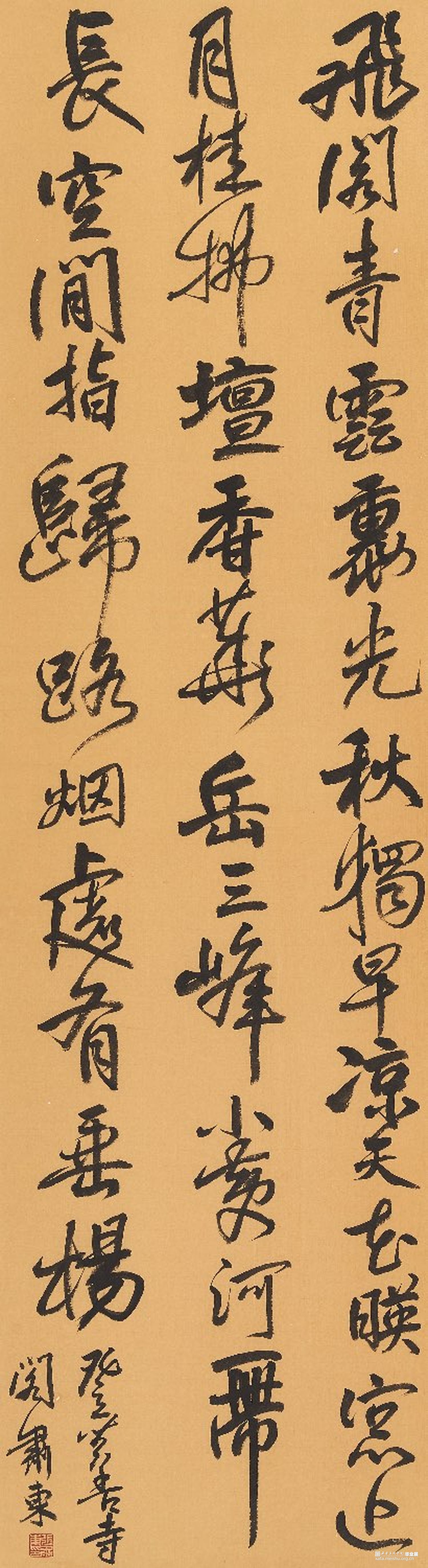 使用六尺条屏,仿古色,行草书笔意创作古诗《登圣善寺阁》。