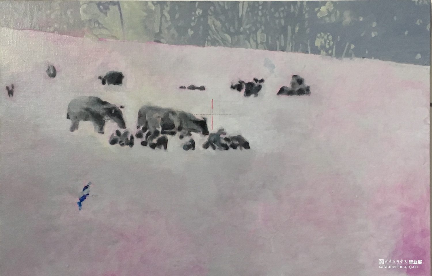 在如今全球化的大环境下,依然存在局部战争及暴力对抗,期望通过画面表现一些历史事件后的个人以及家庭的经历,一些家庭依然要面对这种不安的冷或热的社会问题、国家安全问题或是历史遗留问题,期望通过作品去触及人类的不安感受。在控制和即兴的创作状态间去探索作品抽象与具象,秩序与自由之间的稳定关系。