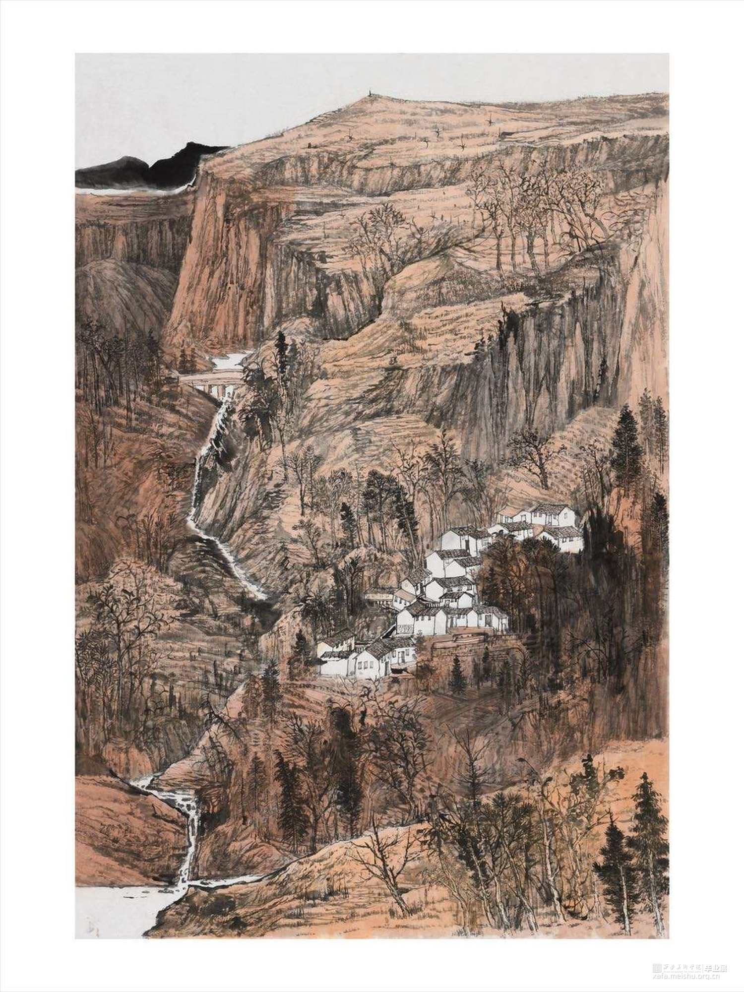 华山以其挺拔险要屹立于陕西秦岭山脉之中。整个山体如同一块巨大的花岗岩,我一直存在表现之欲,但不知从何落笔,后经过多次近距离触摸和体会再现华山纯粹之美,感受岩石规律中的无穷变化之趣。在研究生学习期间,我多次在考察写生时,被秦岭华山那苍茫、大气、恢弘、野逸的气质所深深吸引,它深厚的地域文化与独特的地貌特征是我创作的源泉与动力。