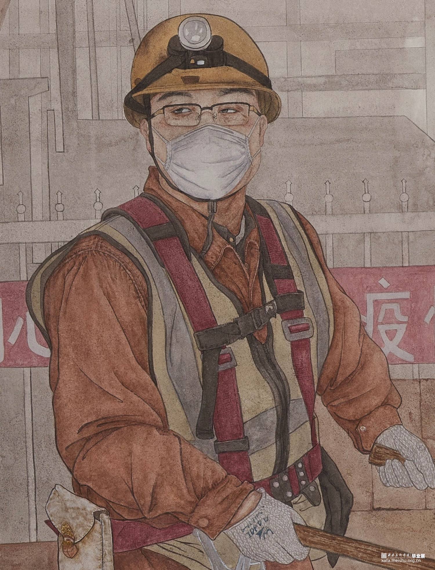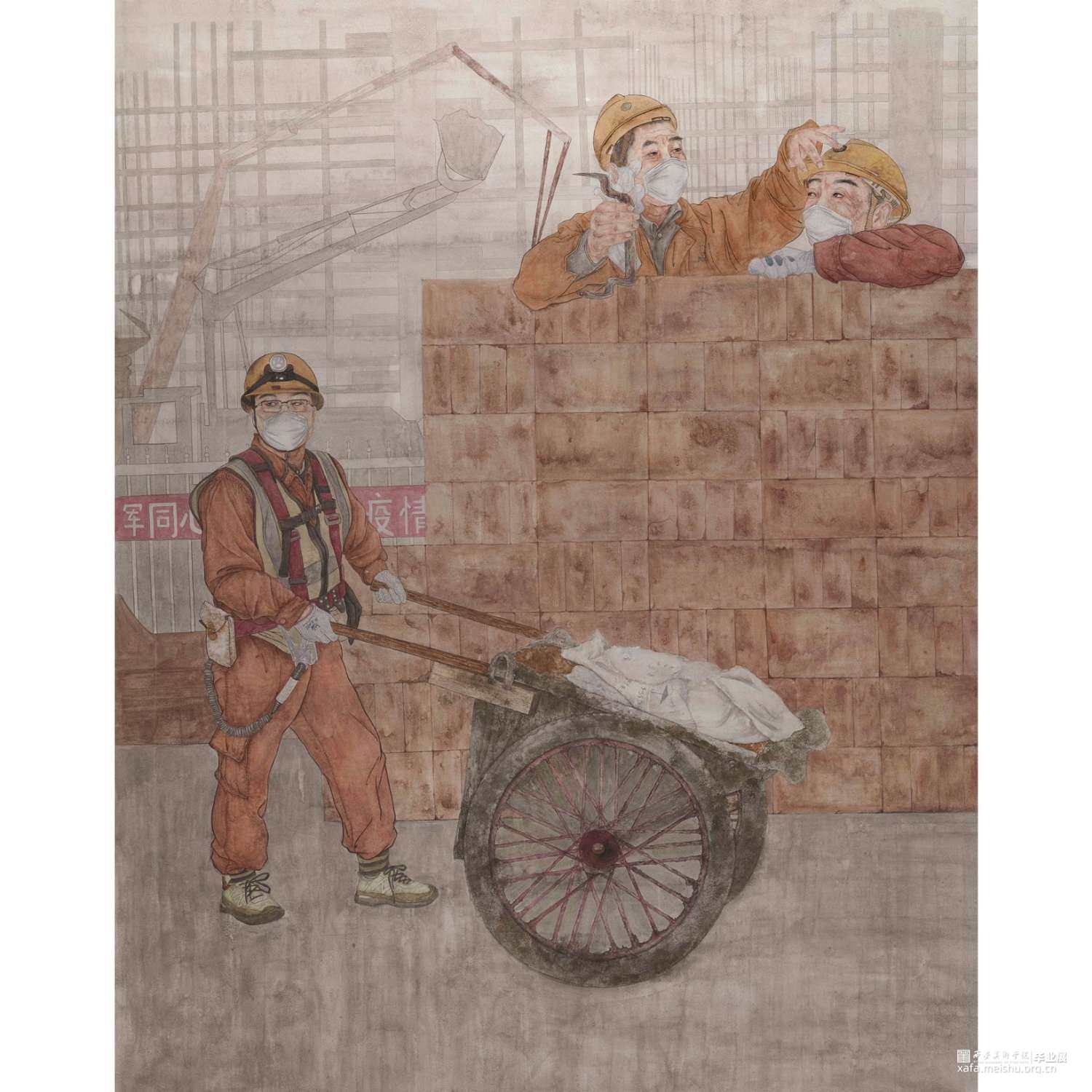 2020年初,全国都进入了疫情防控时期,我看过很多关于疫情防控的画展。大多都把焦点落于一线医护人员,医护人员是英雄,但是火神山医院、雷神山医院的建设展现出的中国速度,让我觉得这些建筑工人也是背后默默付出的英雄。他们在盖房子,但是已经和我们日常生活中的建筑意义不同了,他们加的每一块砖都是在拯救千千万万的生命。所有跻身于防疫工作的人都深深值得我们敬重,他们是我们的英雄,是中国的英雄!