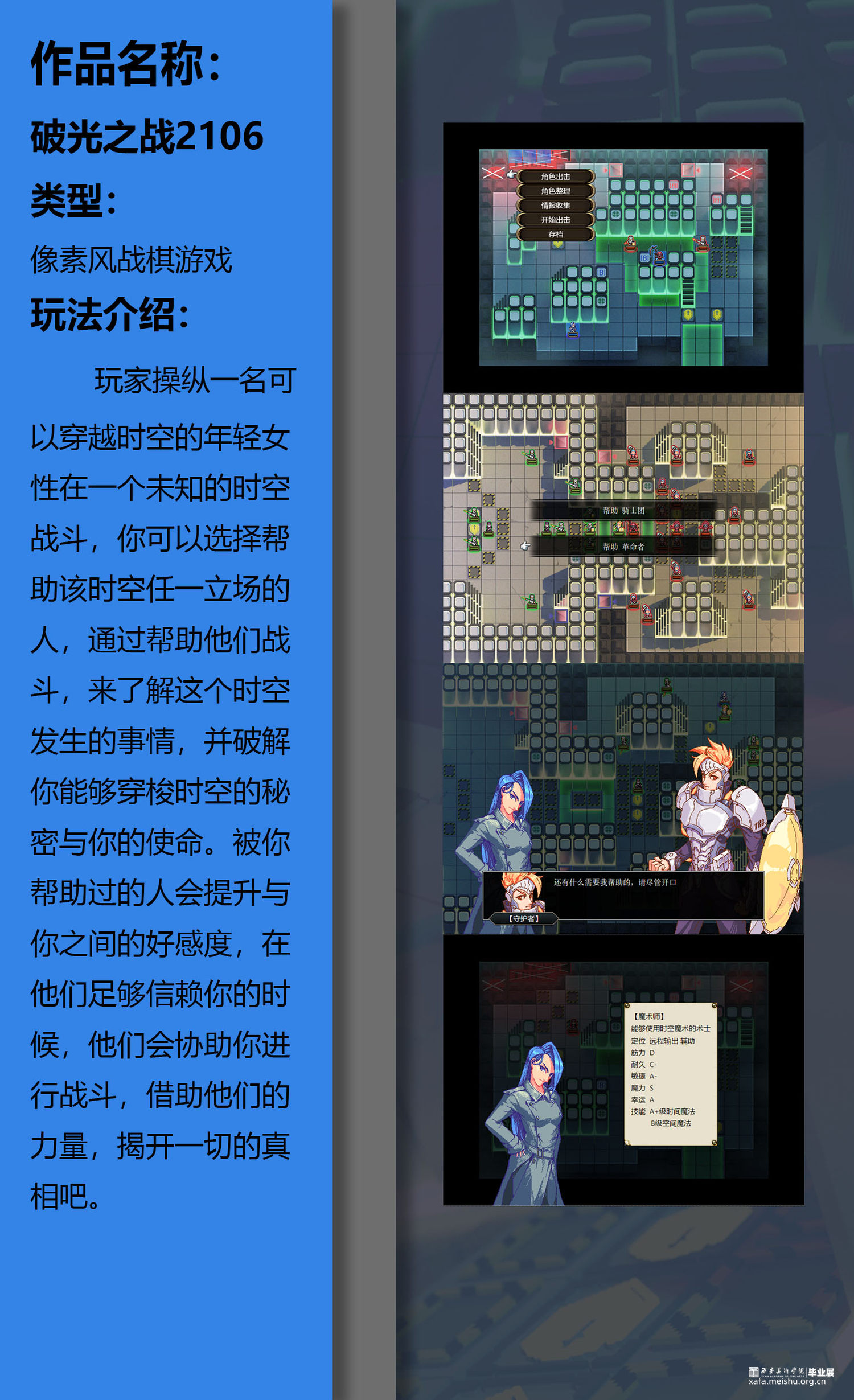 玩法介绍:玩家操纵一名可以穿越时空的年轻女性在一个未知的时空战斗,你可以选择帮助该时空任一立场的人,通过帮助他们战斗,来了解这个时空发生的事情,并破解你能够穿梭时空的秘密与你的使命。被你帮助过的人会提升与你之间的好感度,在他们足够信赖你的时候,他们会协助你进行战斗,借助他们的力量,揭开一切的真相吧。