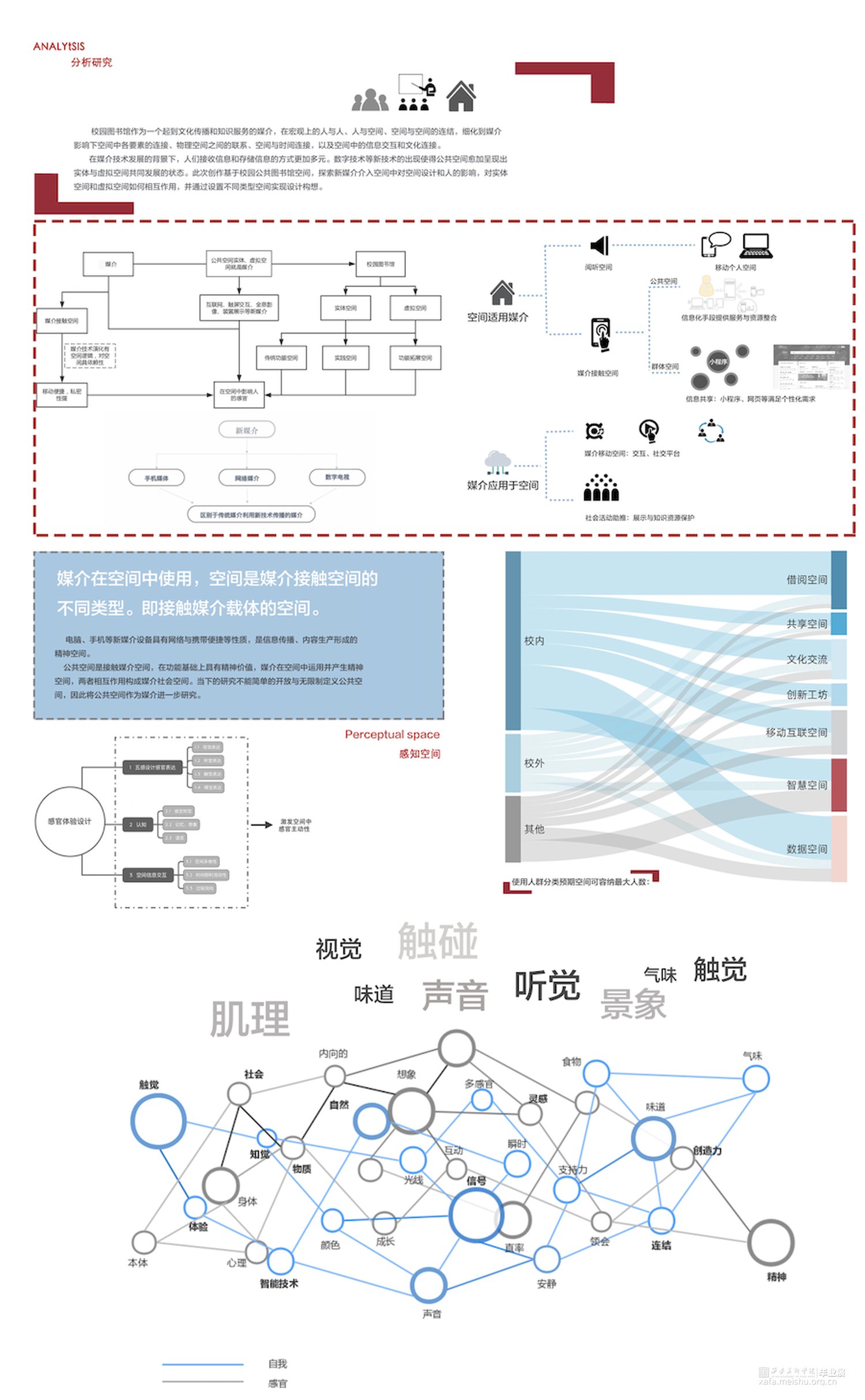 校园图书馆作为一个起到文化传播和知识服务的媒介,在宏观上的人与人、人与空间、空间与空间的连结,细化到媒介影响下空间中各要素的连接、物理空间之间的联系、空间与时间连接,以及空间中的信息交互和文化连接。