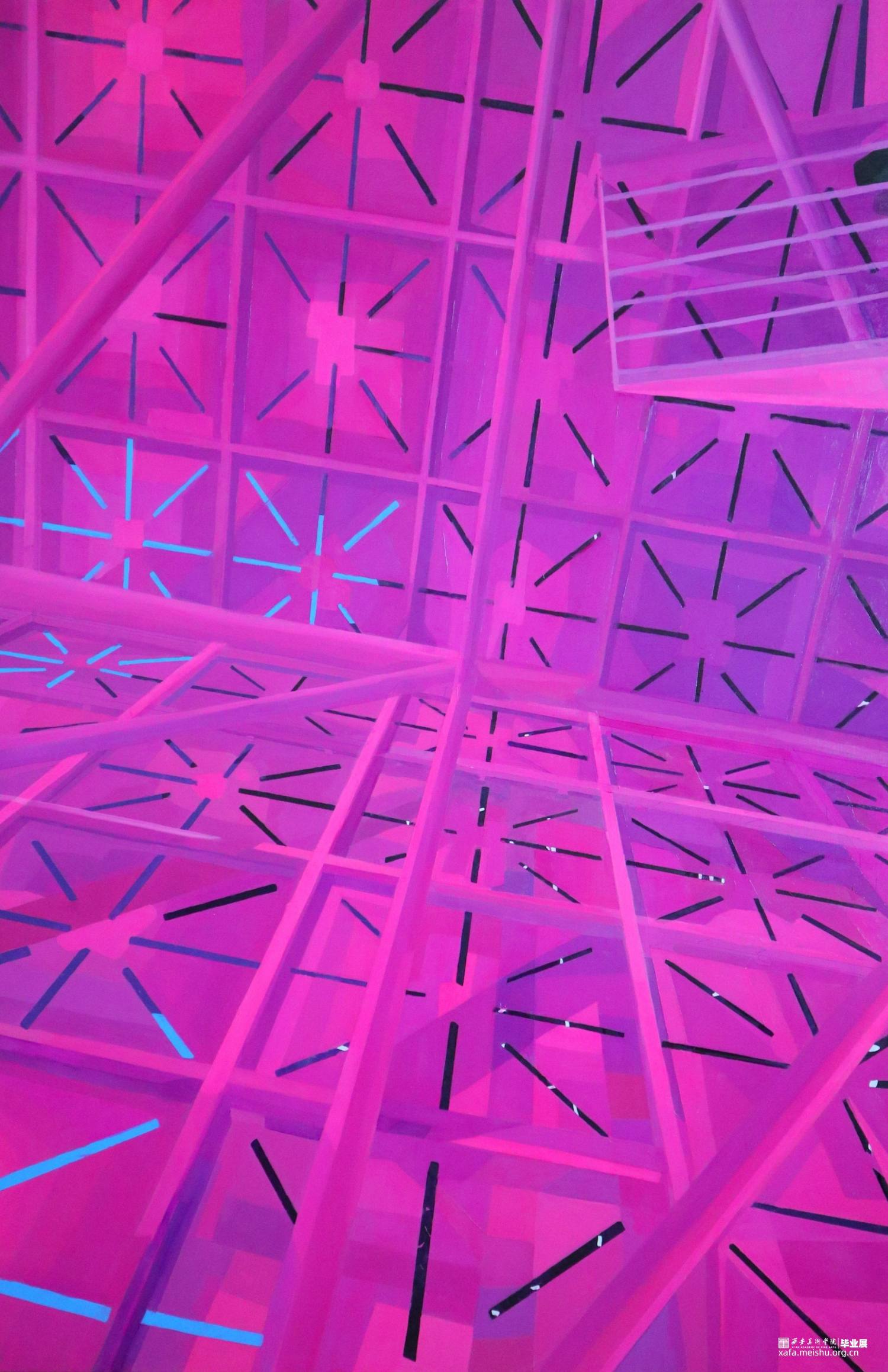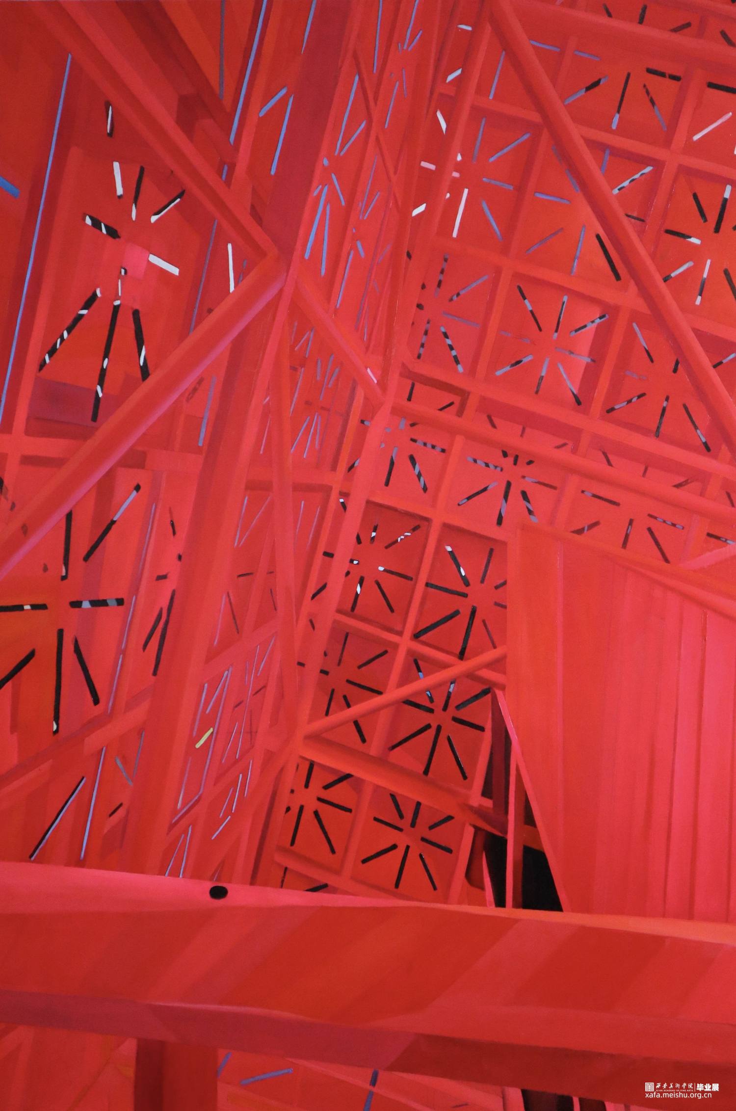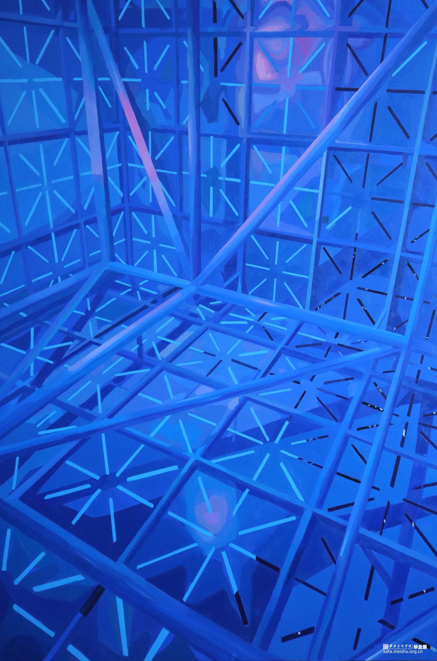 这组作品由蓝色、紫色、红色为基调的三幅画组成,体现当代都市环境下建筑物带给人的一种秩序感与色彩的冲击,介于抽象元素的表现与具象物体表现之间,探索新颖的油画语言和表现形式,探讨当代都市带给人类怎样的视觉冲击与情感体验。平面并且写实的创作手法,强调蓝色、紫色、红色的整体基调。