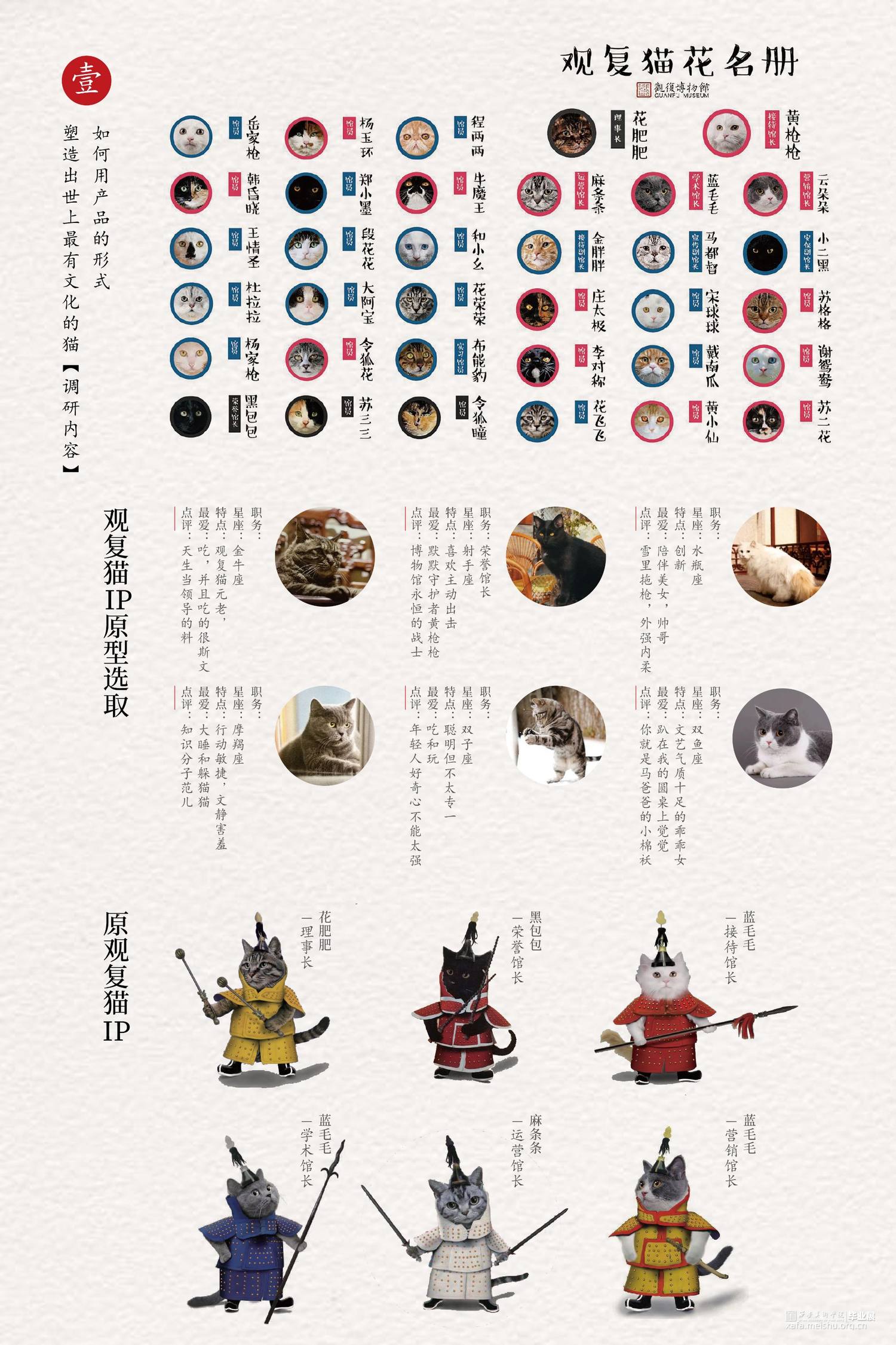 一、观复猫文创作品是关于北京马未都先生的观复博物馆饲养的一群流浪猫,成为了观复博物馆的文化IP。作为数字媒体专业学习者,将观复猫作为你课题进行研究及设计,旨在强调专业的综合性,交叉性,人文性和数字技术性。研究目的为数字媒体艺术在IP传播及产品生产中对传统的继承和变革。