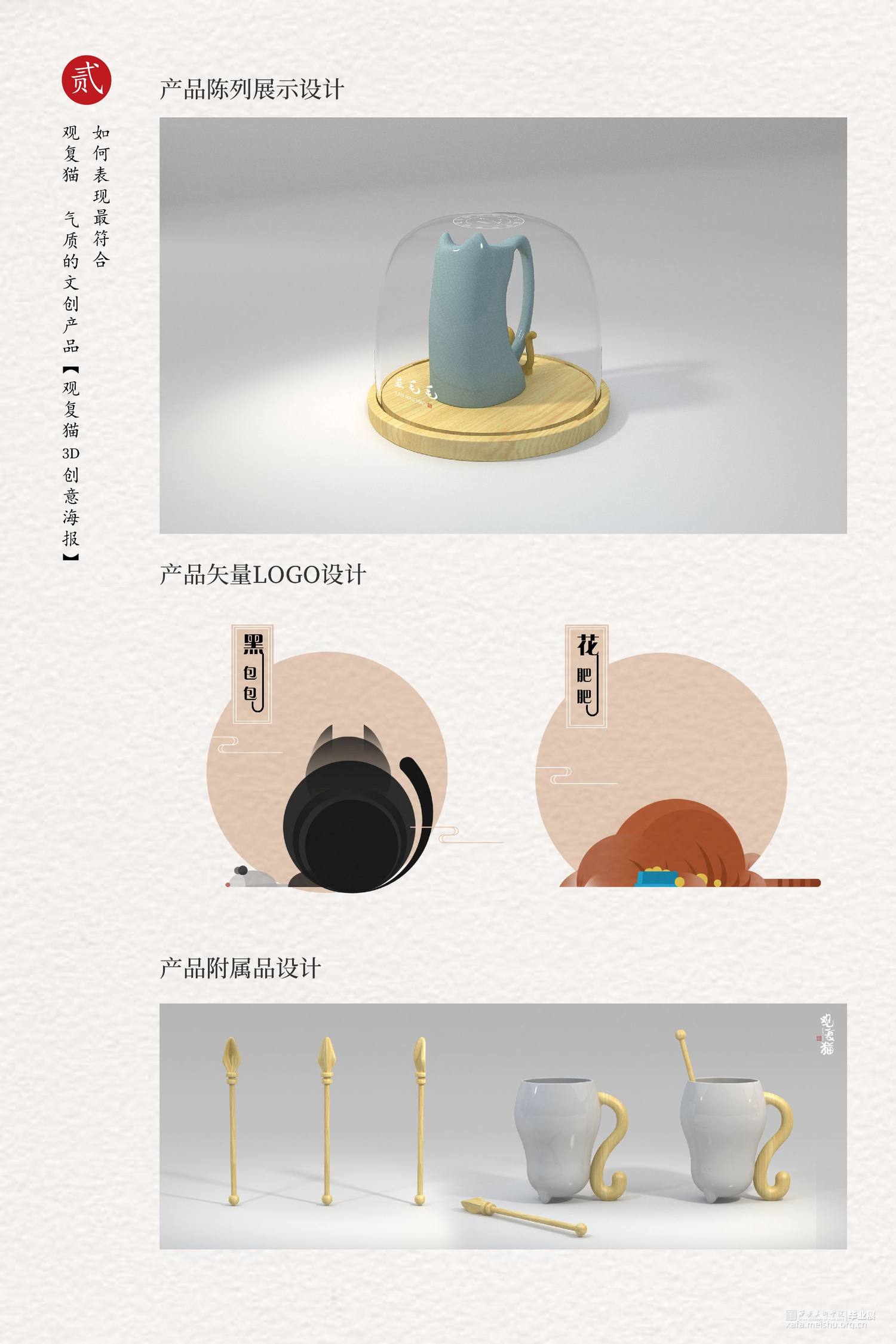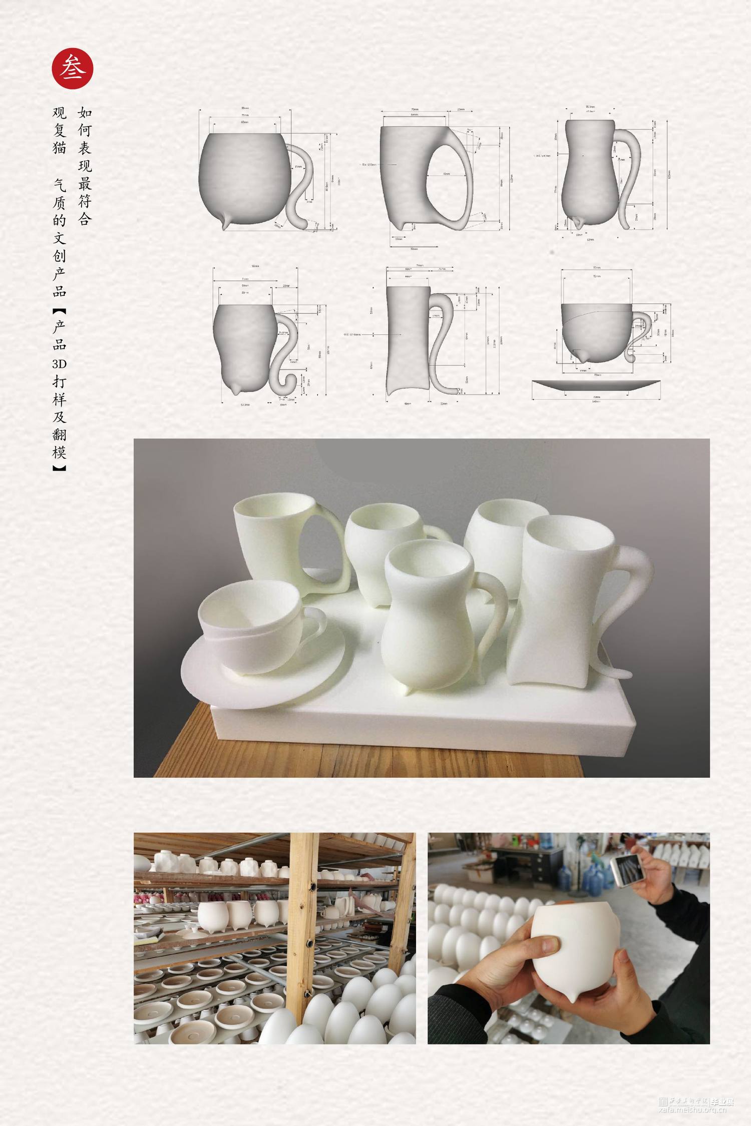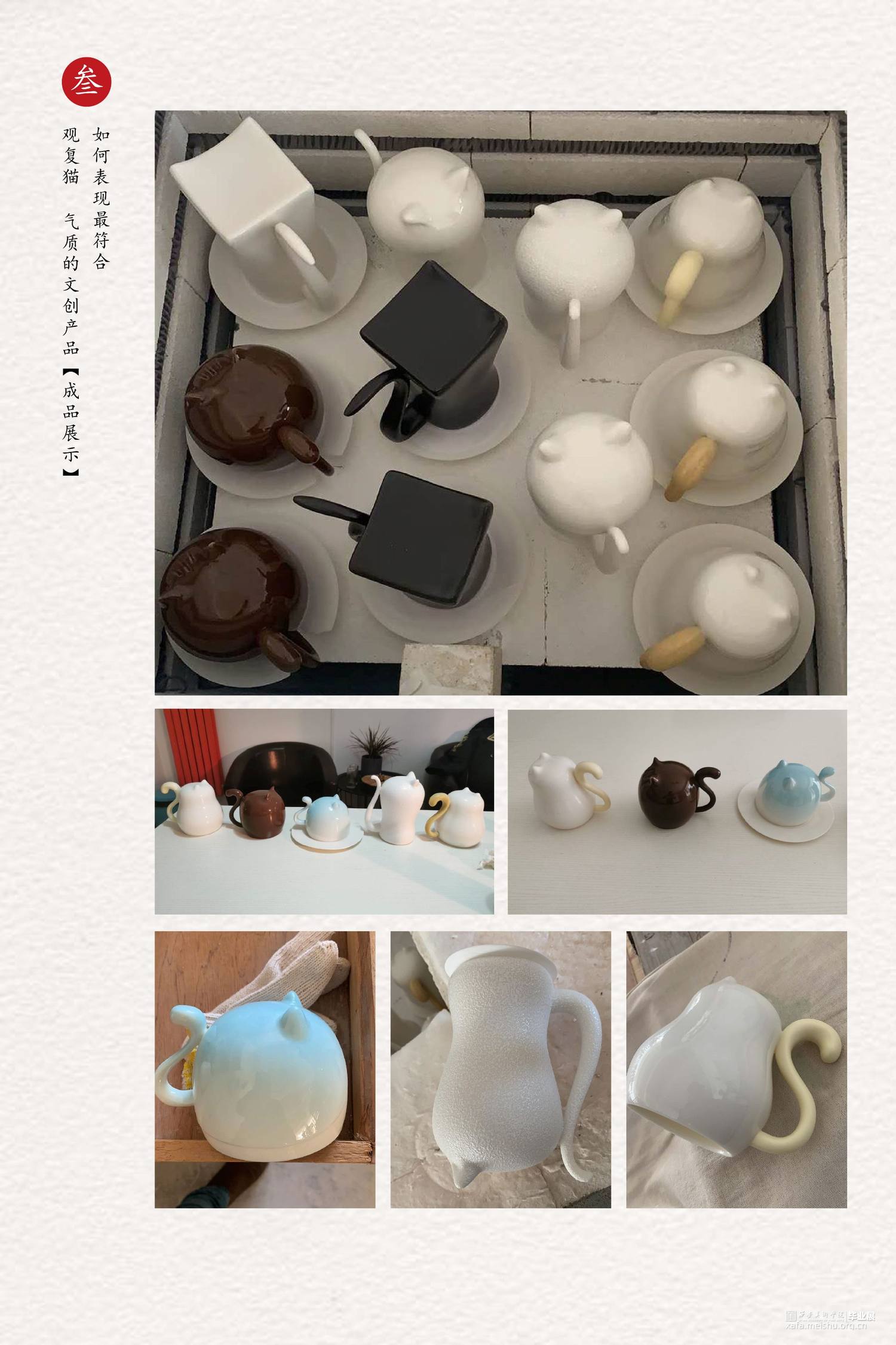 五、从观复猫本身特点进行入手,创意点来源于耳朵与尾巴的三点支撑。杯子本身使用功能的趣味性延续,在造型上更讲究节奏型,变化性,统一性的设计