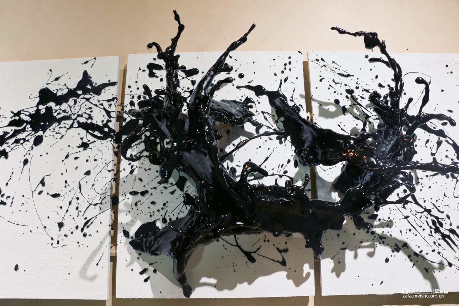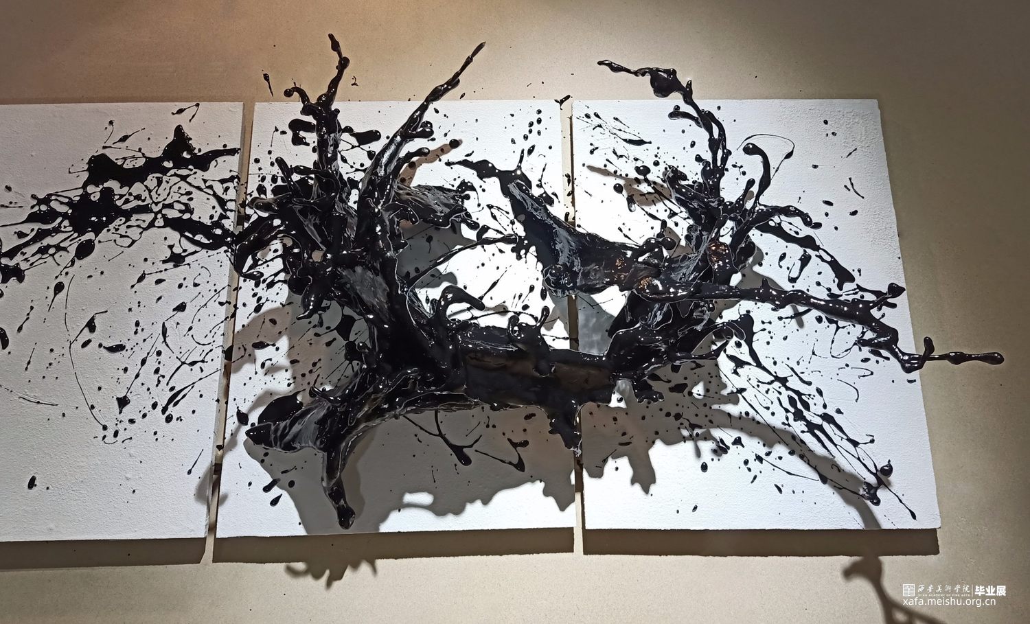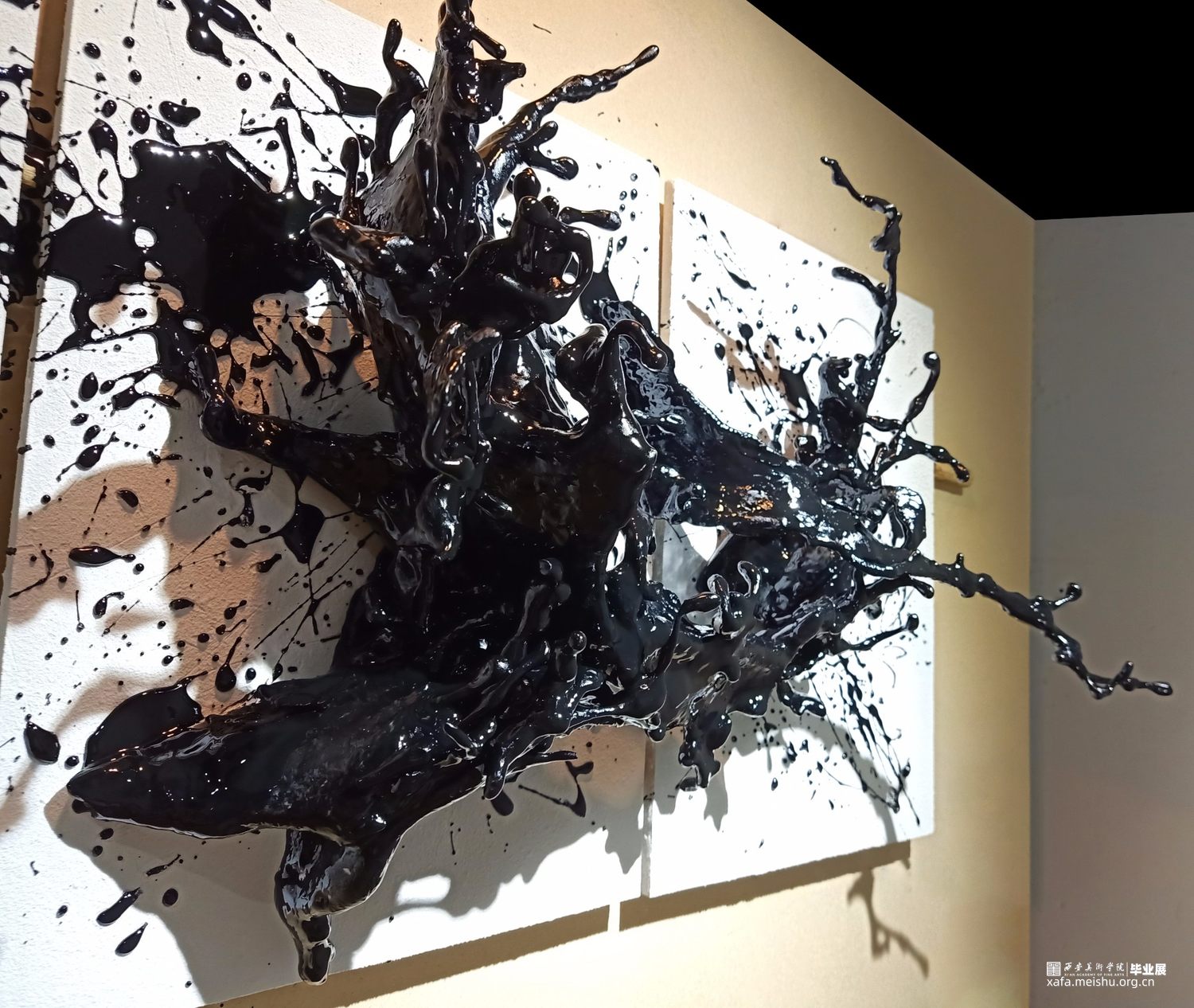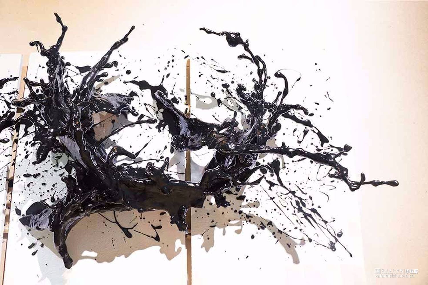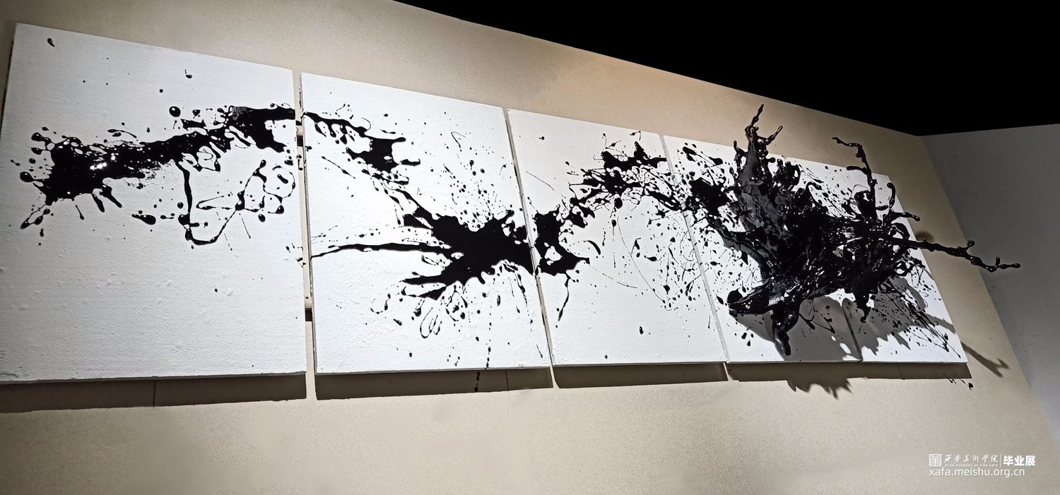 作品将漆飞溅而起的舞姿定格,形成漆语视觉的回声。漆代表了东方先民对自然物性的独特认识与万物和谐共生的原则。开启了我们内心深处长远以来的情感、美学、仪式、寻根,是带有强烈意义上的文化承载,注入当代的生活之中。作品以漆为墨,以舞为笔,让漆溅起生命的回声。