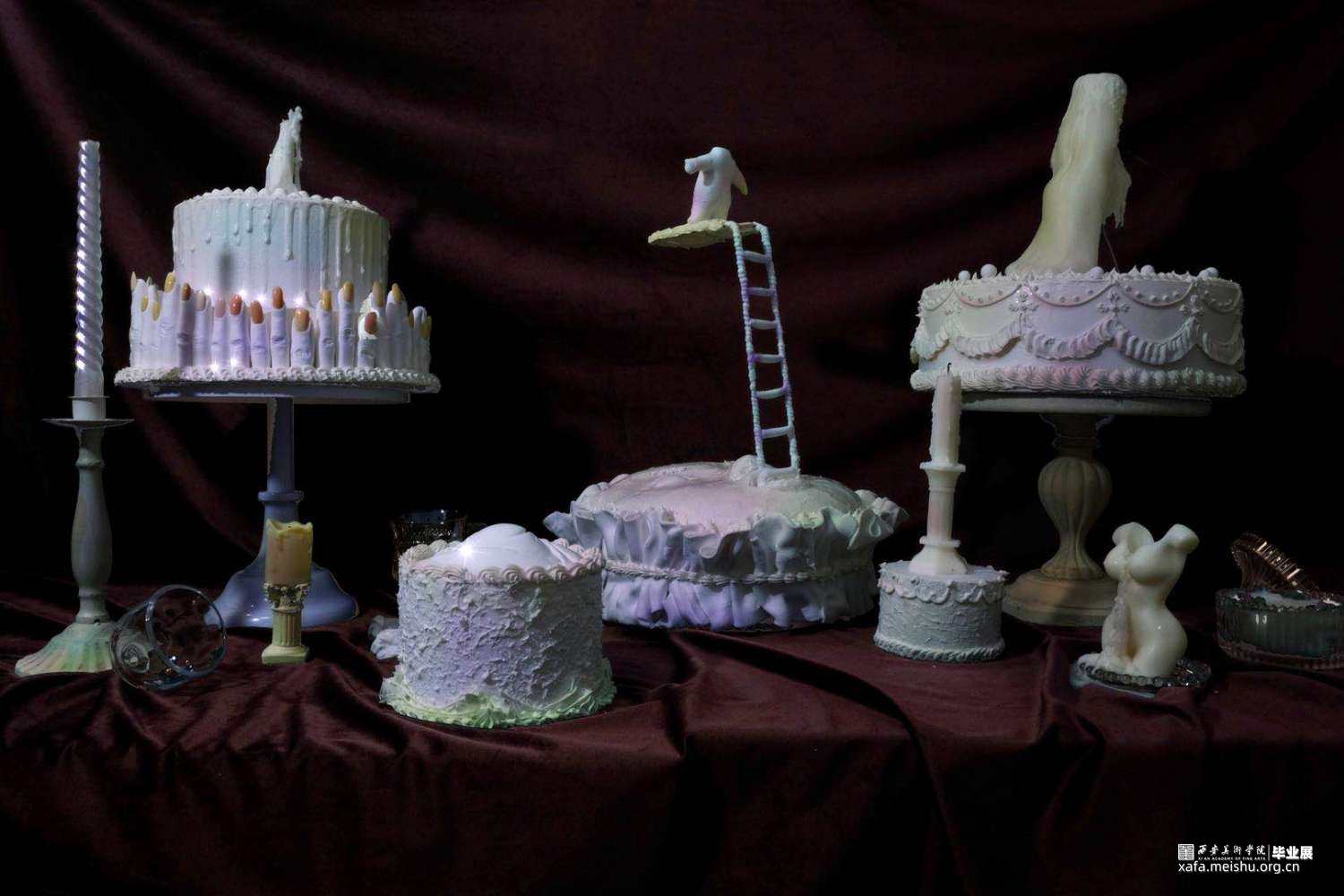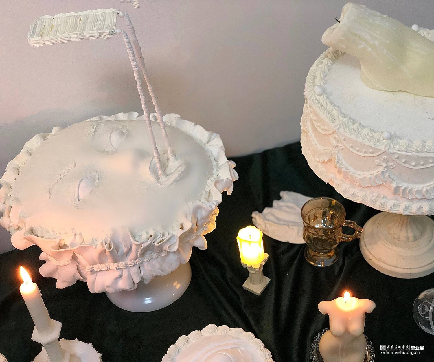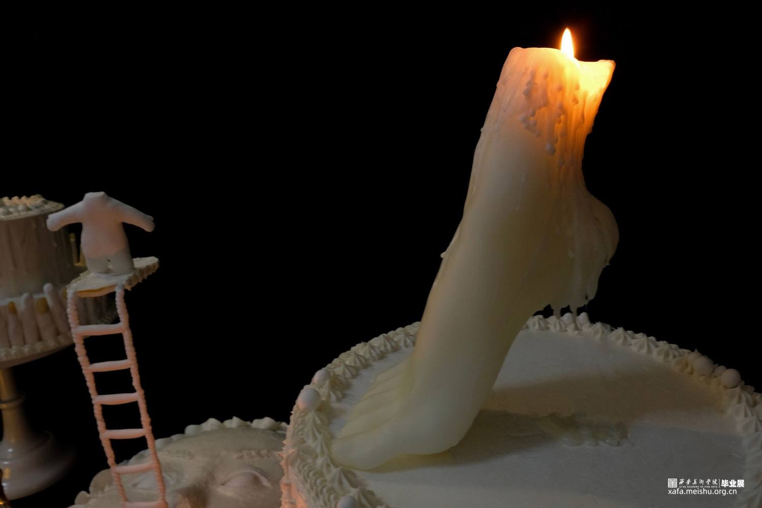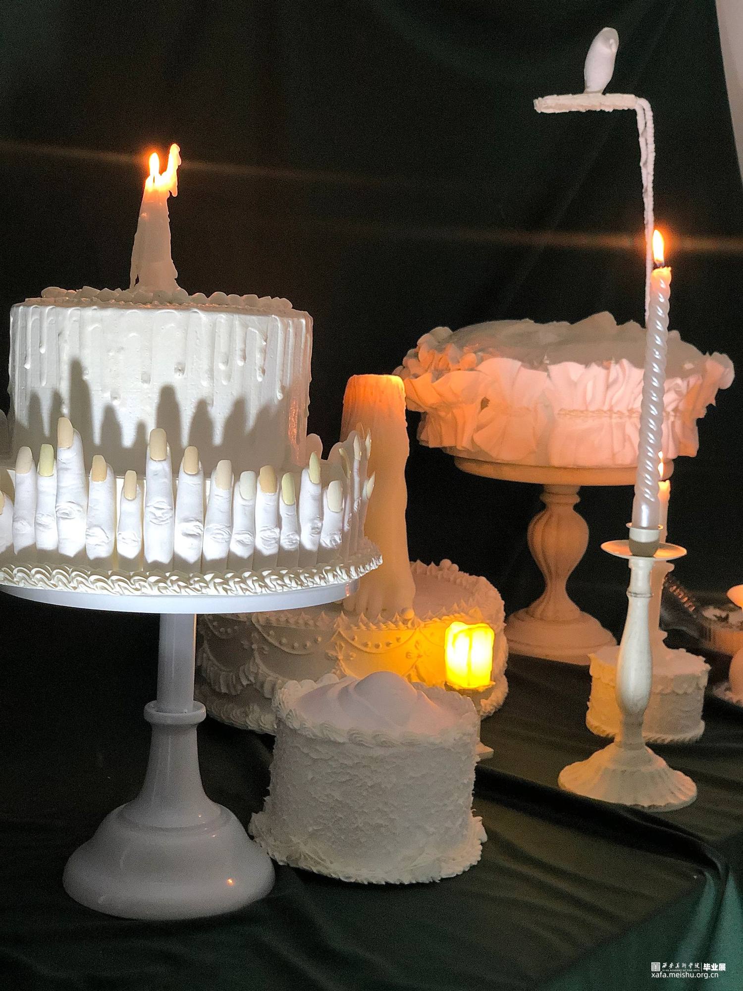 体温,柔软,流动,不安……我将这些宝贵的感觉记下来,他们也直接构成了我对自己感受的无意识的表达。我选择蛋糕和身体作为创作的形式,他们有很多共通的特点:他们都有温度,会发生不确定性的形变,他们都有保质期,甚至都可以称为食物。