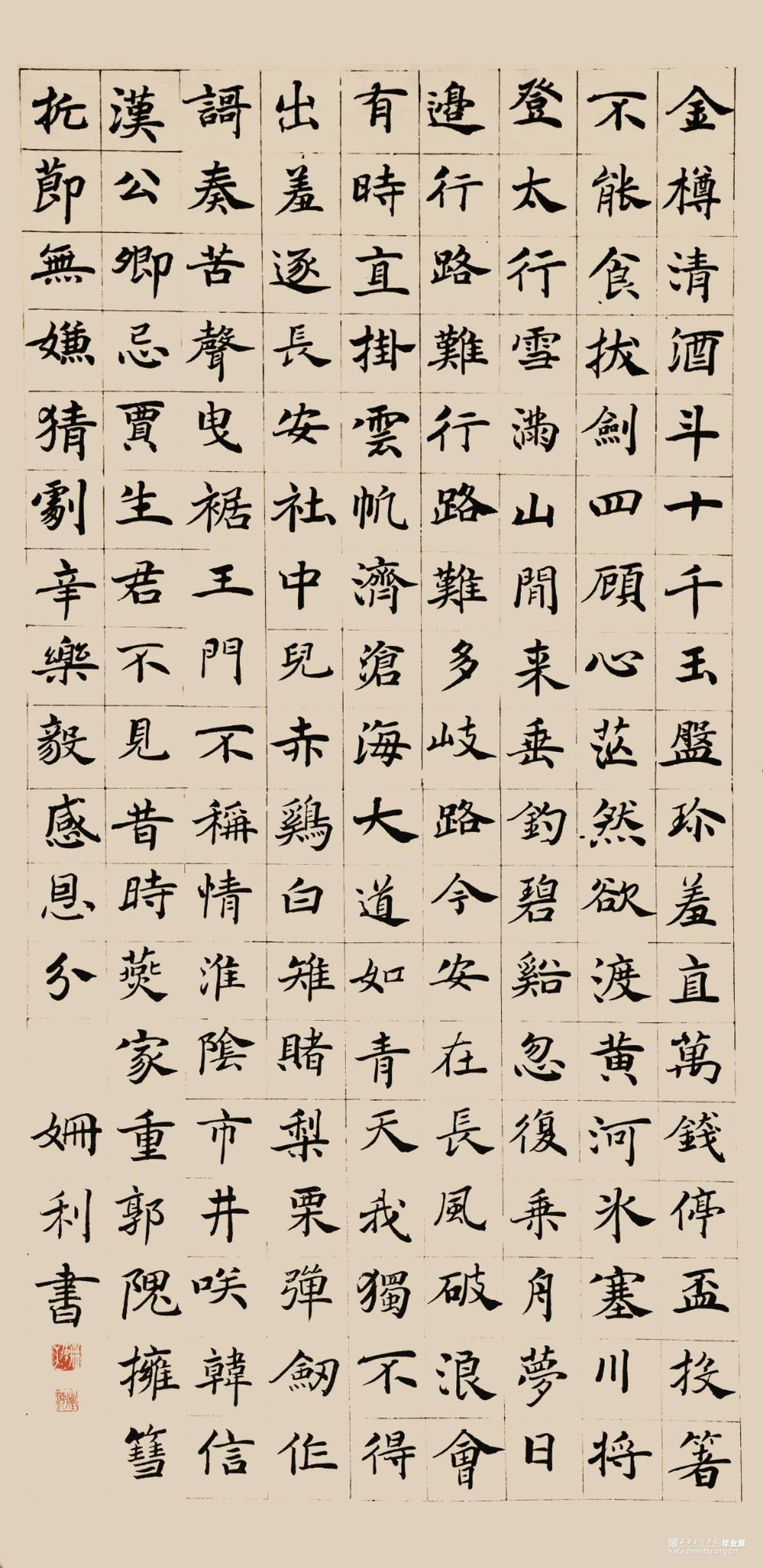 录李白《行路难》诗。借鉴褚遂良《阴符经》与《雁塔圣教序》。