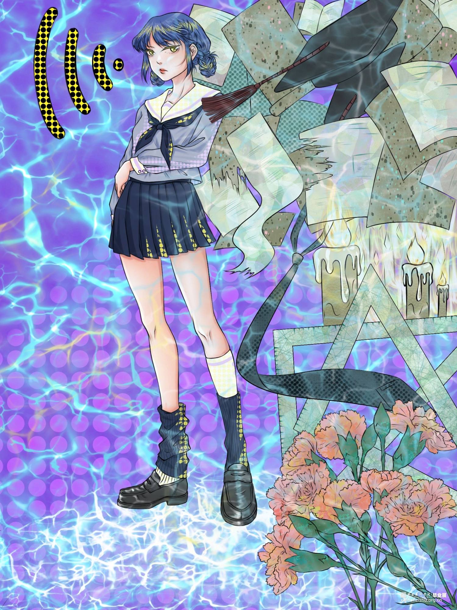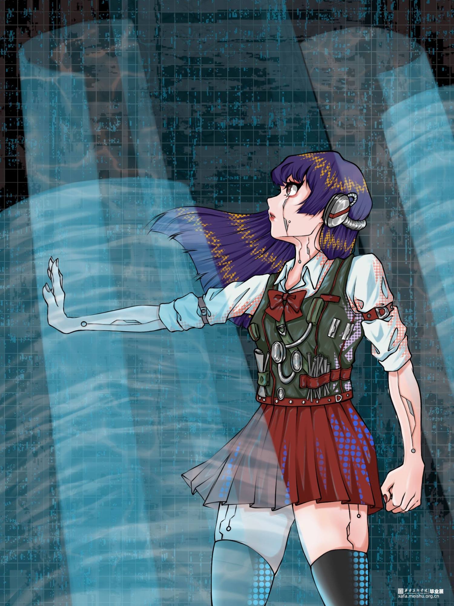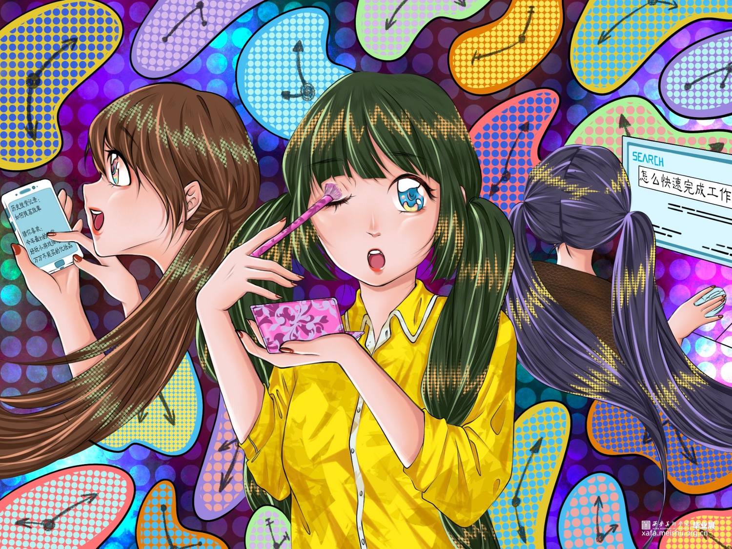 在当代互联网的高速发展的情况下,人们的生活产生了翻天覆地的变化。这样的变化对人们产生了许多正面、负面的影响,作为年轻人,我更多感受到了网络时代带来的不安、焦躁、希望及未来。我从正、反面的影响进行创作,研究包括我在内的部分年轻人的生活状态,期待我们可以带着思考和对未来的希望,在网络时代的洪流中,搭建自己的灯塔。