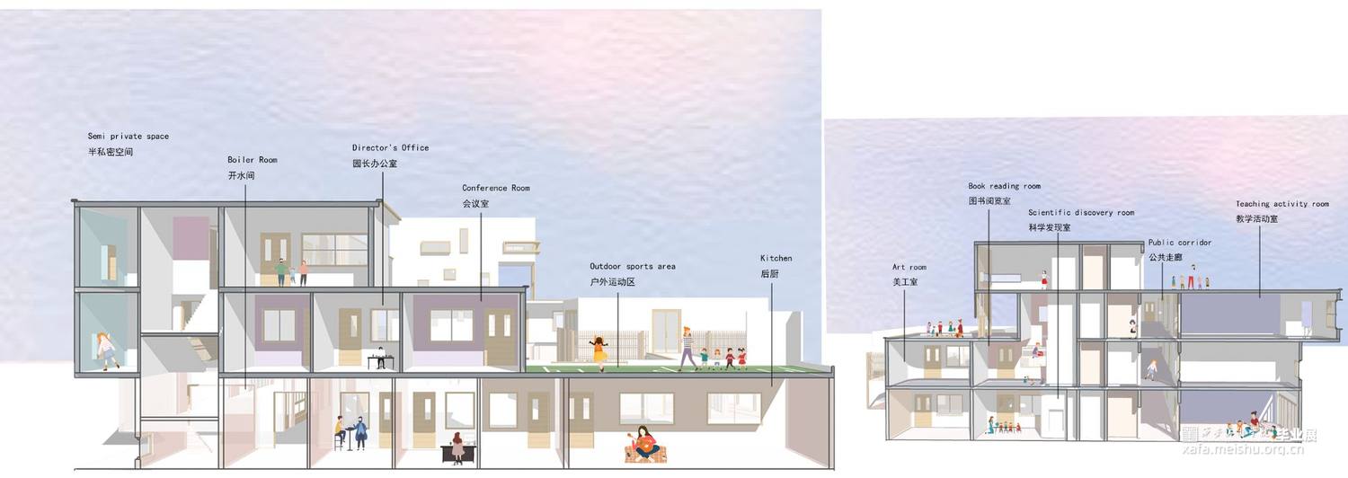 D:增强在幼儿空间环境设计中应由内向外扩展设计再由外向内进行细化,不再被一个固有的建筑形体而限制。