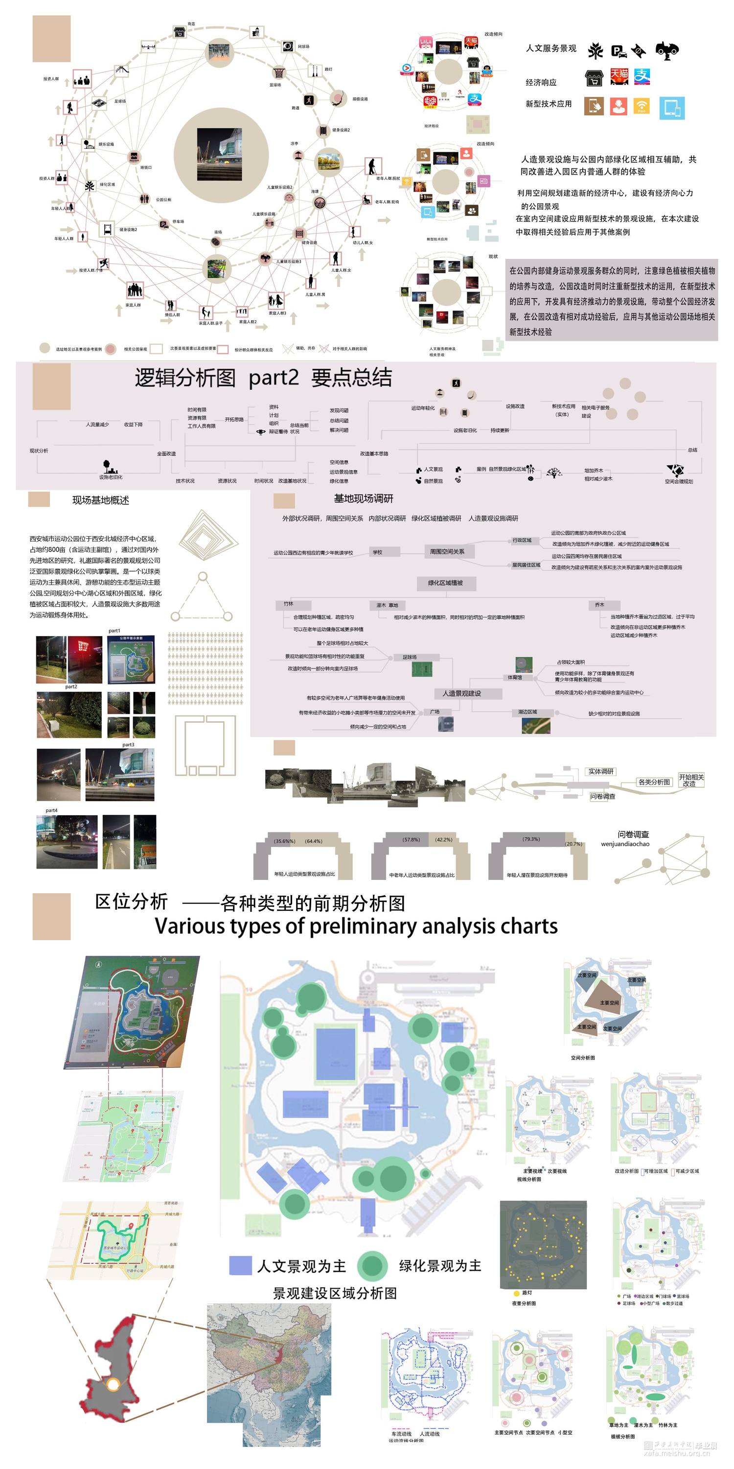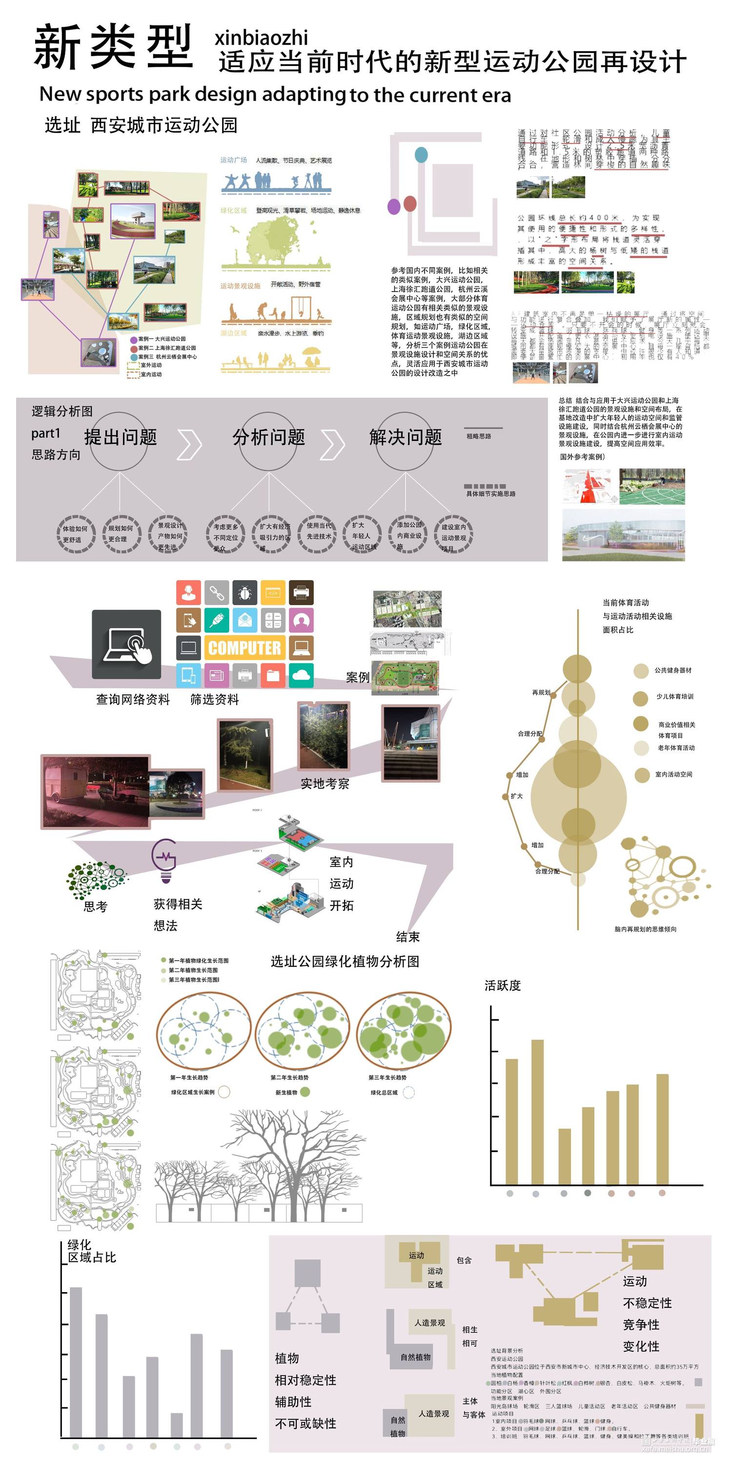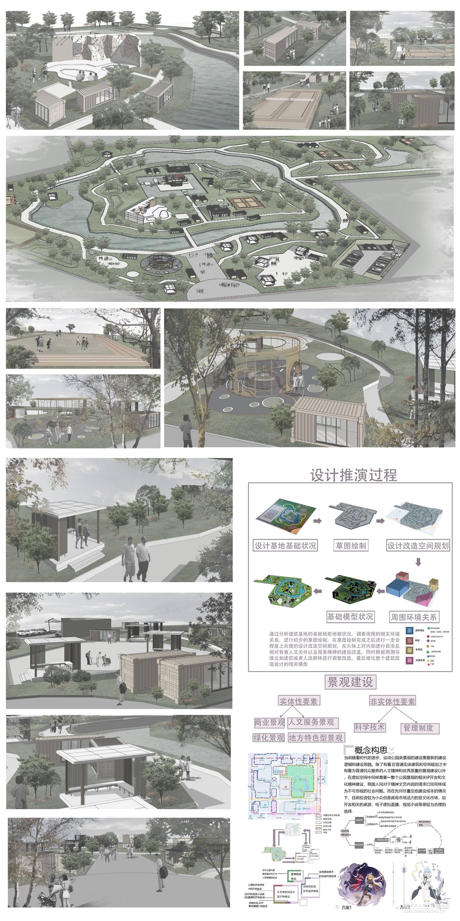 随着城市建设的不断推进,社会生产力的进步与科技的日新月异,人们的第一需求逐渐从实现全民脱贫转变为对美好生活的精神需求。在这类情况下,一方面城市运动公园仍然有一部分保存着过去传统的建设思维和建设模式在进行,另一方面已经有一部分项目开始带有新时代思考和文化背景开始在空间规划布局和人文关怀以及室内室外景观再建设进行转变。所谓野蛮其身体,文明其精神。大部分景观项目都更注重于人文关怀,提高人的舒适度,而体育运动公园则在提供人文关怀的同时提供了一个锻炼人身体健康的场所,在新时代的背景下,更可以运用新技术新思维于大脑和