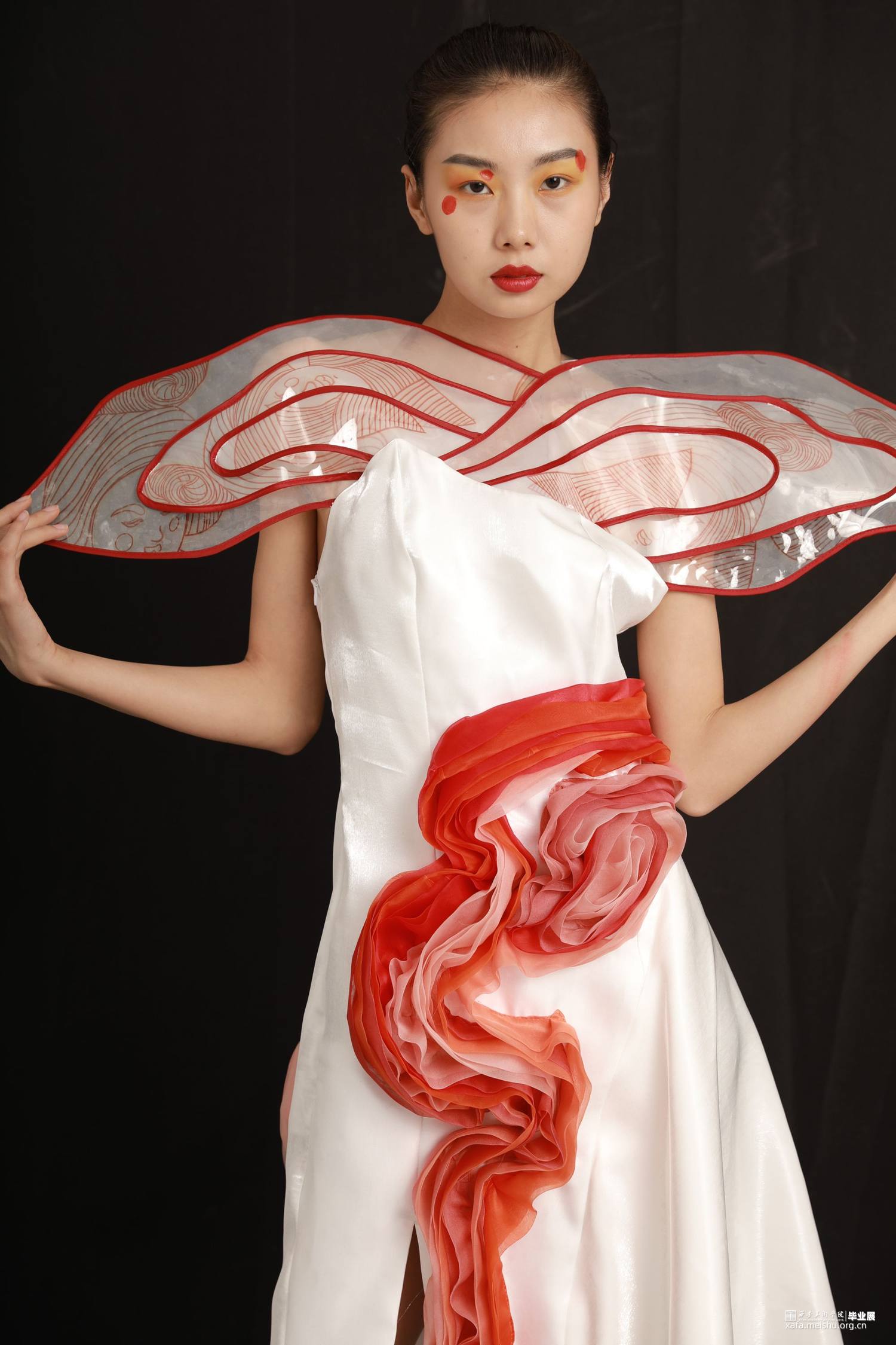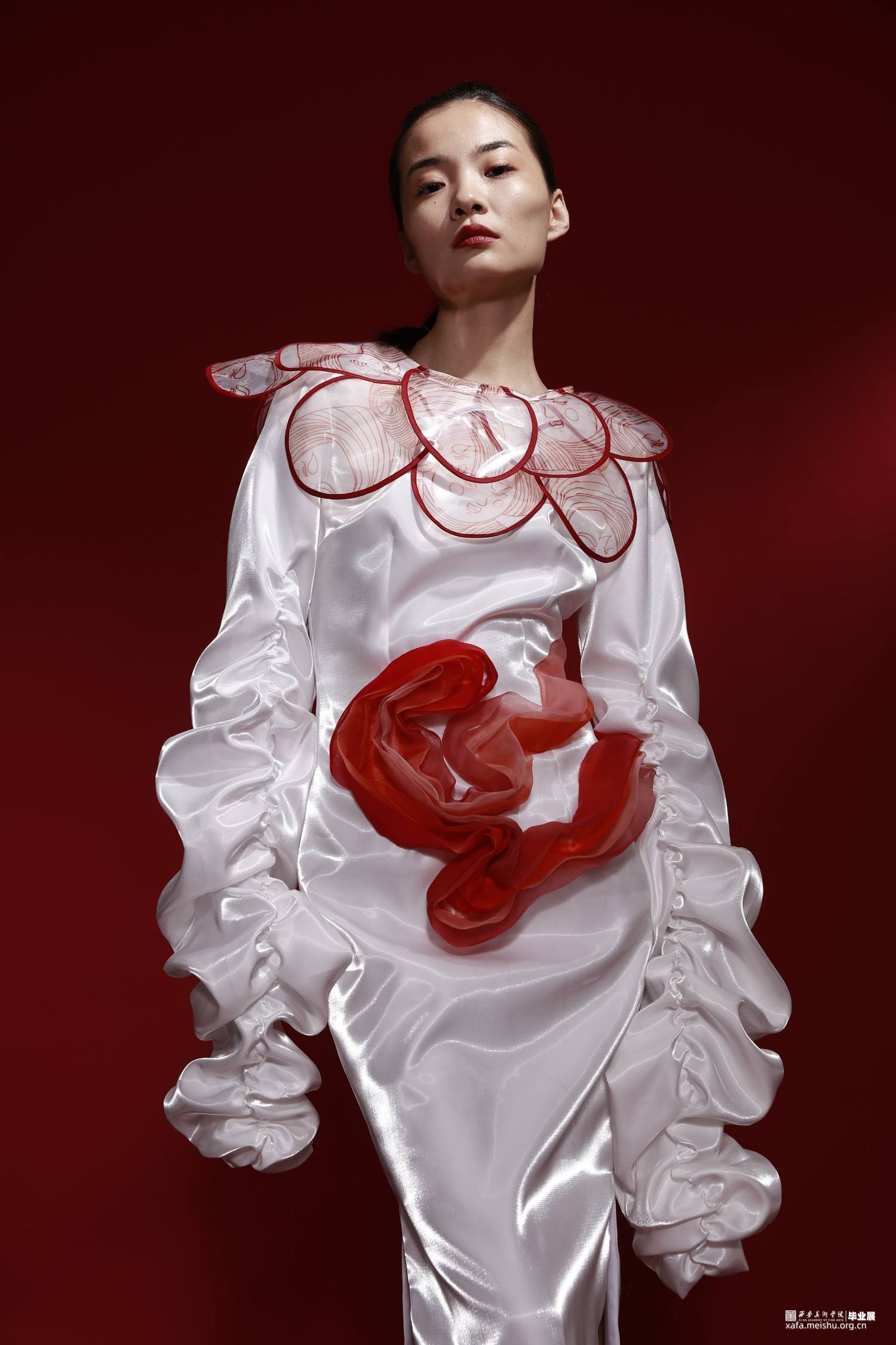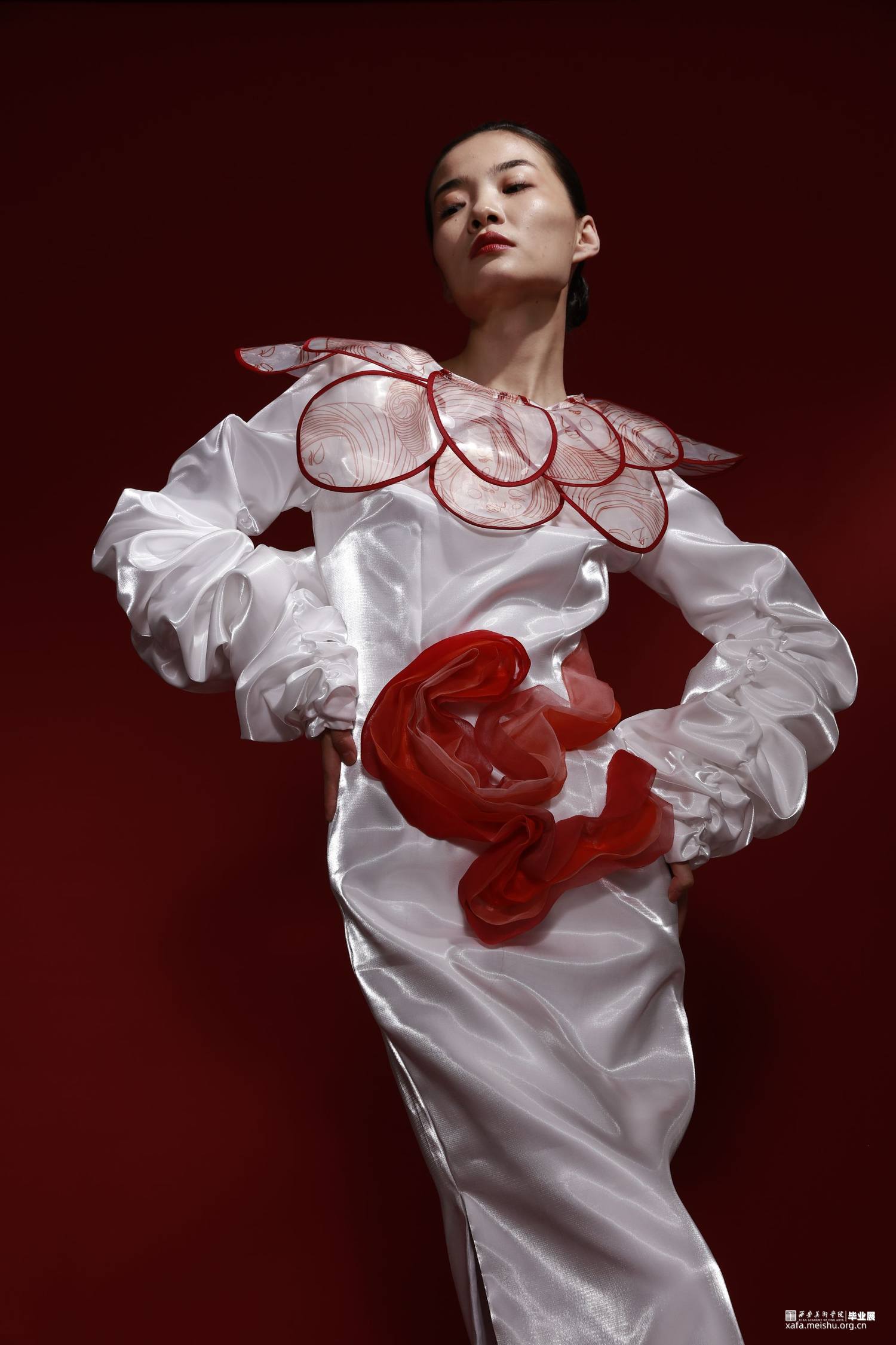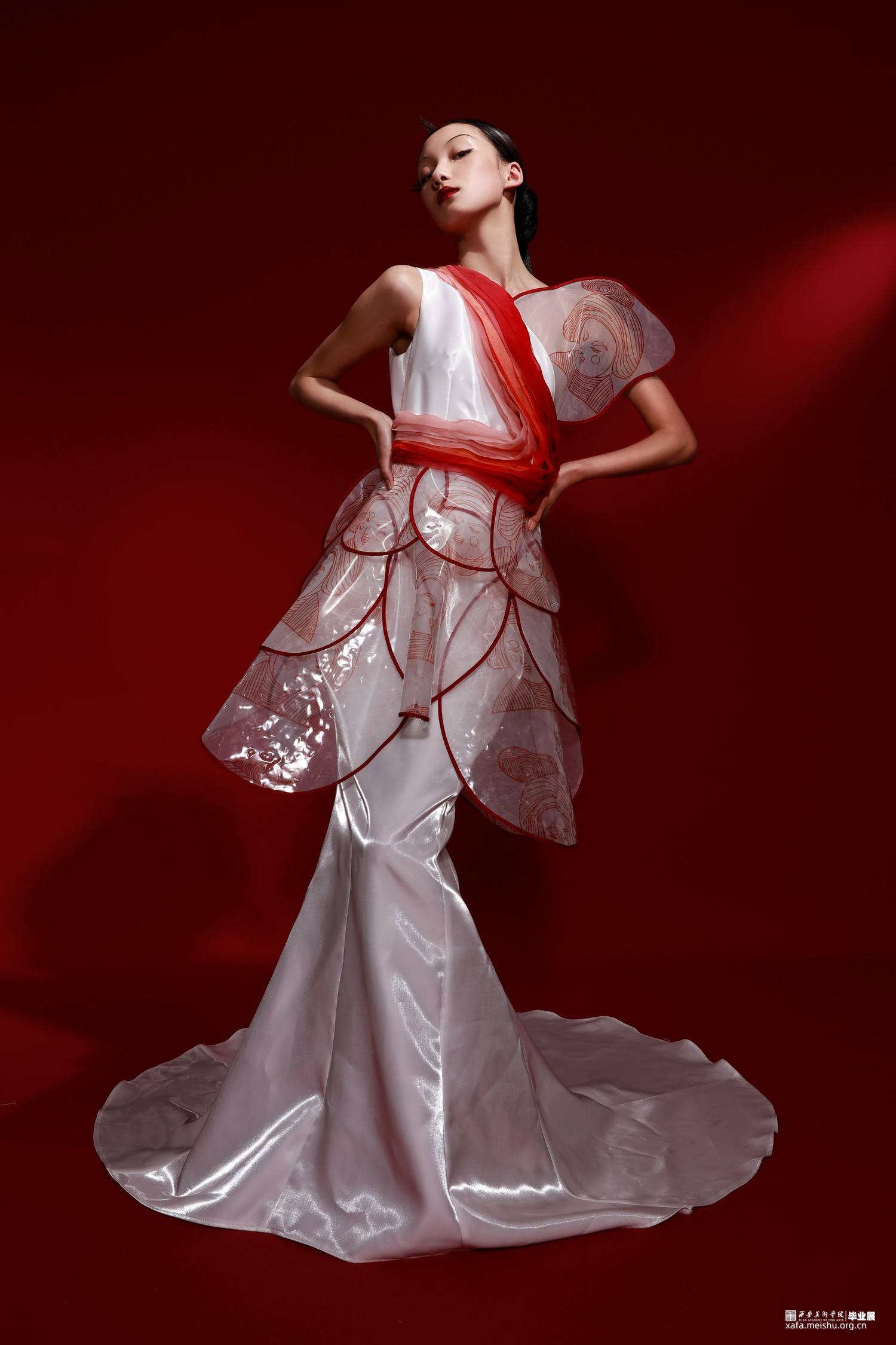 本人的毕业创作灵感来源于唐三彩女俑,着重对唐代仕女俑的造型特征、艺术价值等进行归纳,将唐三彩女俑的图案和廓形运用在服装之中,着重表现女子穿着时优美的体态和曲线,探究在当代服装中的创新与应用。