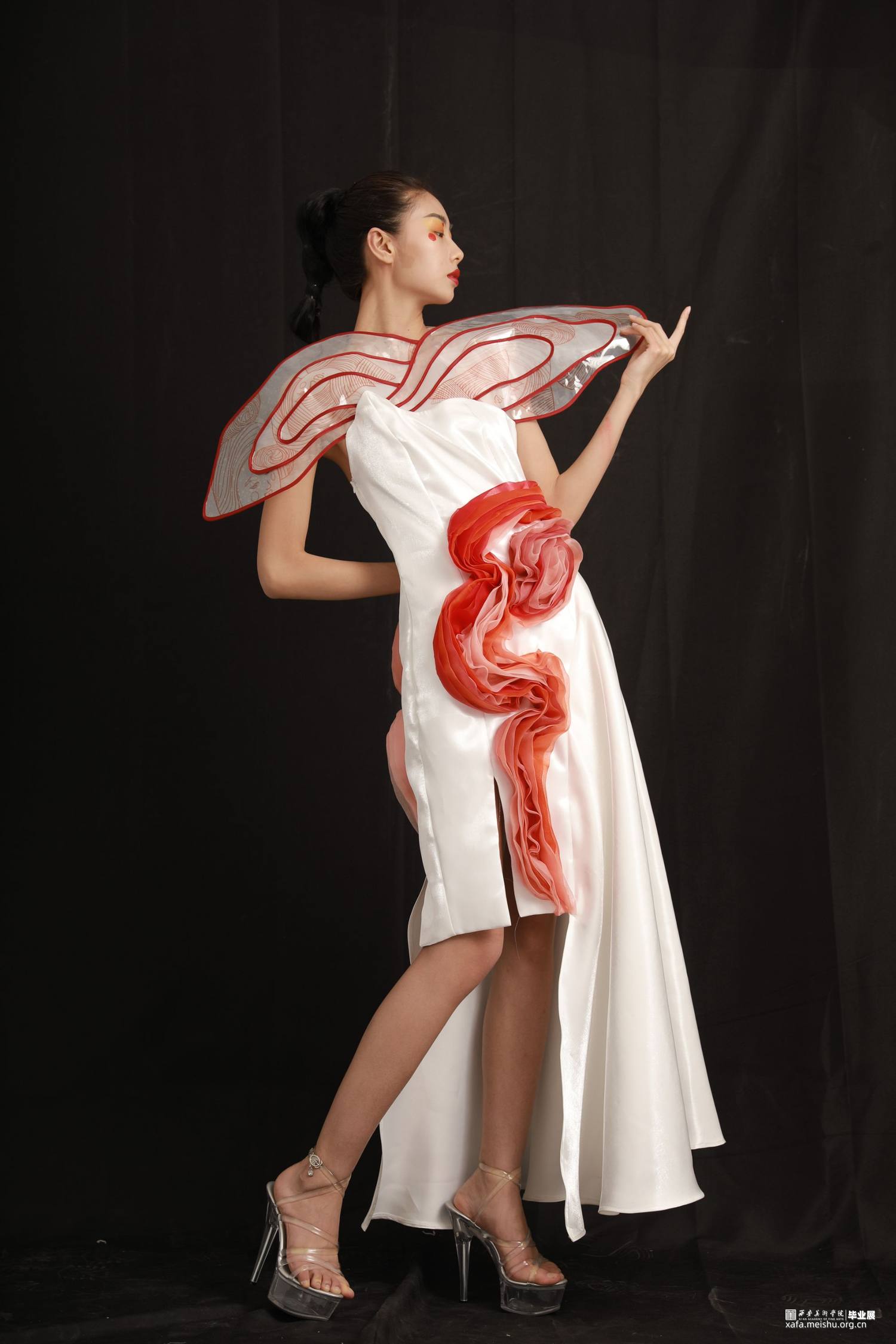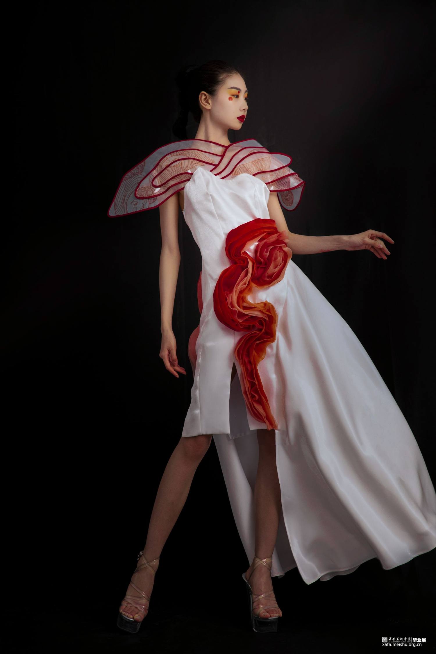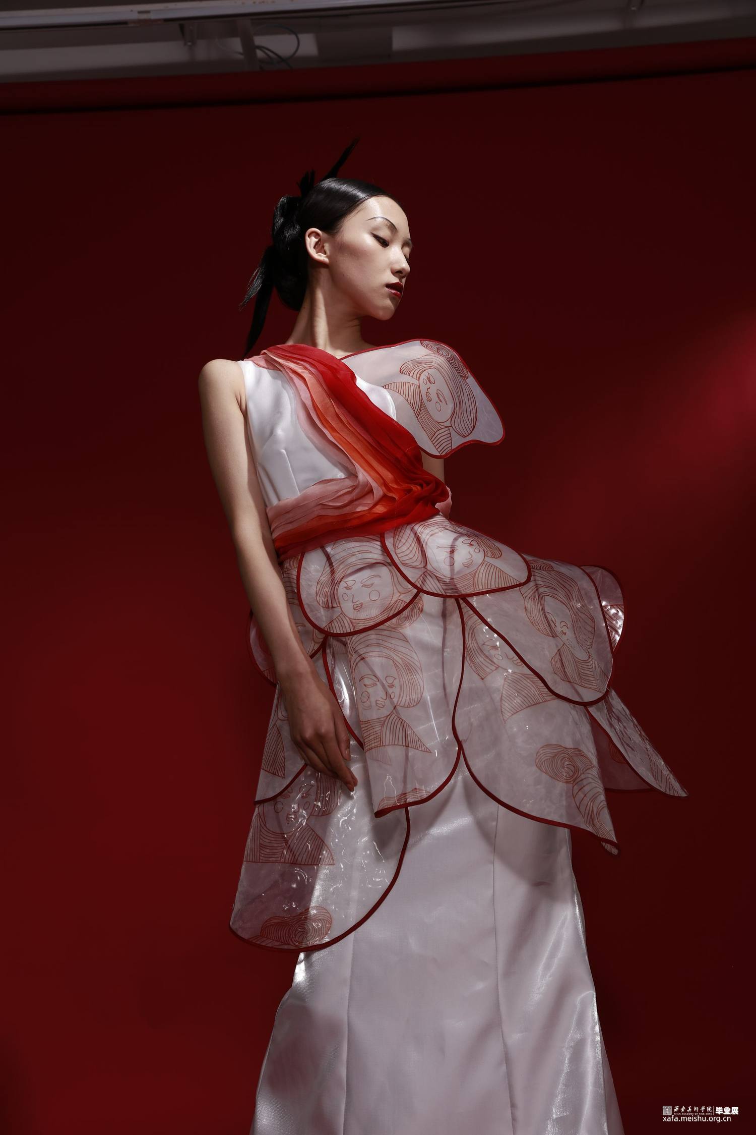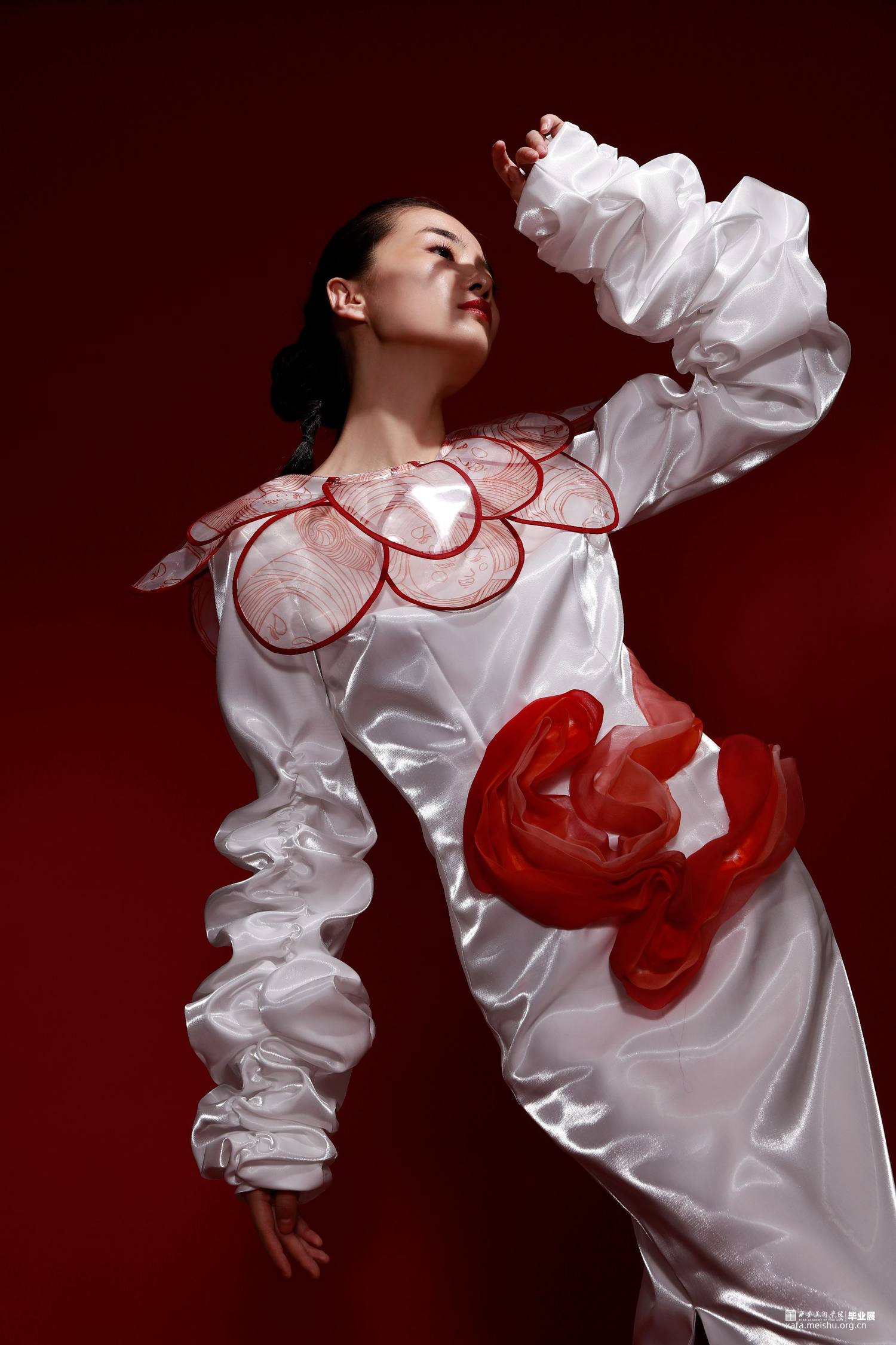 本人的毕业创作灵感来源于唐三彩女俑,着重对唐代仕女俑的造型特征、艺术价值等进行归纳,将唐三彩女俑的图案和廓形运用在服装之中,着重表现女子穿着时优美的体态和曲线,探究在当代服装中的创新与应用。