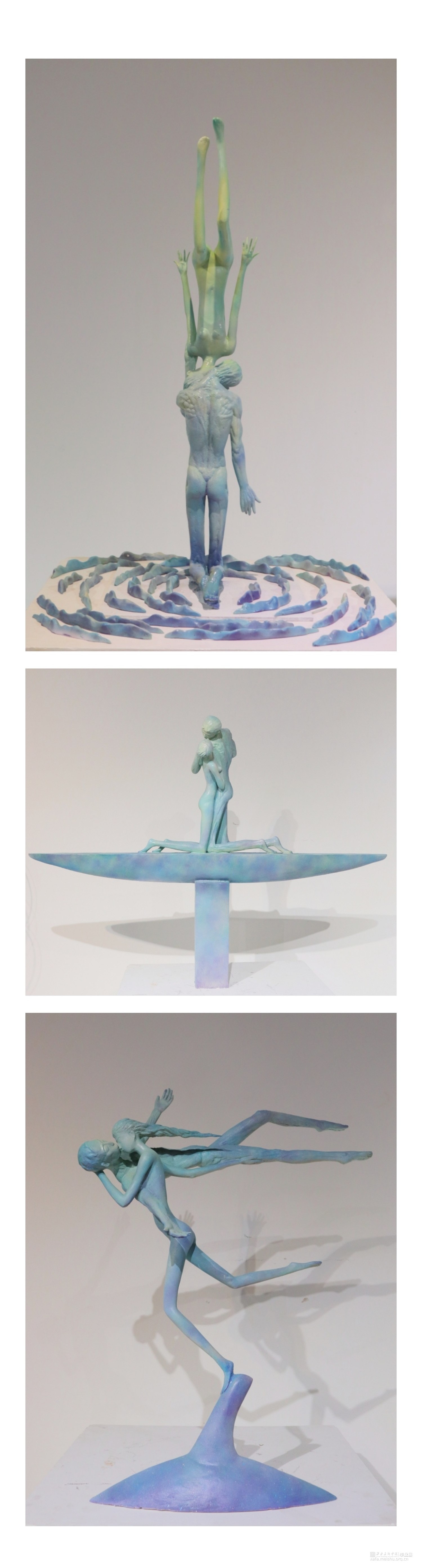 《恋》系列 主要是以双人体中理想化的男性身体和女性身体结合水、风、船、植物和动物等元素,通过构成不同的空间形式来表达具有东方意味的想象、浪漫、优雅和诗意的理想化世界