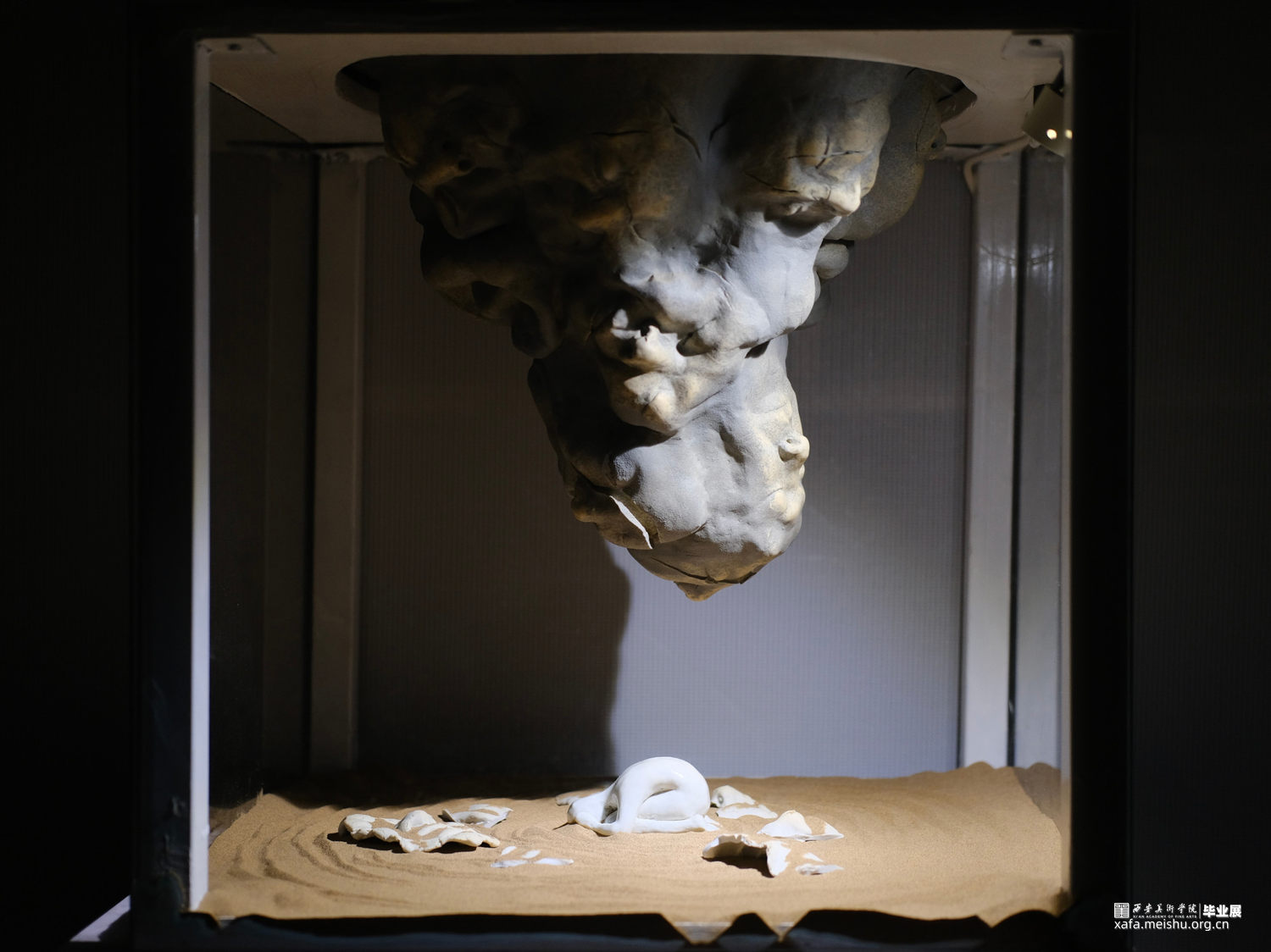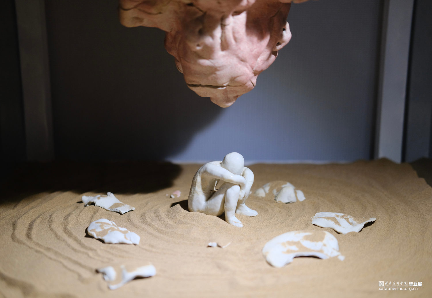 随着社会节奏的加快,人们背负的压力与浮躁的情绪也接踵而来;看似破碎零散的压力,其实无时无刻不在包围着我们,压制着我们。此作品表现了人们在面对多方压力时表现出的无助与挣扎,痛苦与呐喊;但与此同时,这些压力也在随着人们的坚守而转化为动力,表达人们坚守自己,与压力博弈的精神。