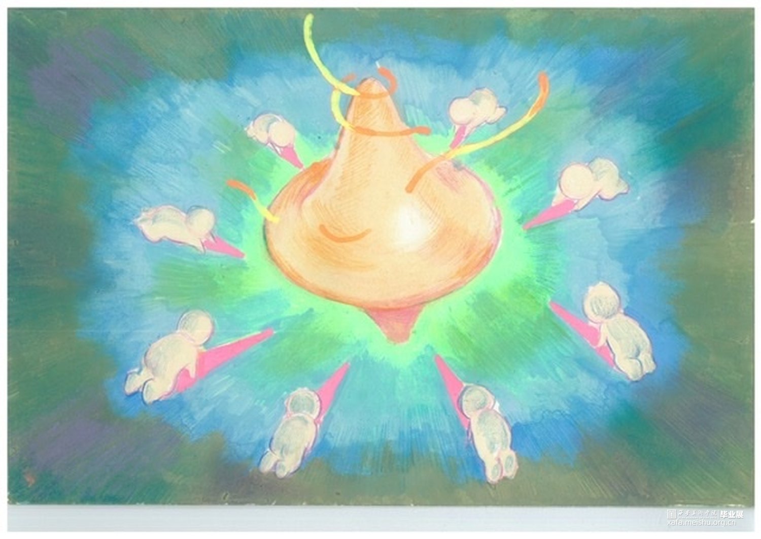这个世界的人从一出生就有着同样的生理构造,头上有类似于芳香珠飘出香气的孔,脚上有着地漏,它们分别排出人们快乐和悲伤的情绪,从而维持人的情绪稳定,而小尖就是一个地漏比较大的孩子,她比常人更容易感到快乐,也比别人更容易忘记悲伤,恰恰相反,小尖的好朋友小圆却是一个地漏很小的孩子,她因排泄不出悲伤的情绪,被痛苦折磨着,为了拯救朋友,小尖她将自己的快乐和小圆互换,小圆也重拾了笑容,之后,人们闻讯赶来寻求帮助,小尖也施以援助。然而,小尖的地漏,也渐渐地被堵住了……