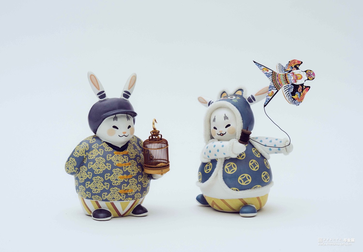 “兔儿爷”是我国北京地区中秋佳节应节令的传统手工艺品,也是如今最具代表性的国家非物质文化遗产之一。本人期望结合“盲盒”这一新兴的、大众的潮流文化,对“兔儿爷”这一独具地方特色的传统手工艺品进行传承与创新,结合自身的陶瓷艺术专业,融入自己对“兔儿爷”文化和陶瓷文化的思考与再设计,使其观照我国的当代民族文化和艺术视野,重新找回属于它的精彩。