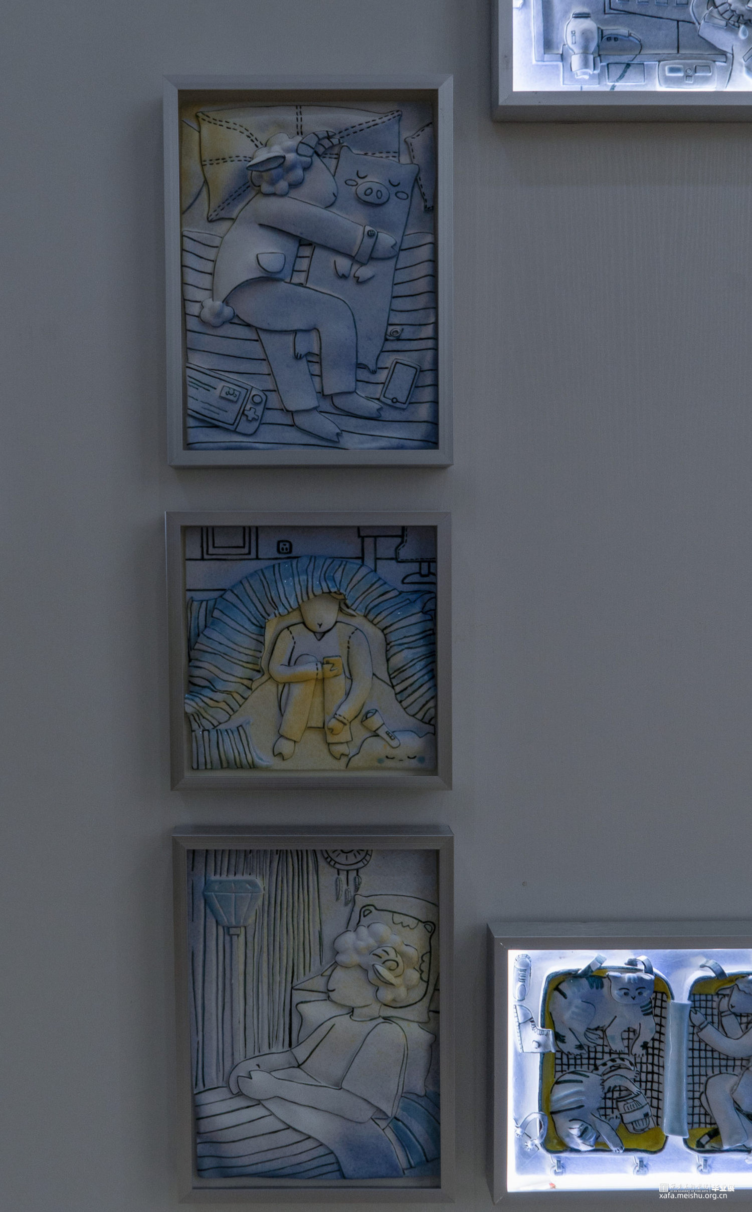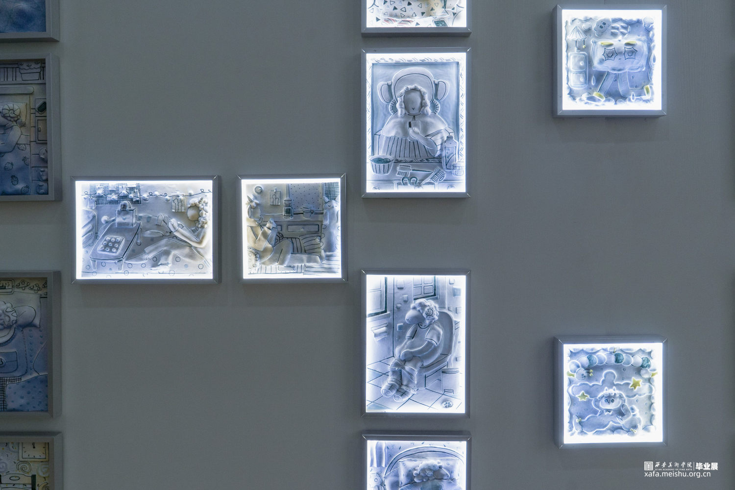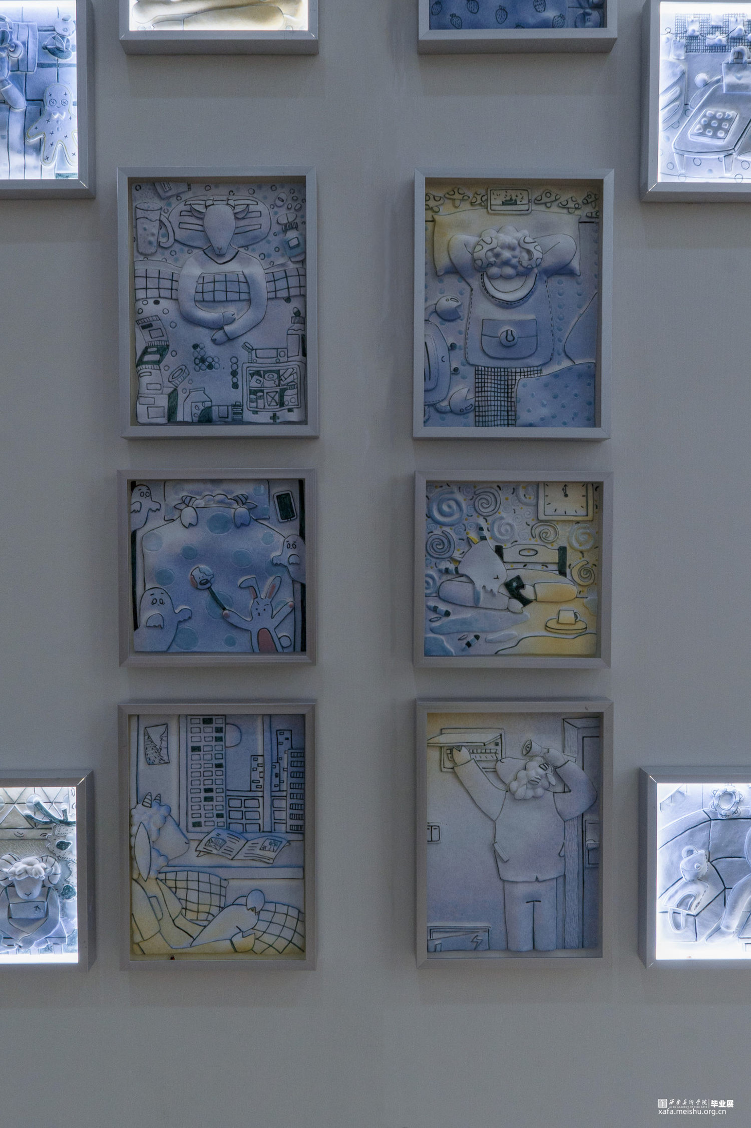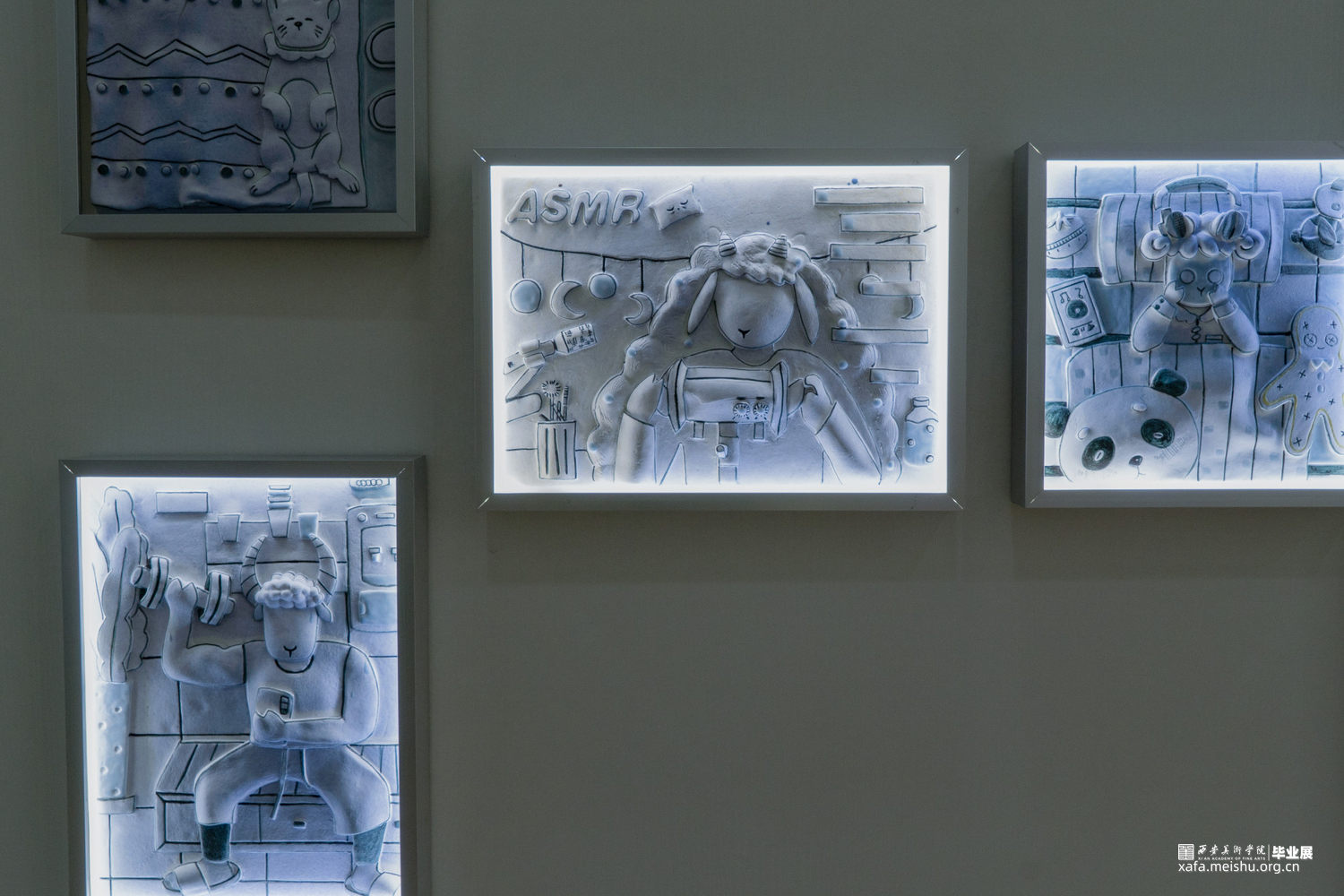 熬夜成了当今快节奏社会里,高压力人群中,夜生活娱乐事的常态。人睡不着的时候会数羊,羊睡不着的时候会数什么呢?作品通过一系列形态生动的“羊”形象来展现人们在夜晚中的状态。时间定格在了一天当中的最后一分钟“23:59”,有些人可以选择按时入睡,有些人却无从选择,还有些人不想做选择。“人生不如意事十有八九,可与人言者无二三”。希望我们都能够安心睡觉,好好生活。