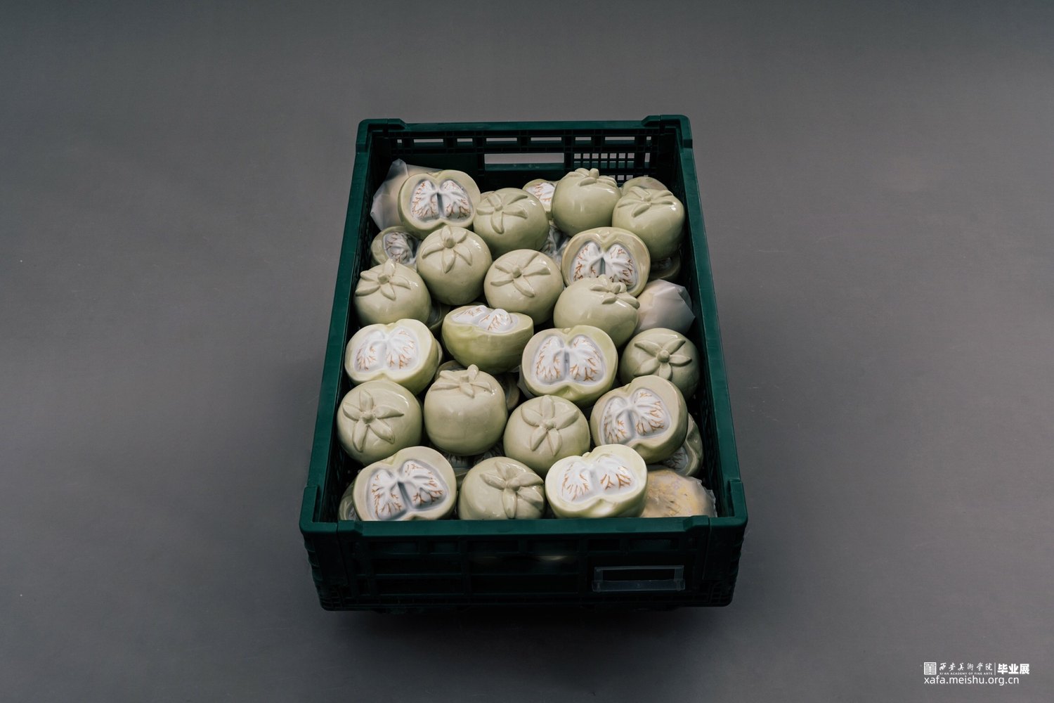 “逝者如斯夫,不舍昼夜”,当水果被摘下的那一刻,就意味着它的生命进入了倒计时,而人类和植物都是生命的一种表现形式,体内血液循环是每二十秒在为机体提供赖以生存的物质和动能,但走向衰老只是时间问题,我将水果和器官重新排列组合,并利用陶瓷材料的特殊语言,不易腐烂,变形这一特点更好的表现作品的主题,时间是公平的,因为每个人都会无偿的得到它,但它又是不公平的,因为有的生命会得到的更多。