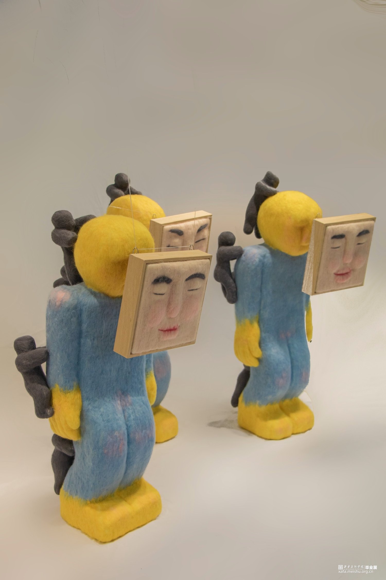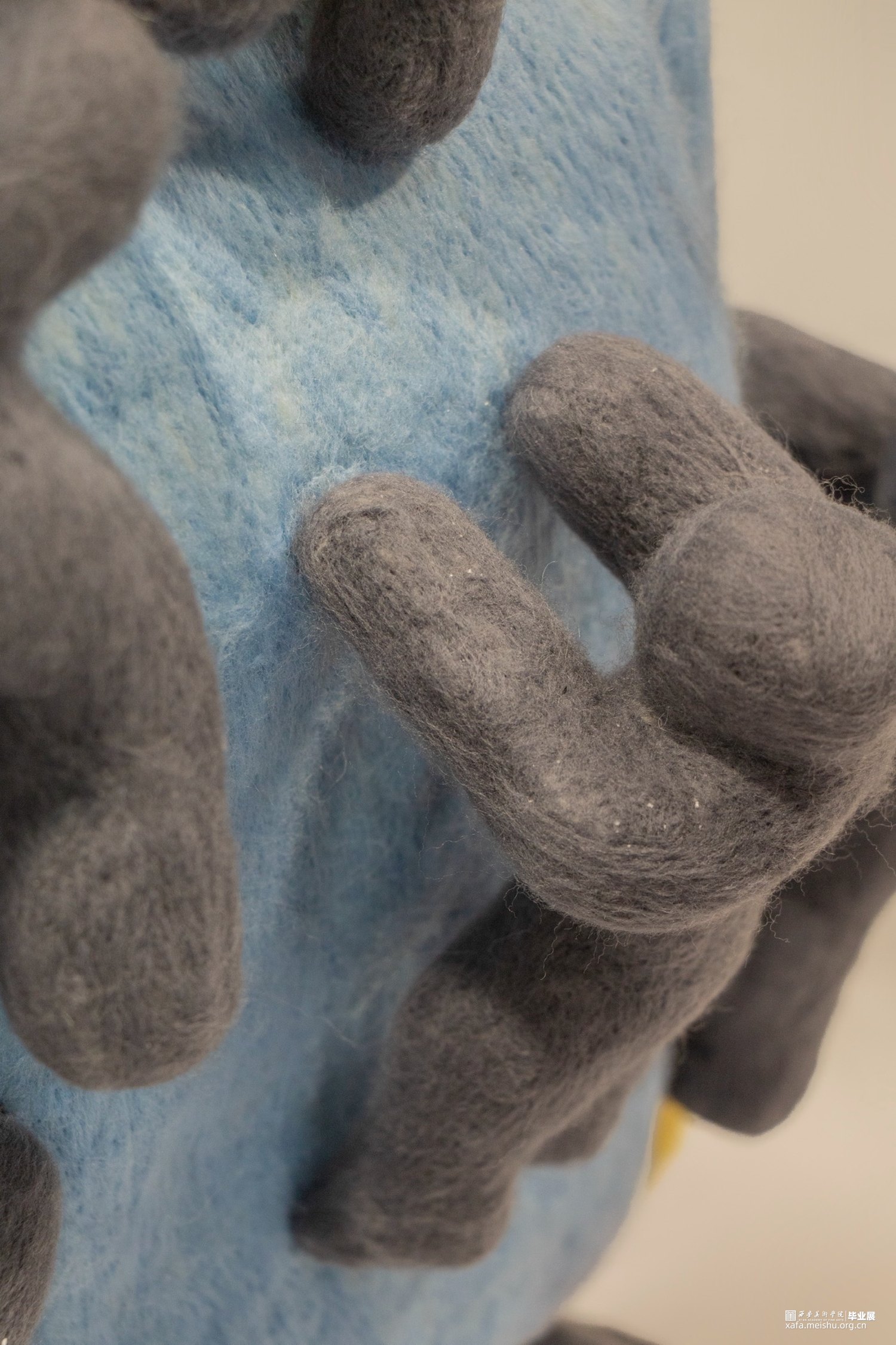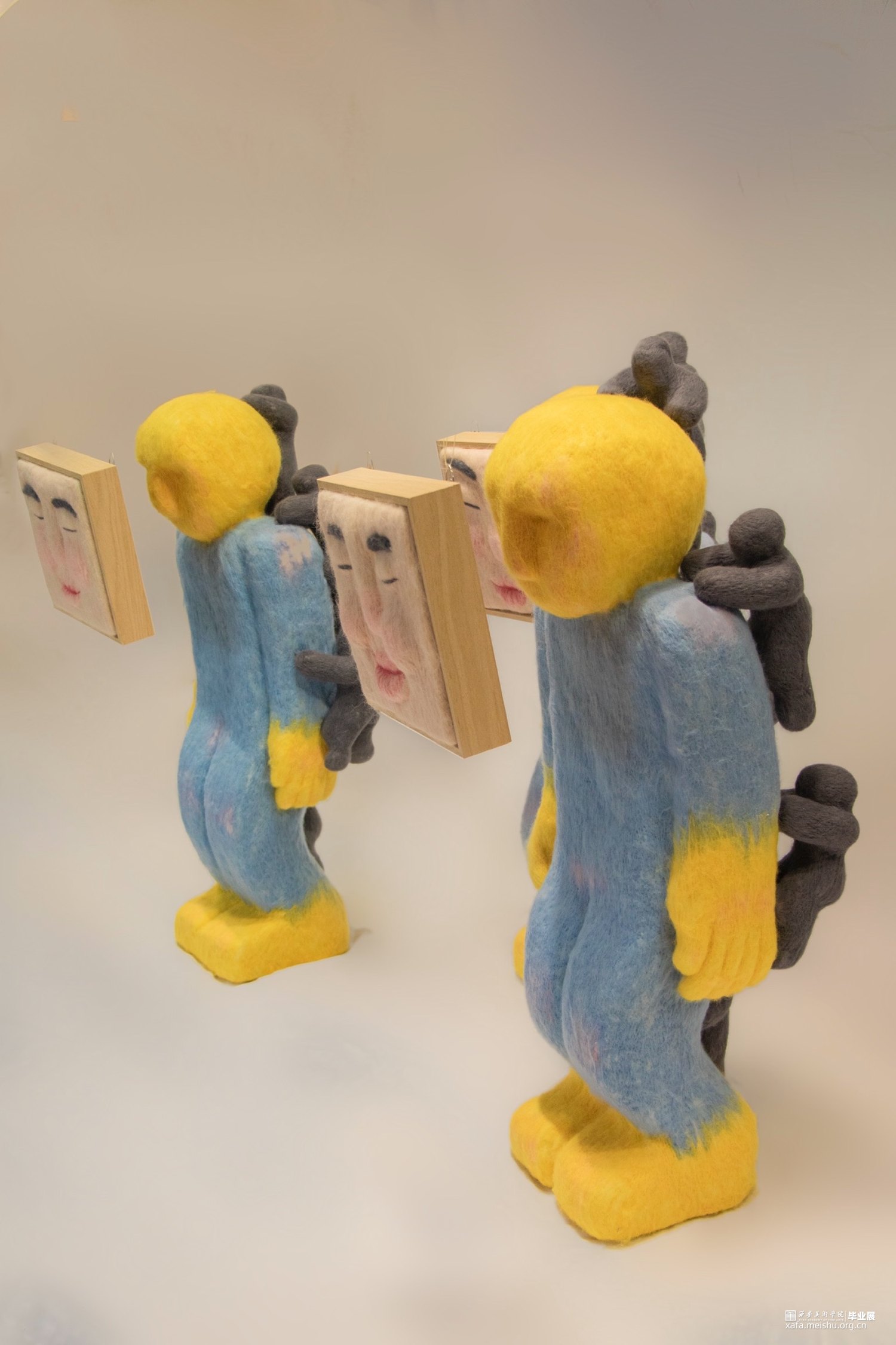 在这个世界上有一些特殊的患者,他们得了同一种病,叫“微笑抑郁症”,本作品就是表现这类人群的内心世界。采用羊毛毡工艺来塑造,让大家看见“微笑抑郁症”患者内心的世界。