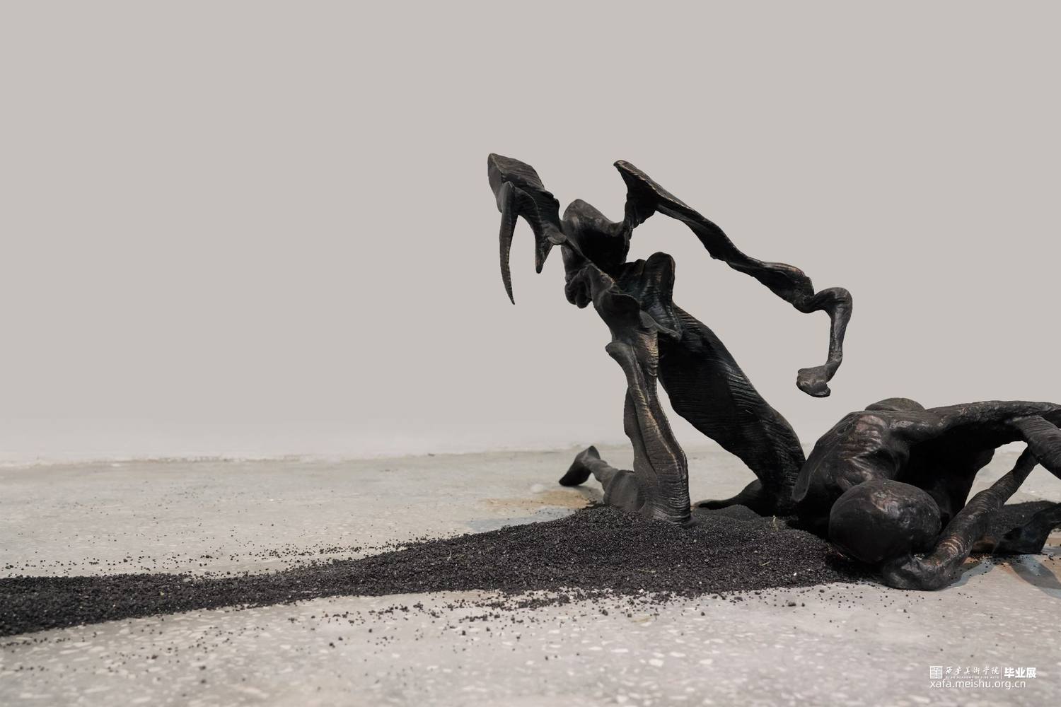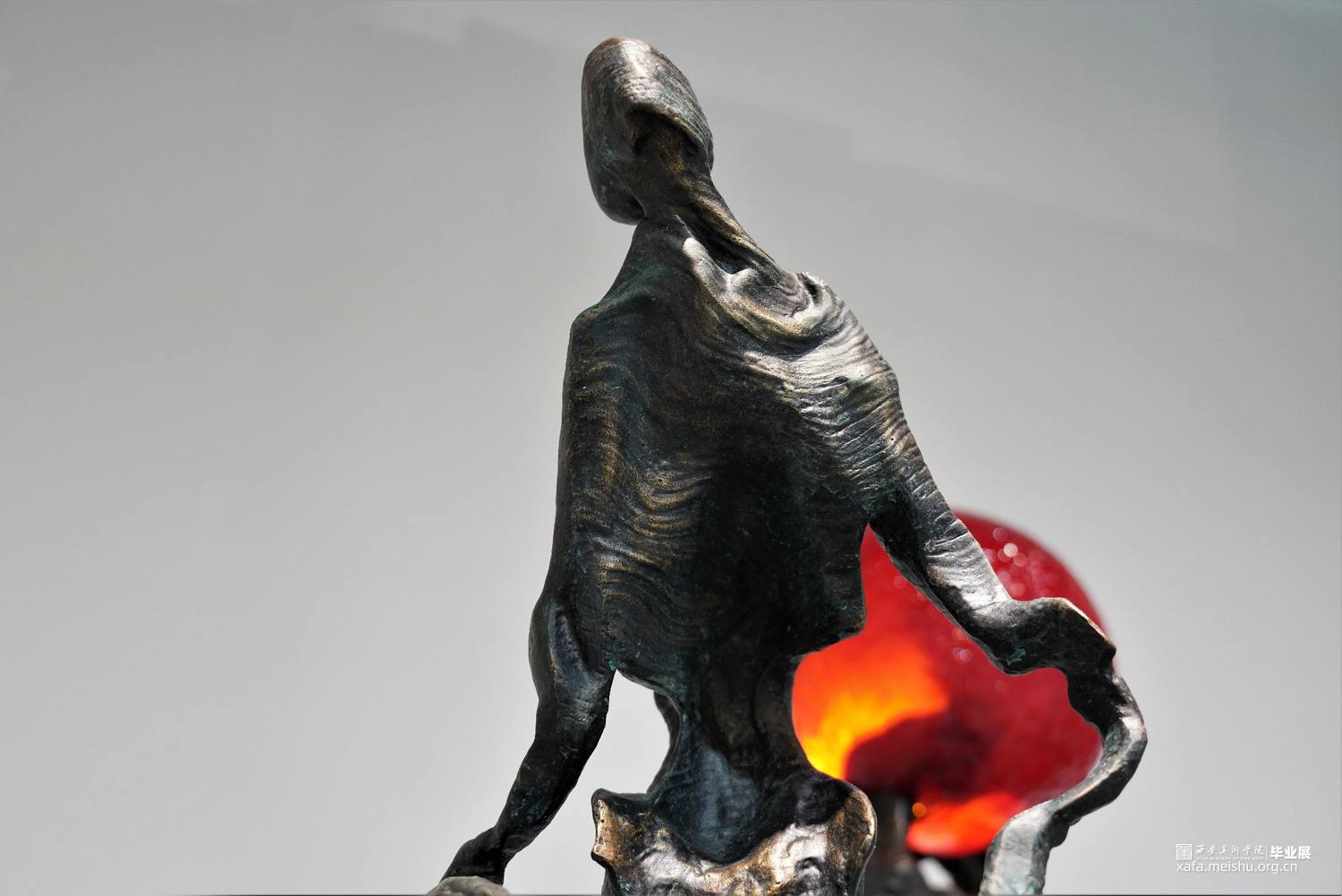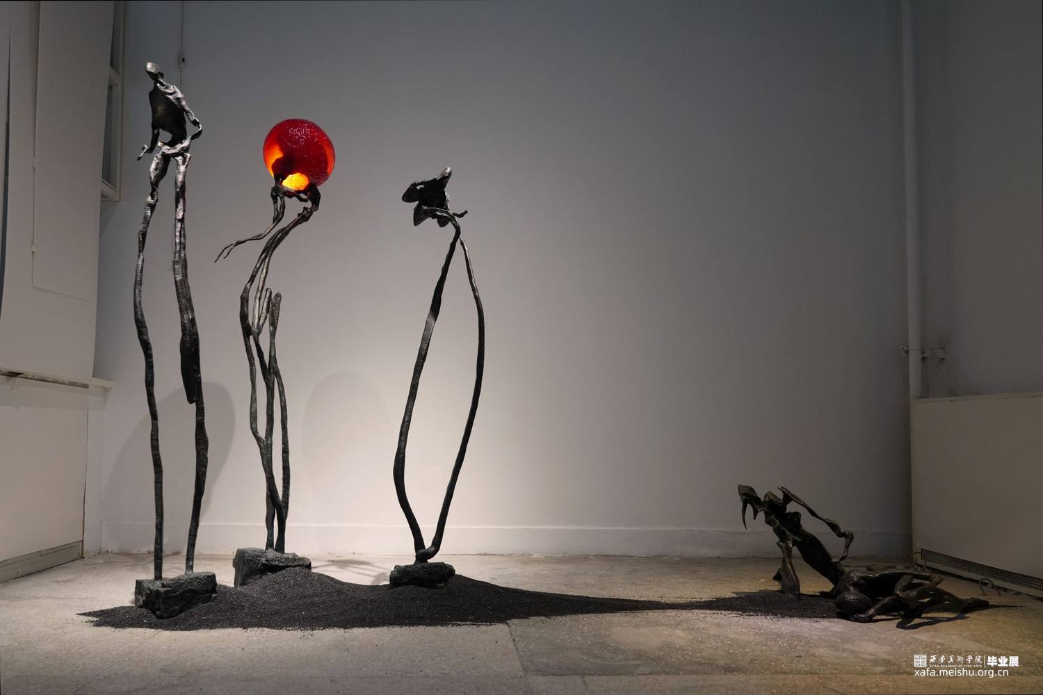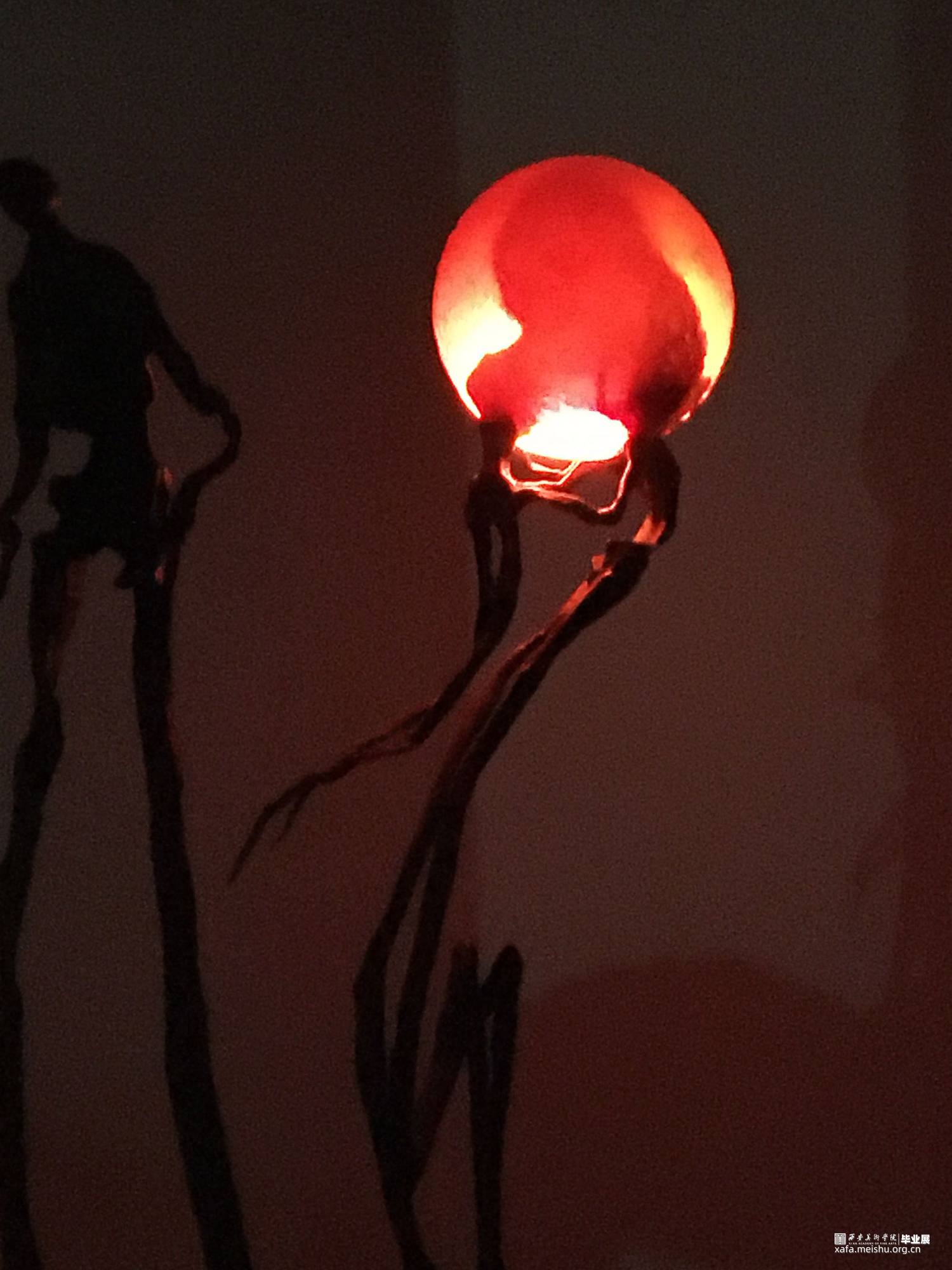 《5000万摄氏度》:作品主体部分为铜铸造,球体为透明树脂,内置红外线感应灯。整体高度为2米,宽约1.5米,长约5米。
