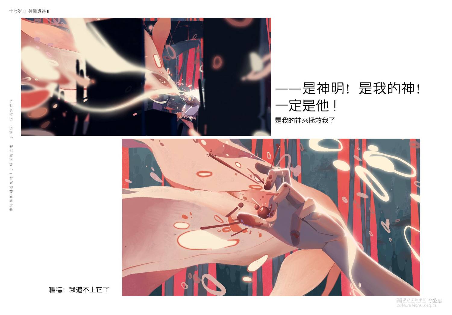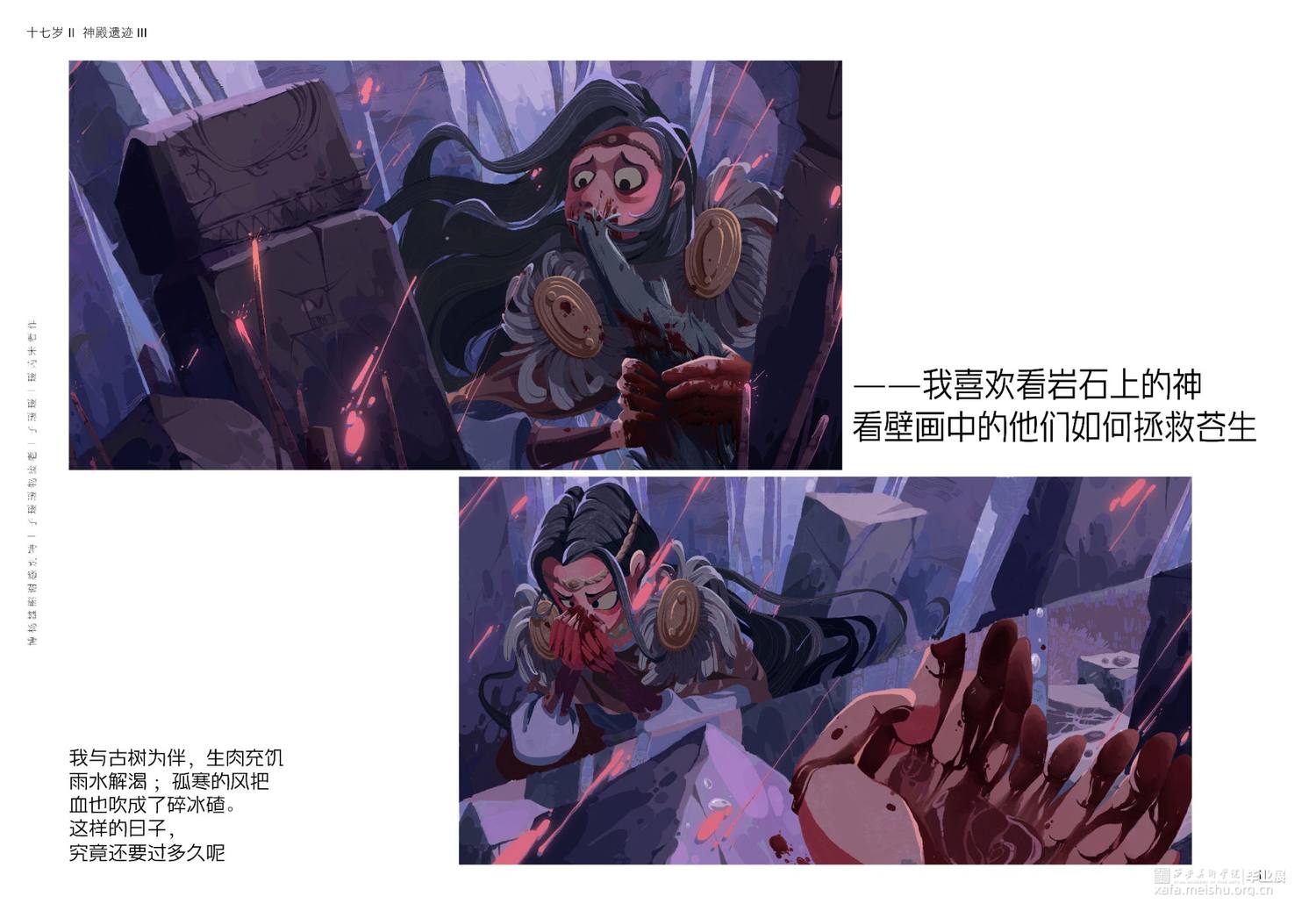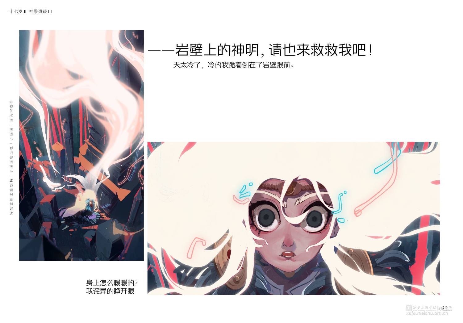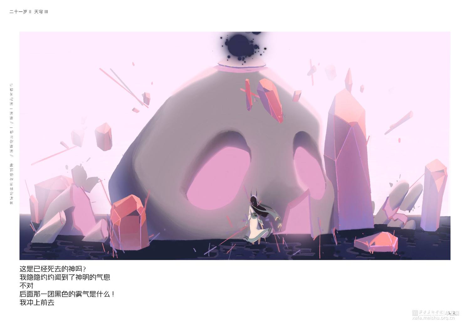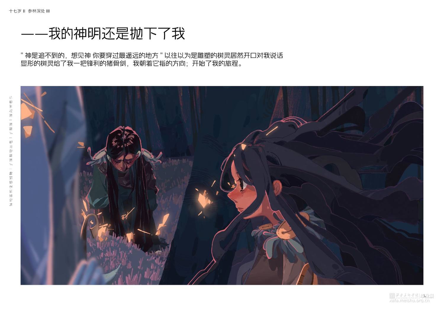 我做了一个绘本管它叫找寻,大概内容就讲的是一个名叫“晓”的孤儿,从小一个人生活在森林深处的神殿遗址上 生活艰辛。从小看着神殿里神明壁画的她认为神明是真的,去寻找神明并且在寻找的路上自我成长;最后自我觉醒的故事。