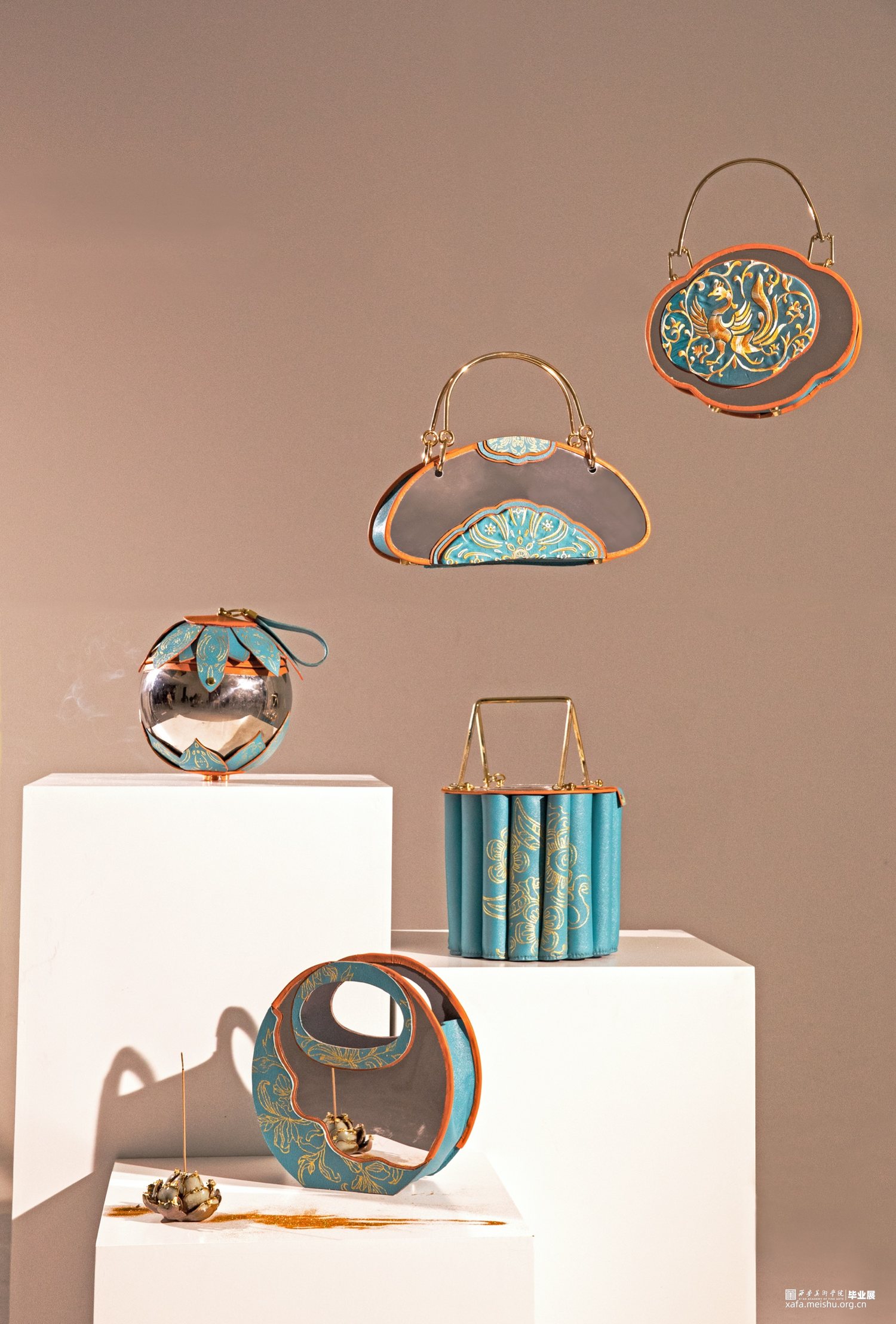 唐代粉盒在女性妆饰器物中有着极其重要的地位,基于对唐代粉盒的调查研究可以反映出唐代独特的审美艺术内涵;以文献资料研究和实地考察为主要的调研方法,以艺术特征分析为辅助的研究方法对唐代粉盒的造型、装饰和工艺展开研究。从中提取出粉盒的艺术特征与现代新工艺新材料结合,从唐代粉盒的纹饰特征中提取灵感并进行设计,再运用传统工笔画和刺绣的方法将纹饰呈现在箱包上,秉承“取其精华”的观点,对中国传统粉盒艺术特征的剖析的同时,完成古今饰品器物设计的风格、材质和功能的的承接和创新,在以上内容中完成毕业创作——《映·宝函》。