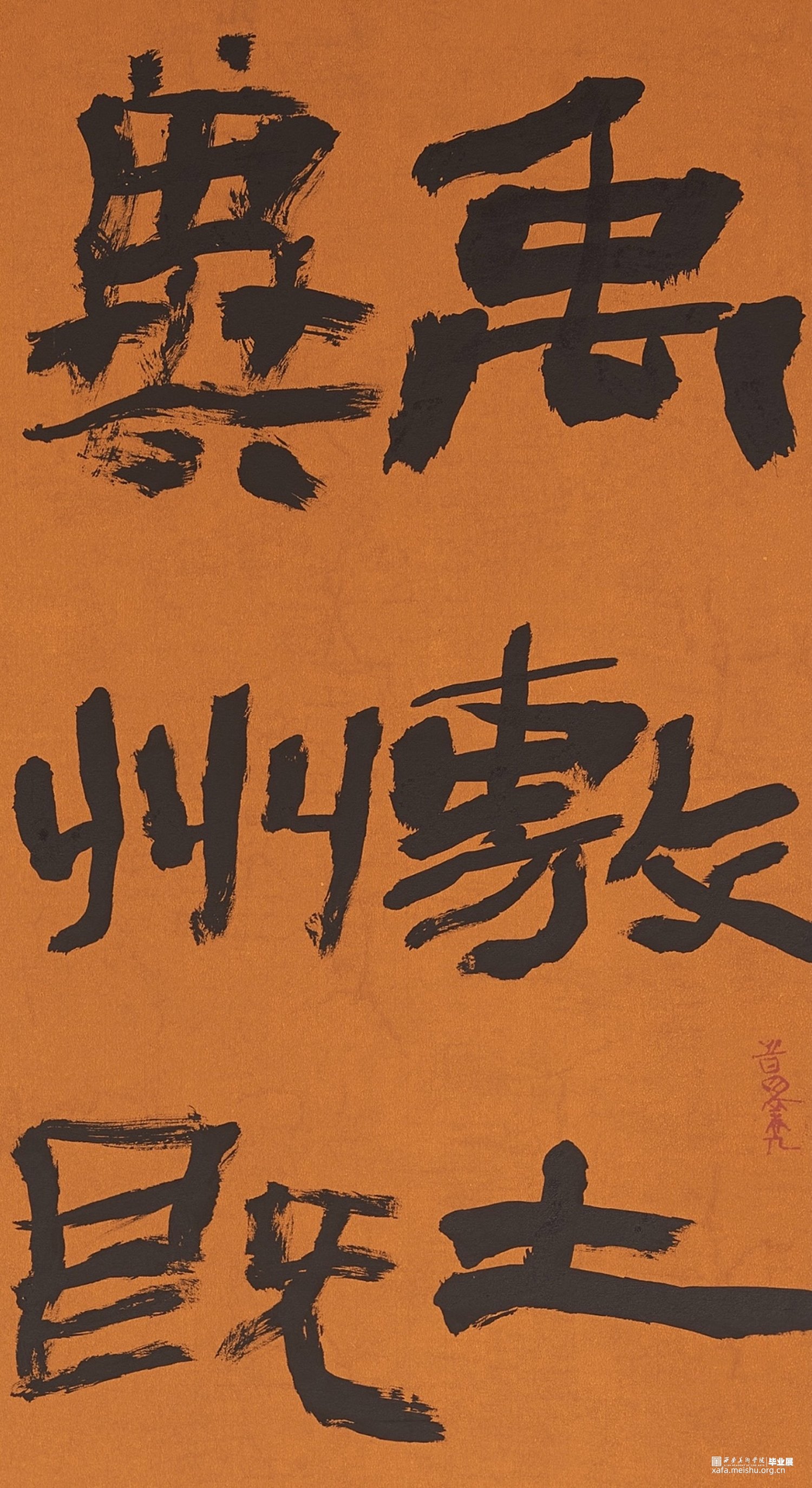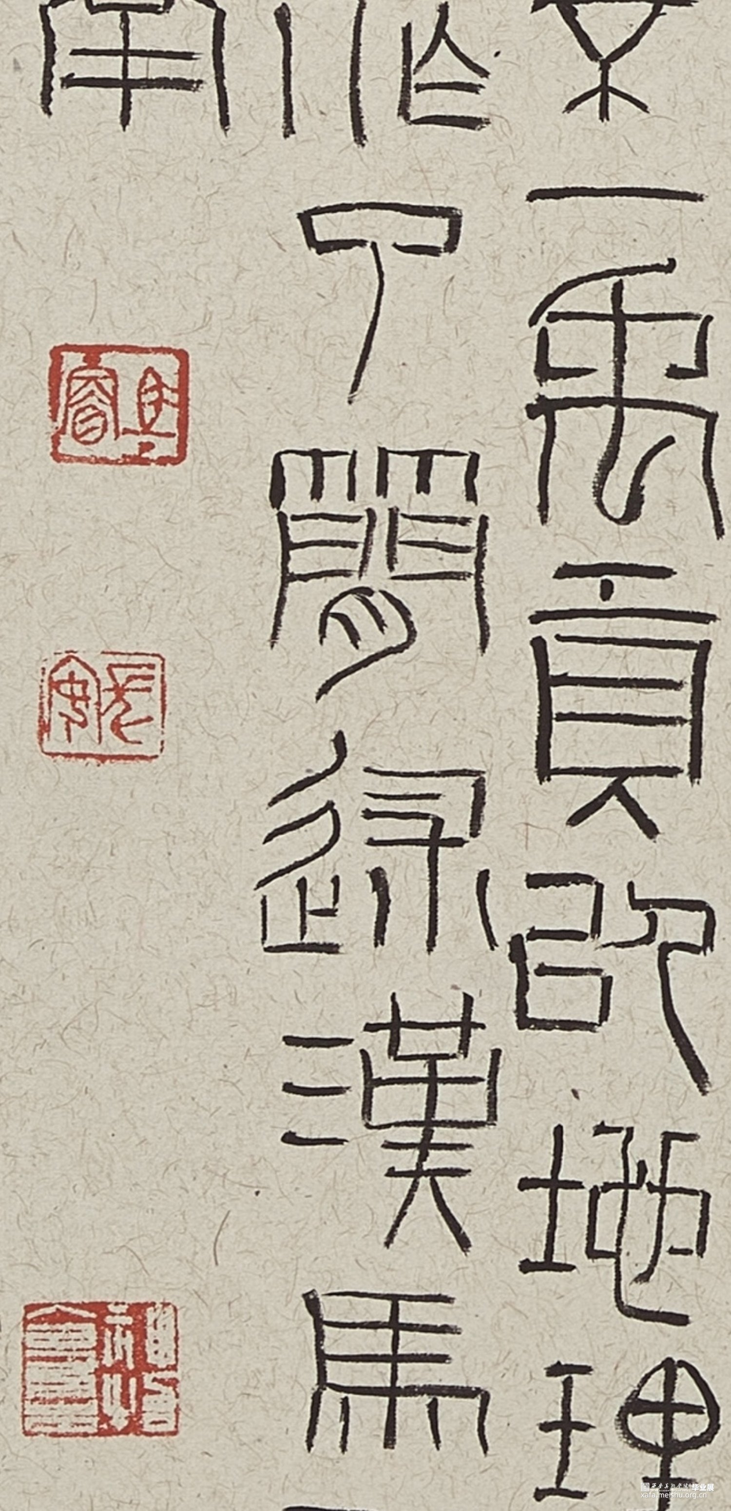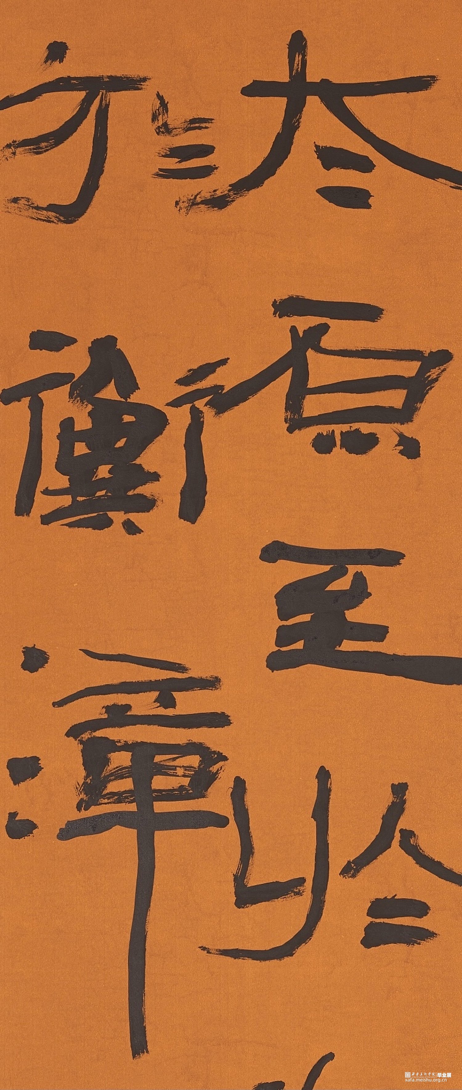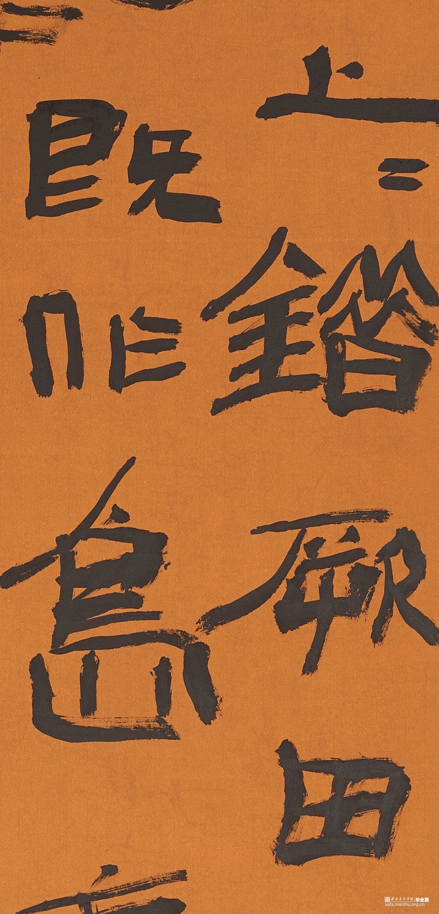 此幅作品内容为《尚书》,简称为《书》,我节录了《书》的《禹贡》,《禹贡》以山河为界将中国分为九州。我选择用隶书去表达,并求其疏野之气,心之所向,所谓自由。力求能以书写状态的纵逸去表达此作的气象。