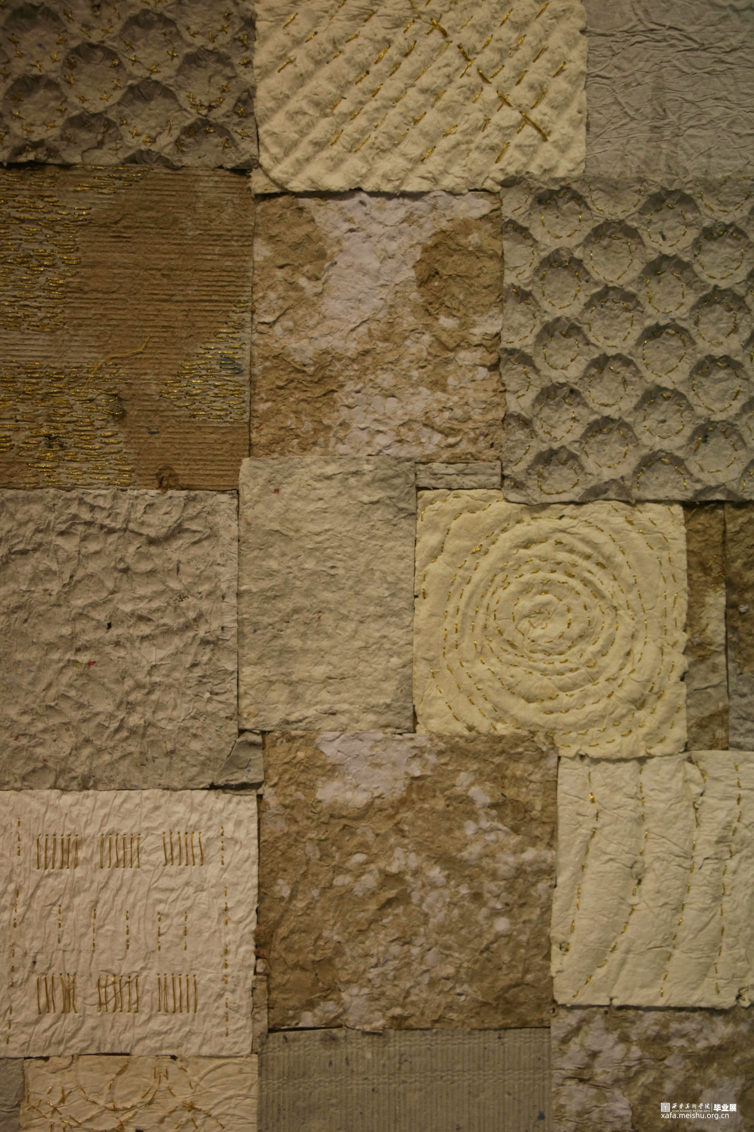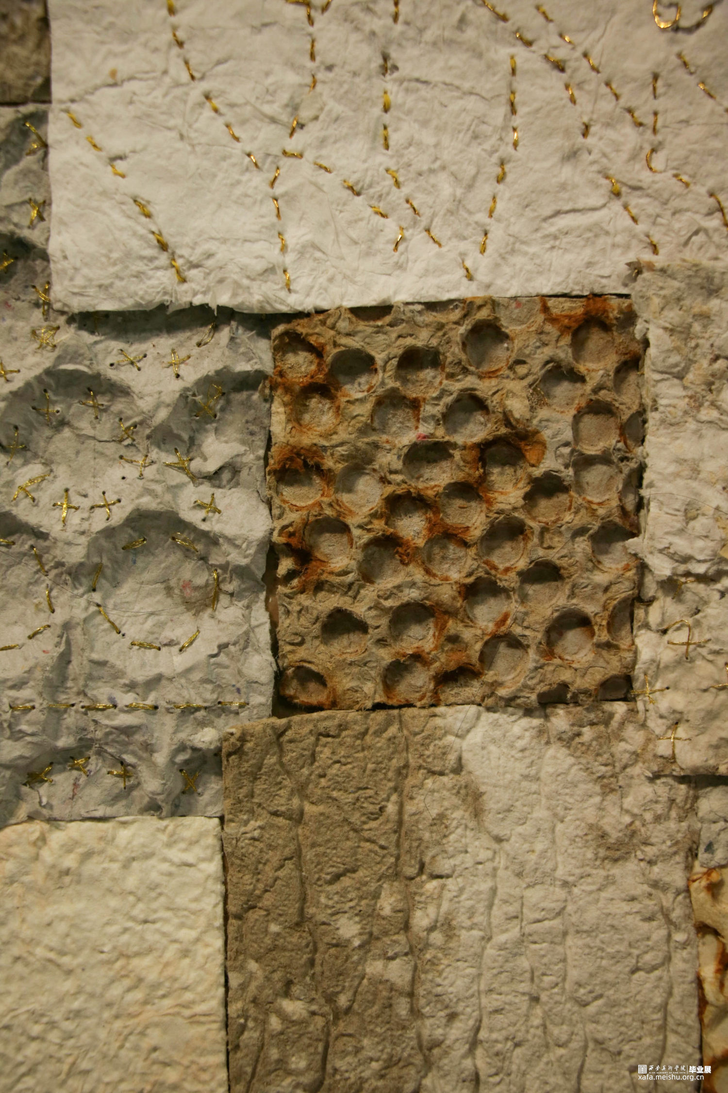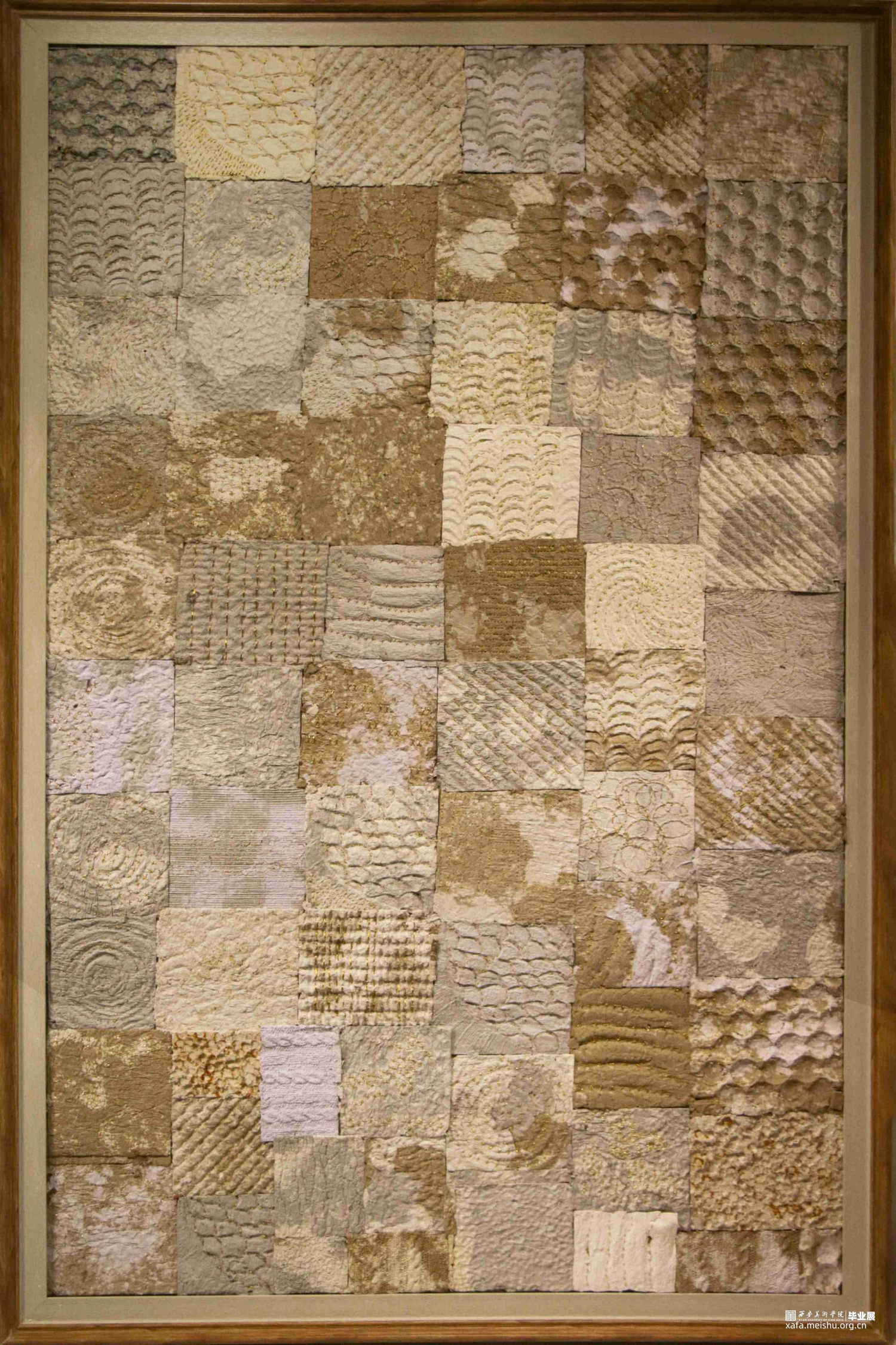 我们的艺术来源于生活,与自然紧密相连,自然中产生的美值得我们去发现,去探索。自然中很多事物给人类带来了方便,开拓了人们的视野,进而使人们的生活变得丰富多彩。本作品名为《自然·肌理》,用纸浆来表现自然中的肌理元素以体现生活的美好。