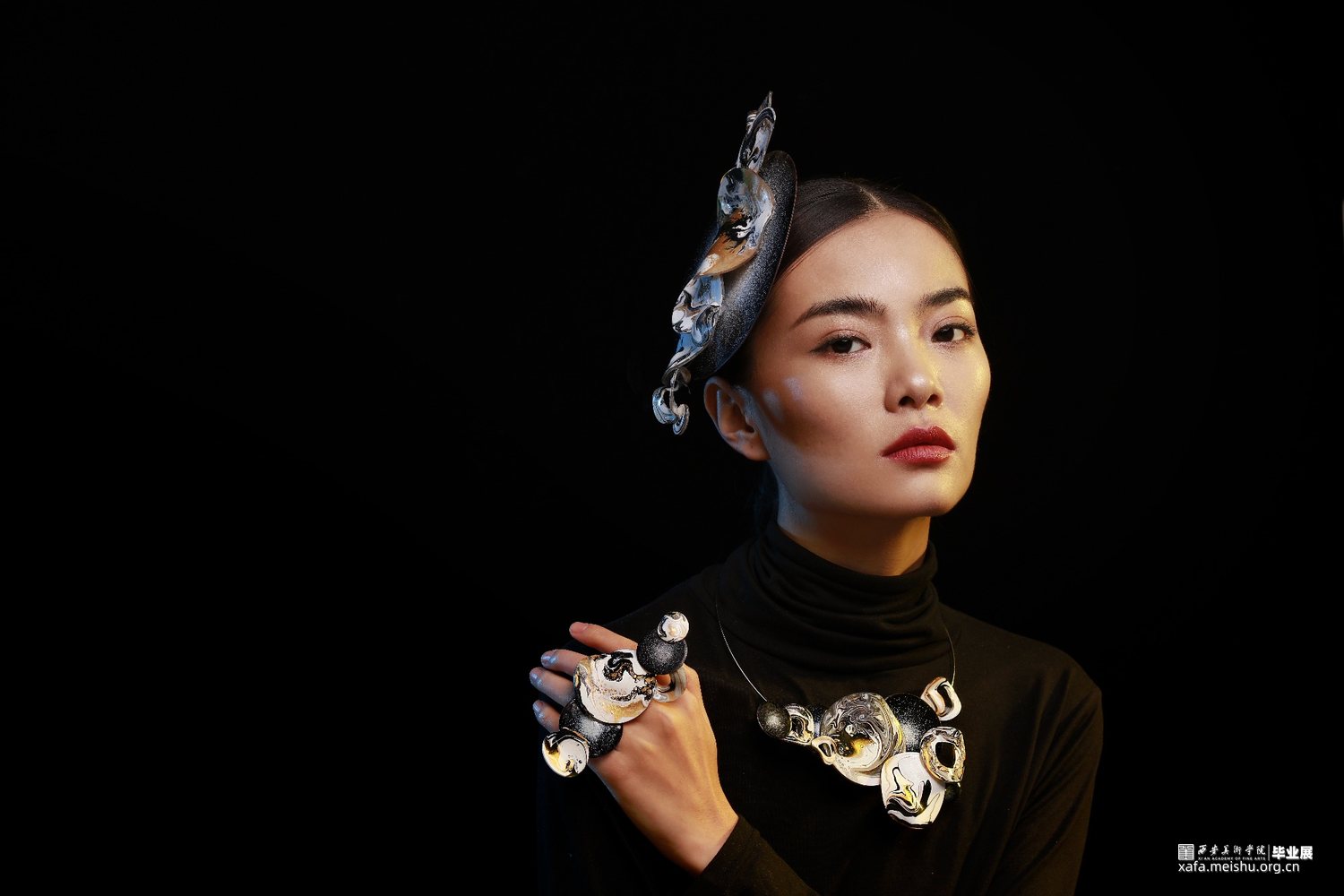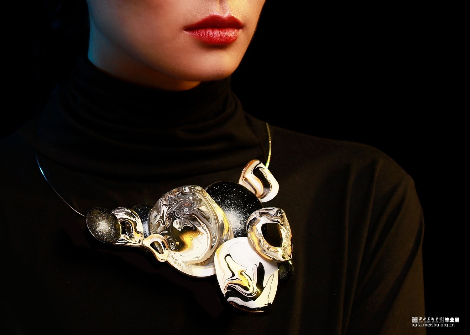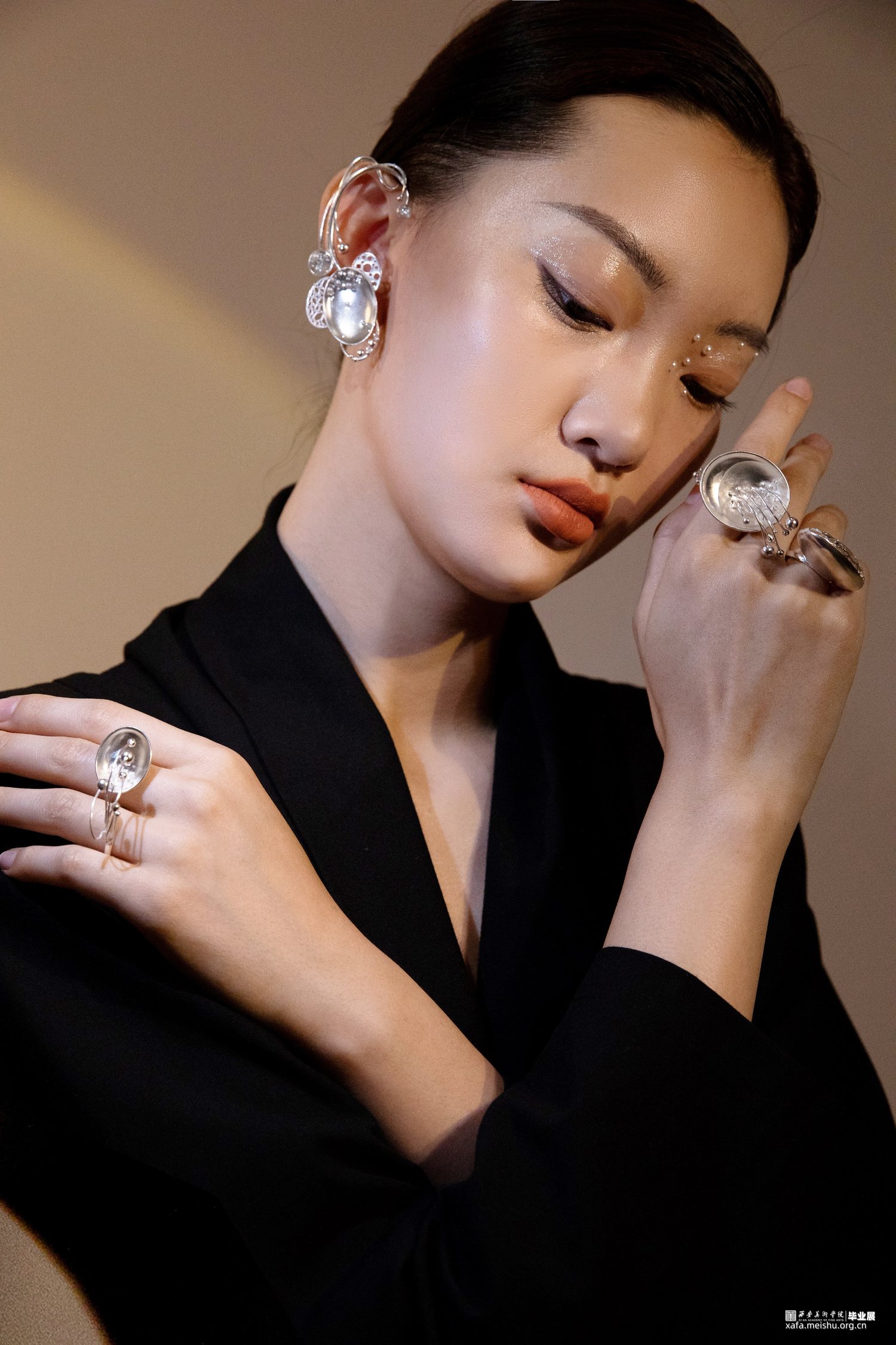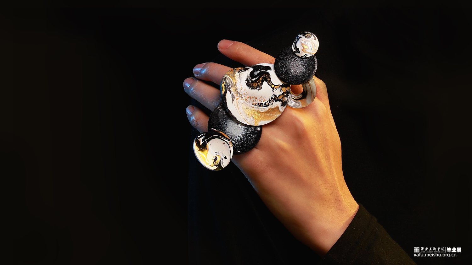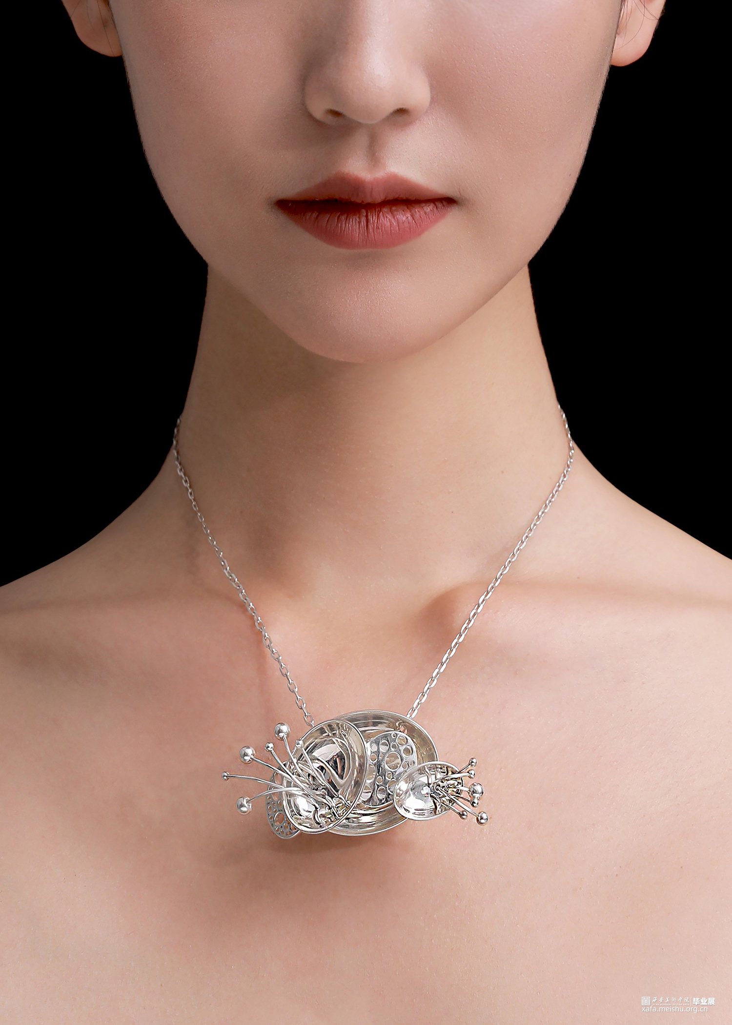 “一切世界,始终生灭,前后有无,聚散起止,念念相续,循环往复,种种取舍,皆是轮回,未出轮回,而辩圆觉,彼圆觉性即同流转。”此次毕业作品立足于唐文化,通过剖析何家村窑藏出土金银器的纹样和制作工艺,归纳点元素的类型、装饰特征与形式语言,分析其传递出的唐代审美取向和文化内涵,跳脱单一固定的思维模式,将传统与当代、工艺与艺术自然而然的融合到一起,传统贵金属材料银与“反传统”的综合材料、传统工艺与传统纹样“形”的结合,传递一种传统文化特有的美感,意在体现唐代美学的同时与当代首饰趋势相结合,呈现点元素在当代首饰上的张力与美感。点线纵横交织,繁而不乱,由重复、聚散、肌理等构成元素呈现不同的艺术效果,布局中的聚散关系使整体展现出一种动中有静、统一中有变化的韵律美感,形成有节奏感、韵律感的形式意味,以聚散有度的构成营造引人遐想的意境。