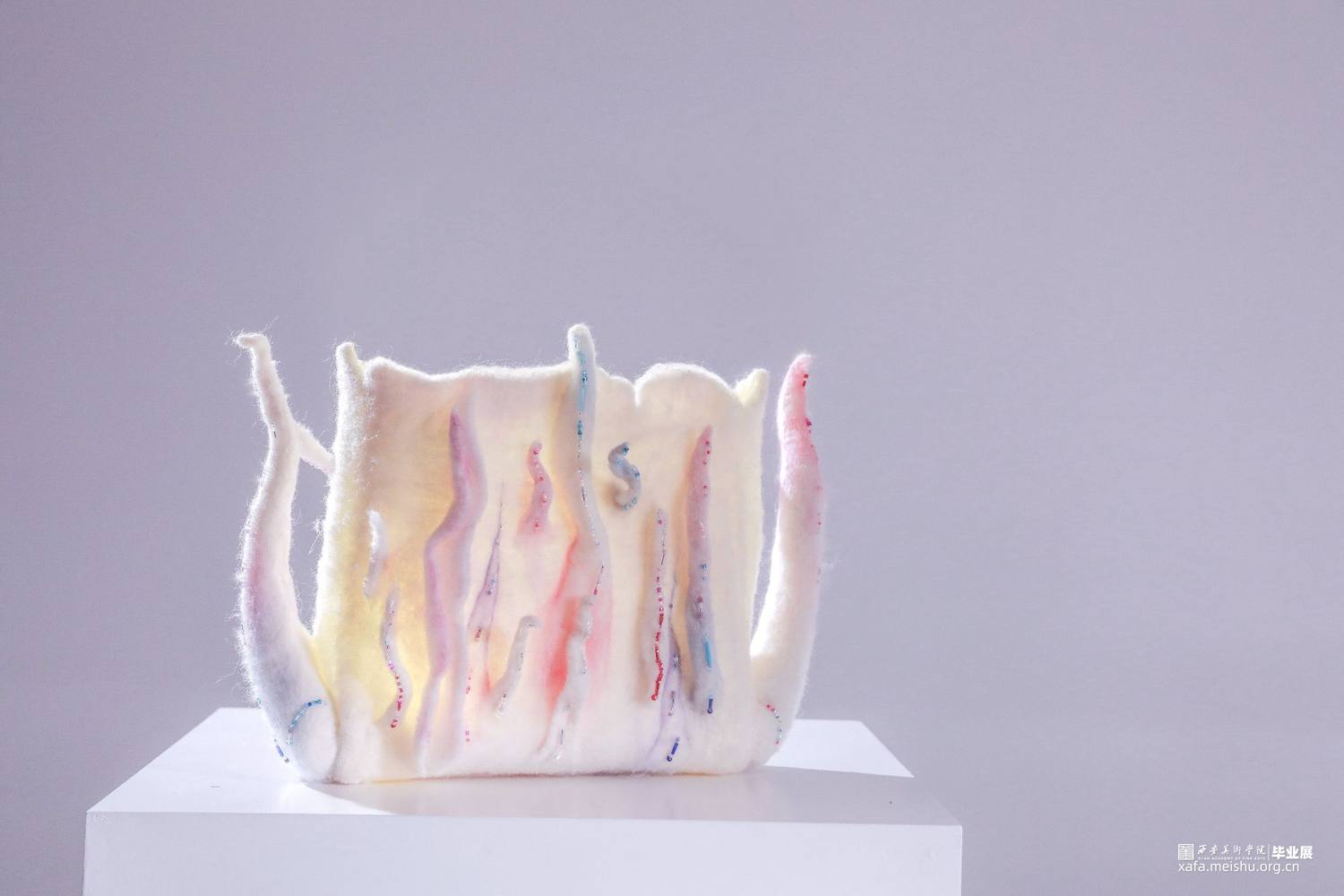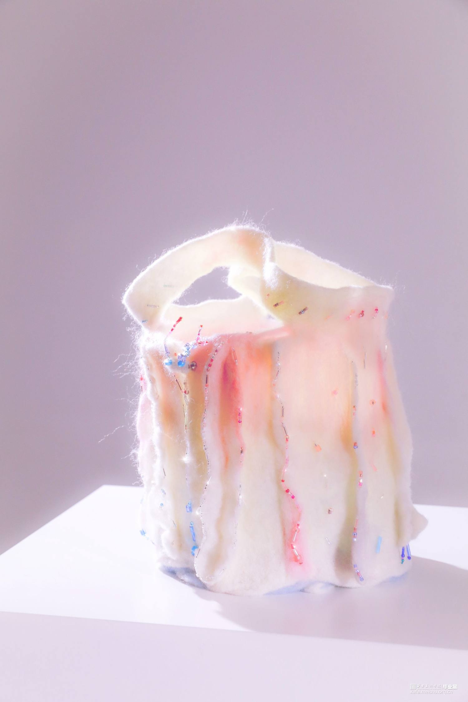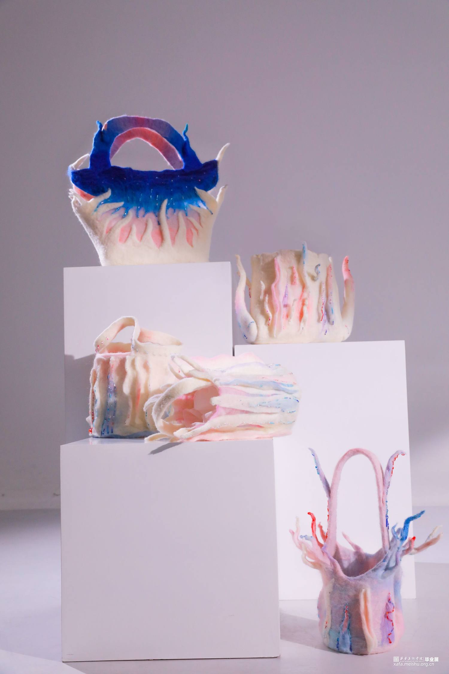 以唐代镇墓兽为灵感的对中国古代幻想艺术与现代服饰设计结合的一次尝试,创造出具有现代女性化特征的羊毛毡箱包作品。