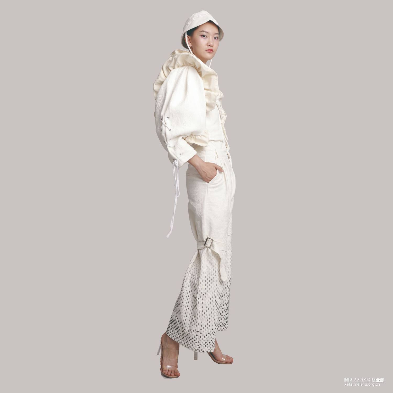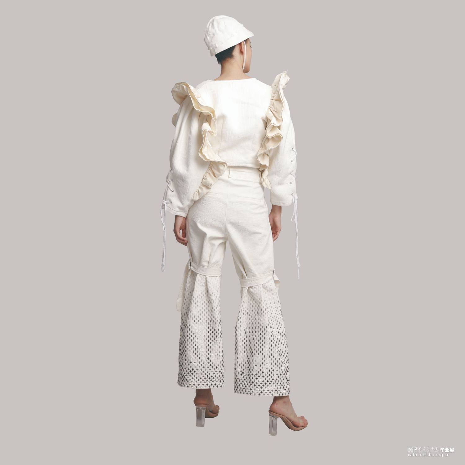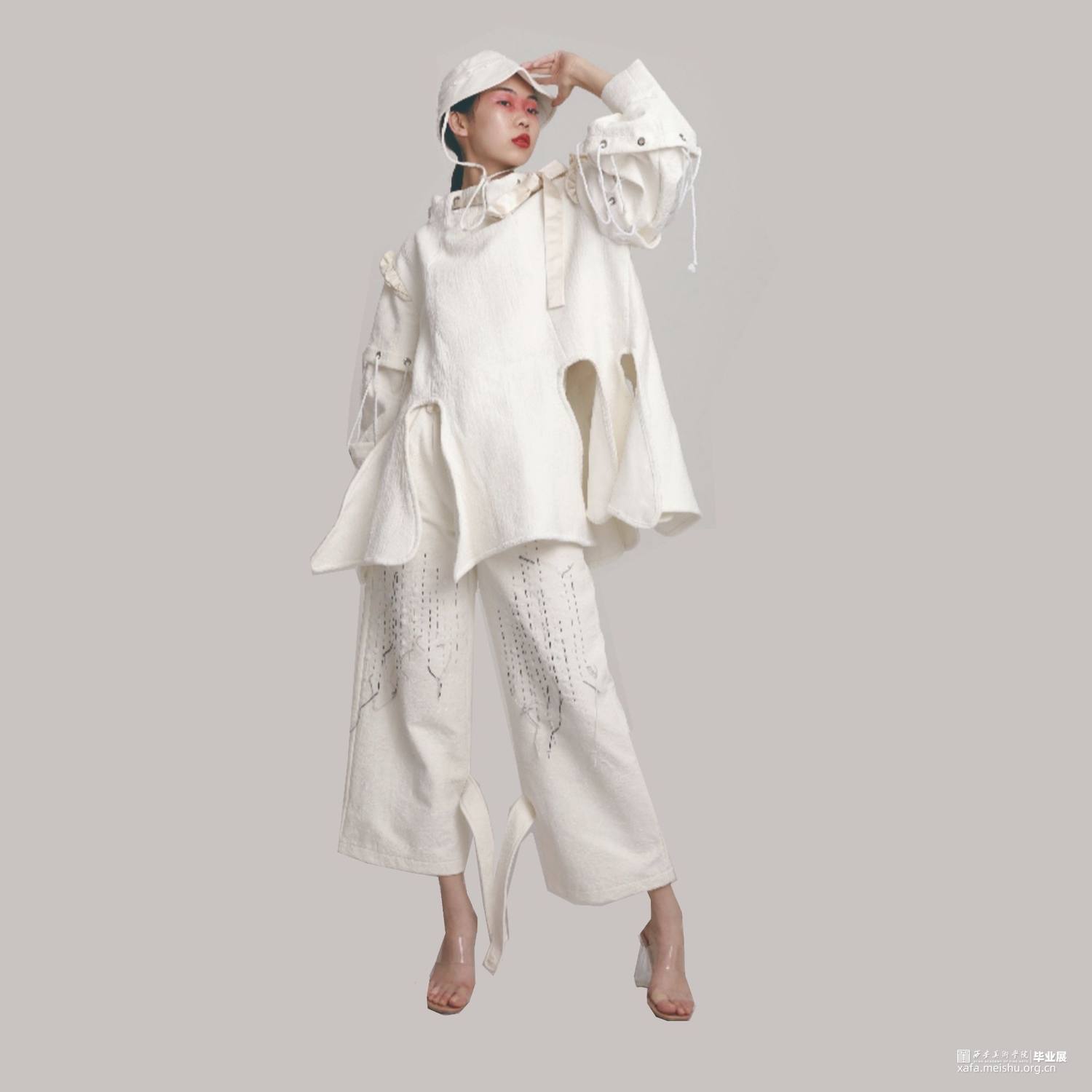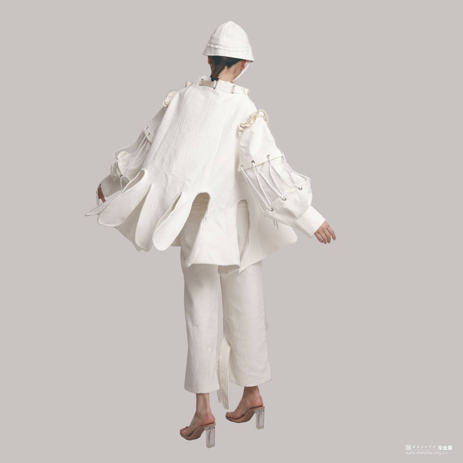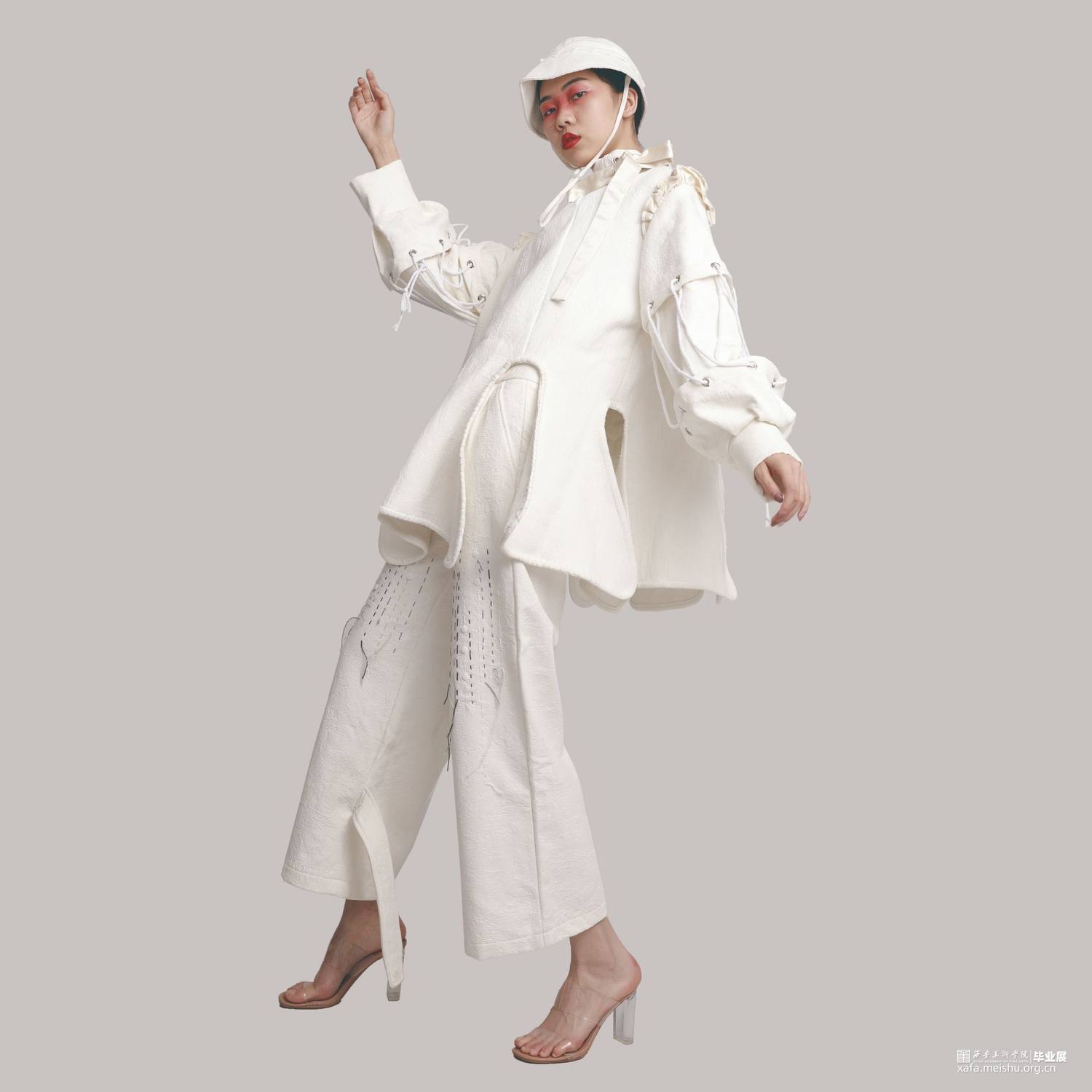 本次设计采用棉麻面料,色彩上运用黑白灰的渐变效果,通过对唐代金银器中凤鸟纹的提炼和归纳,运用在现代礼服设计中,希望对传统文化起到传承发扬的运用