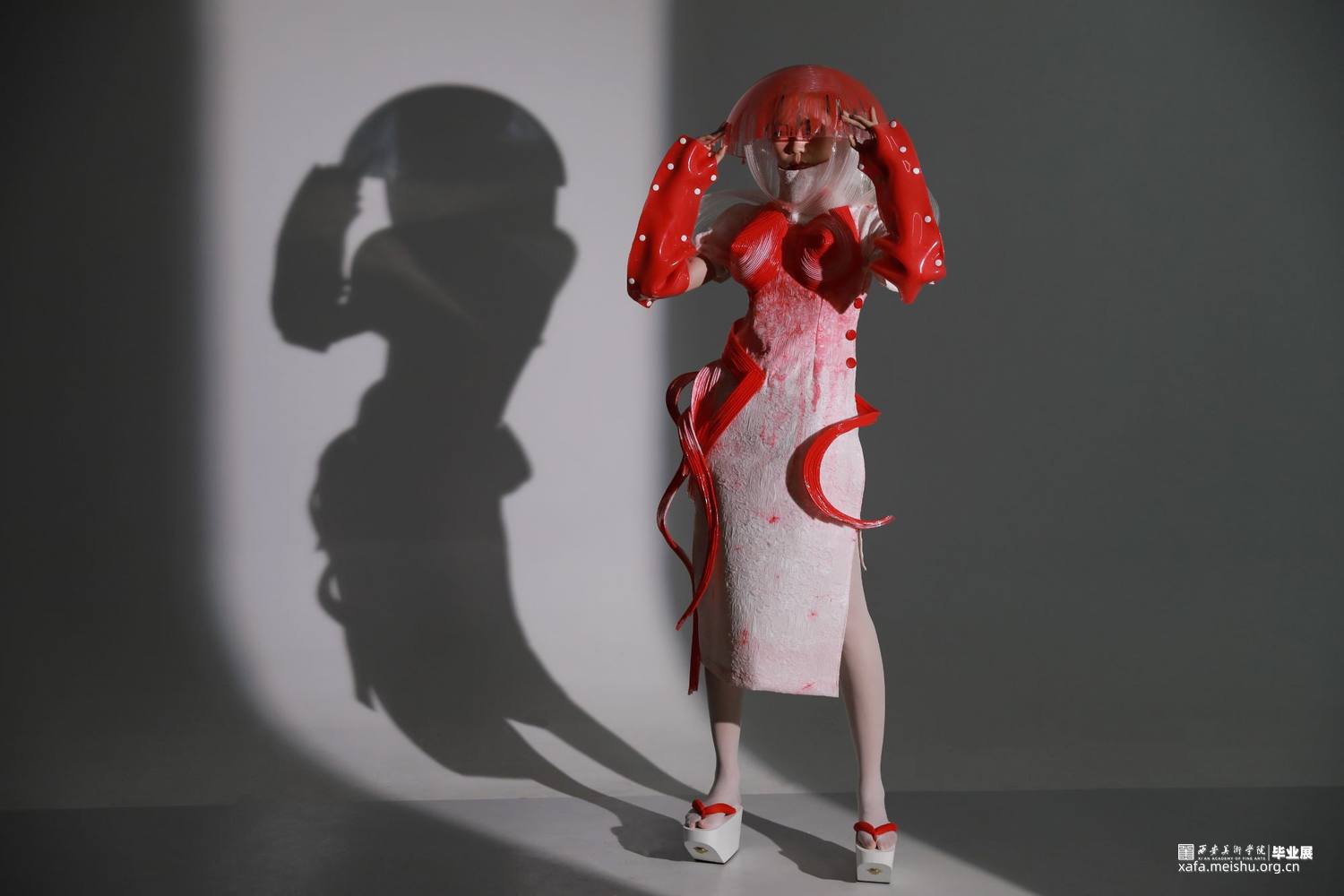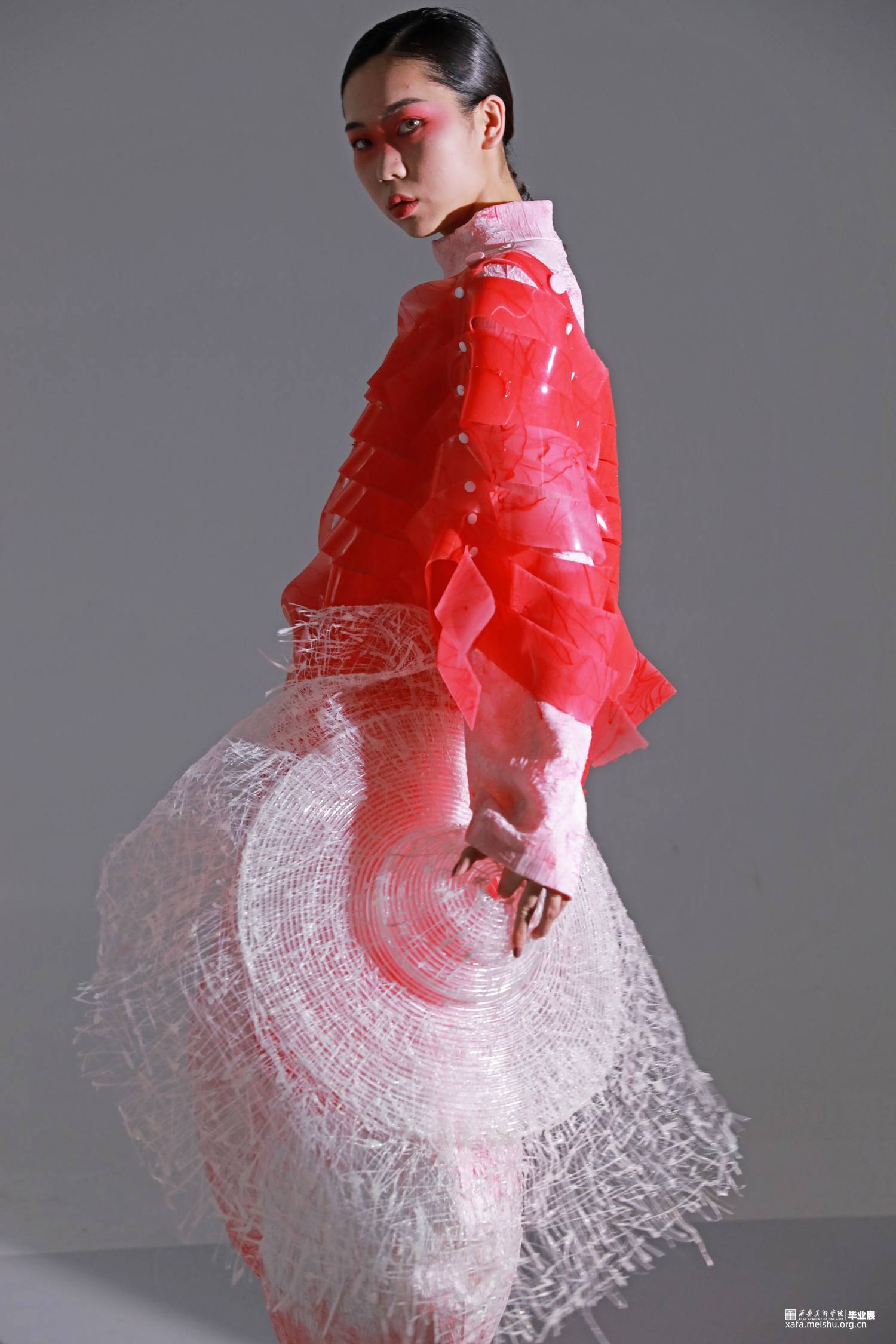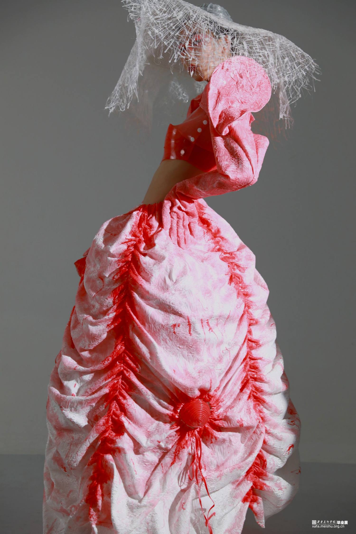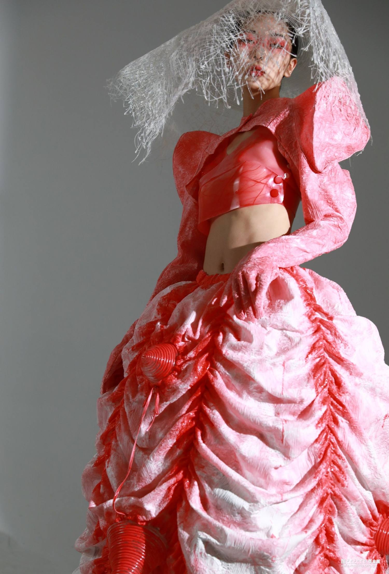 本设计主要表现生物硅胶材料在服装设计中的应用,结合唐代元素以可持续发展为理念制作创意服装。唐代女性拥有比任何时代都广阔的空间和自由,可以着男装骑马、打马球,本设计提取了唐代男装胡服元素和女装上小衣下长裙特点,作为主体廓形设计依据。同时本设计希望通过对新生物面料的研究设计,使人们更关注于人文、社会、自然的可持续发展。设计和科学之间跨学科的融合,让生物设计为人所用,提供给人们一个最时尚、前卫的生活与设计方式,解决当下甚至未来的社会挑战。